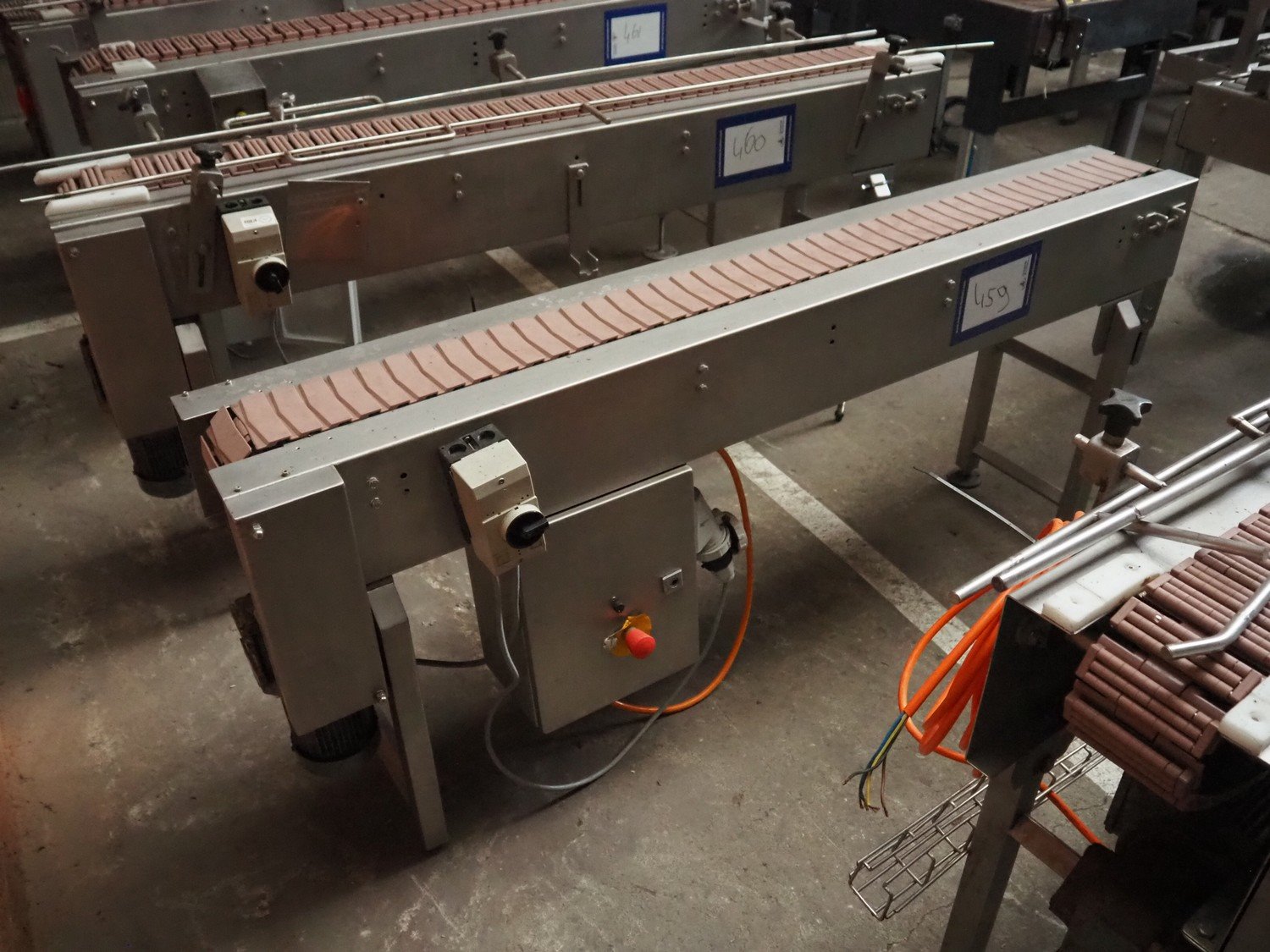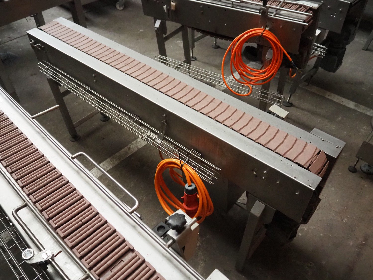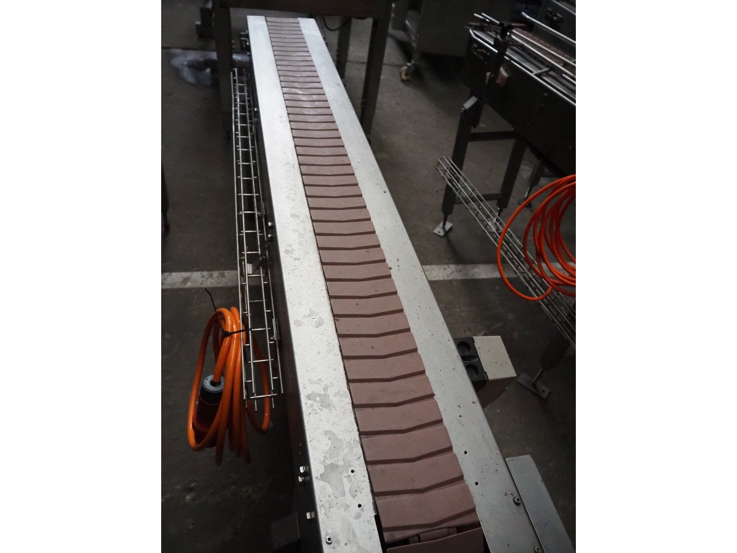 Transport belt, s/s frame, plastic belt, belt width: 115 mm, total dimensions: 1800 mm x 500 mm x 800 mm.