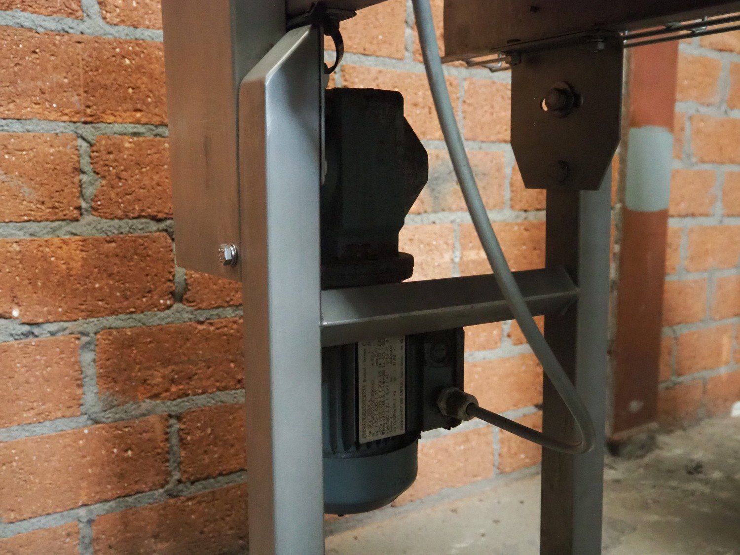 Transport belt, s/s frame, plastic belt with rollers, belt width: 110 mm, total dimensions: 1970 mm x 380 mm x 930 mm.