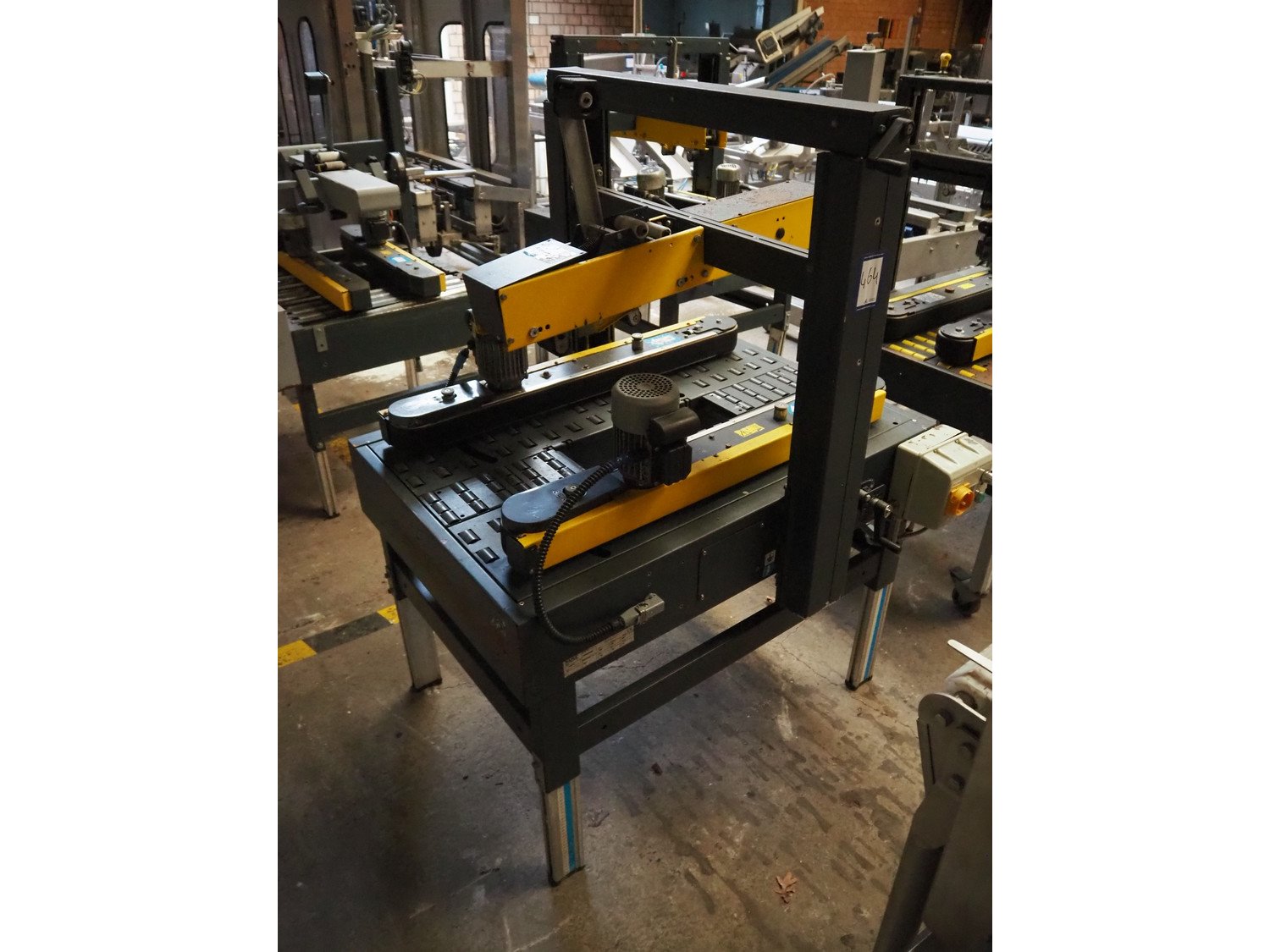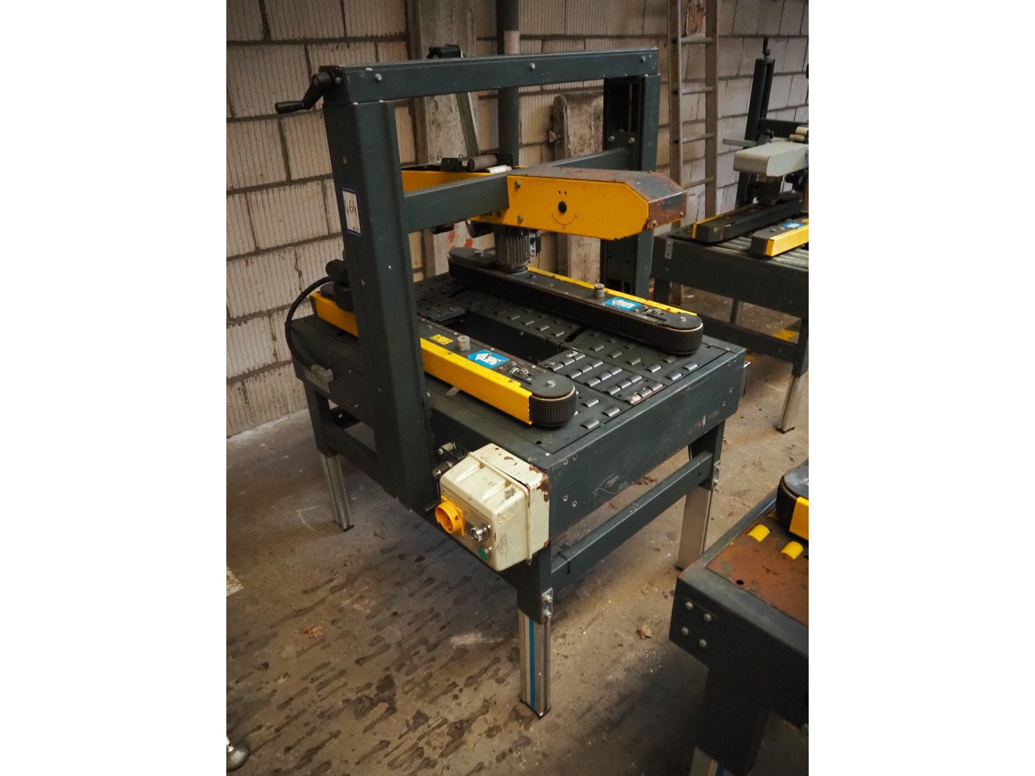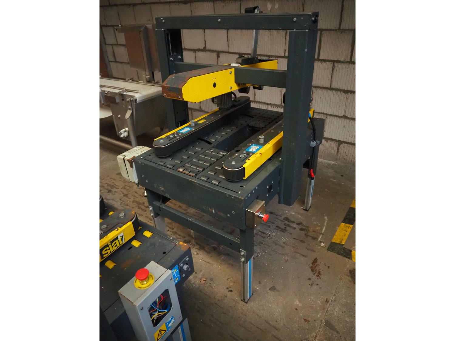 Siat box closing machine, model: SM35-S, serial number: 50224, year of construction: 2007, 240 V, 1 Ph, 50 Hz, 2.6 A, 260 W, dimensions: 1240 mm x 920 mm x 1600 mm.