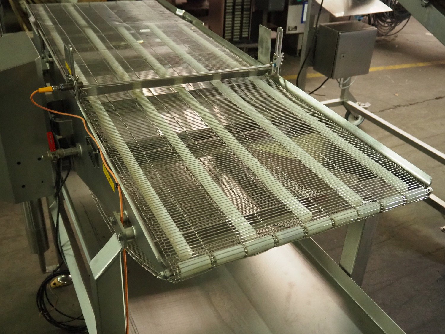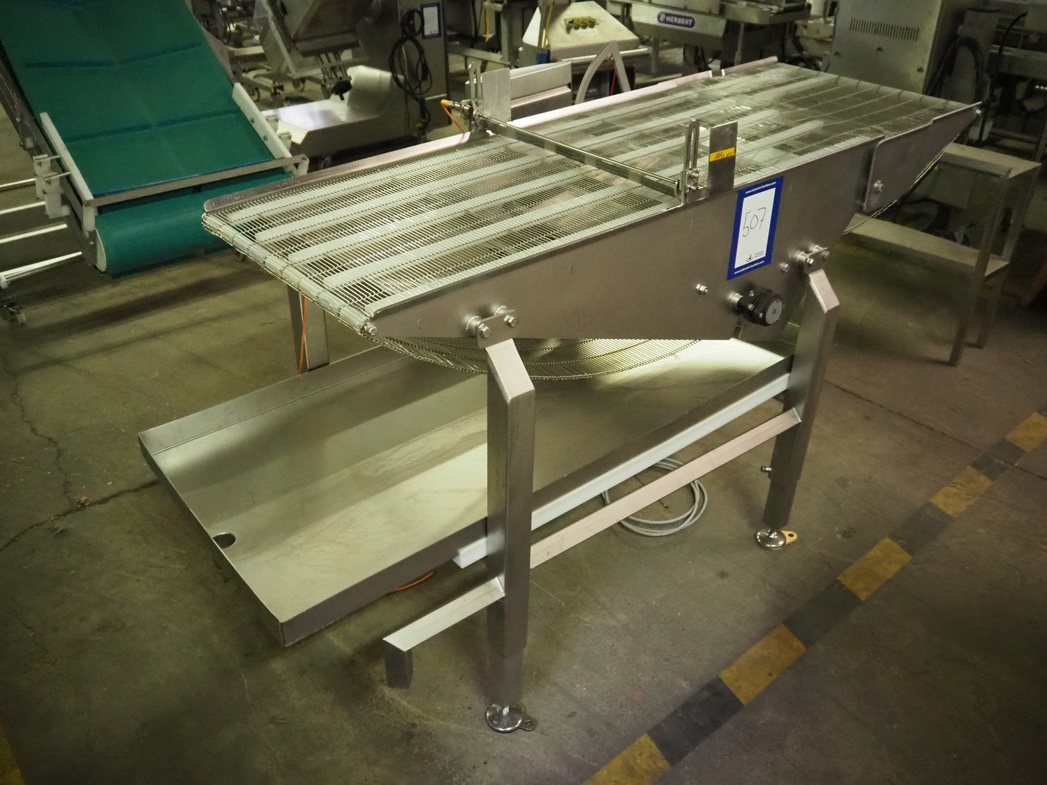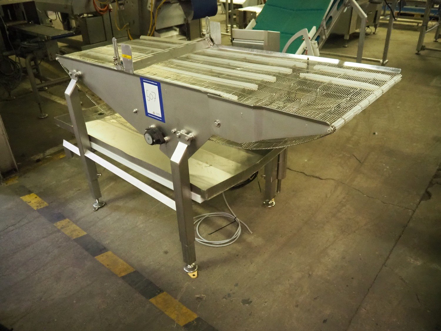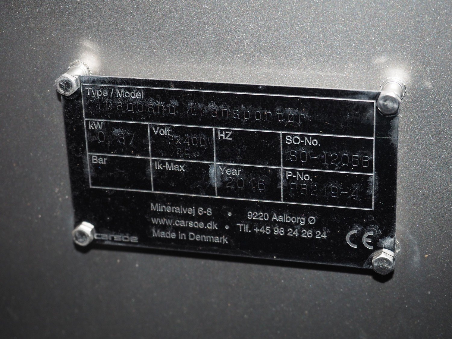 Carsoe transport belt, Tradband transportor, serial number: SO-12056, year of construction: 2016, 400 V, 3 Ph, 0.37 kW, s/s mesh belt, belt width: 610 mm, total dimensions: 2050 mm x 1030 mm x 1200 mm.