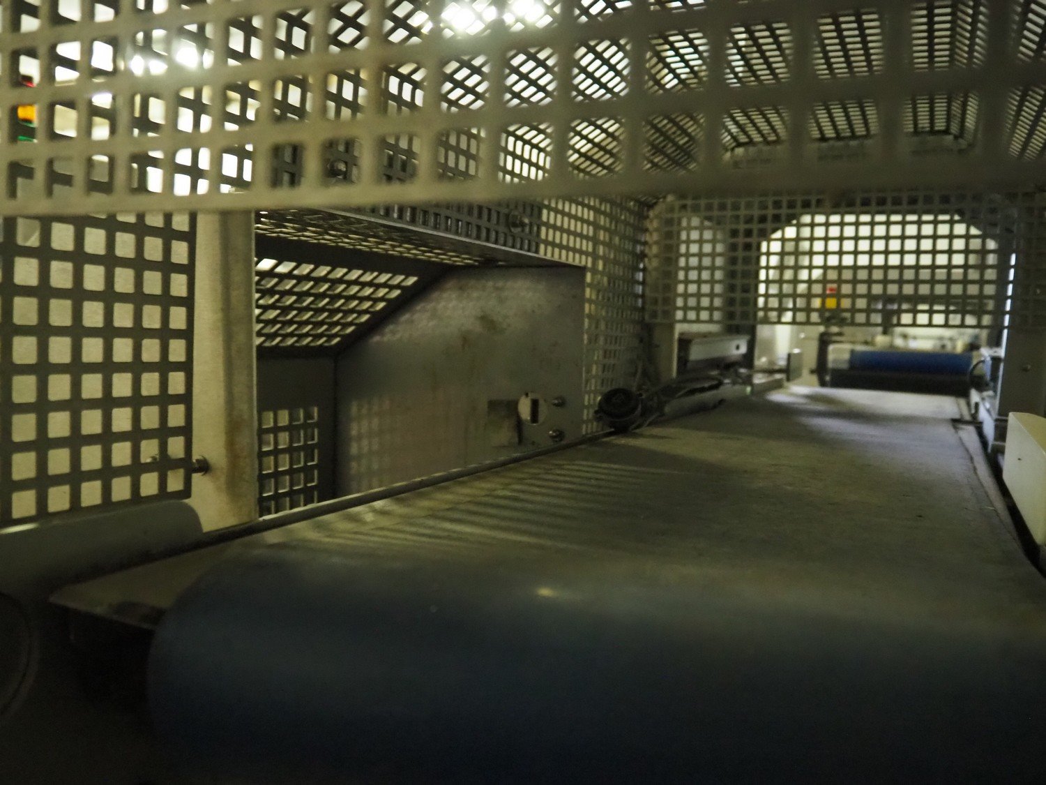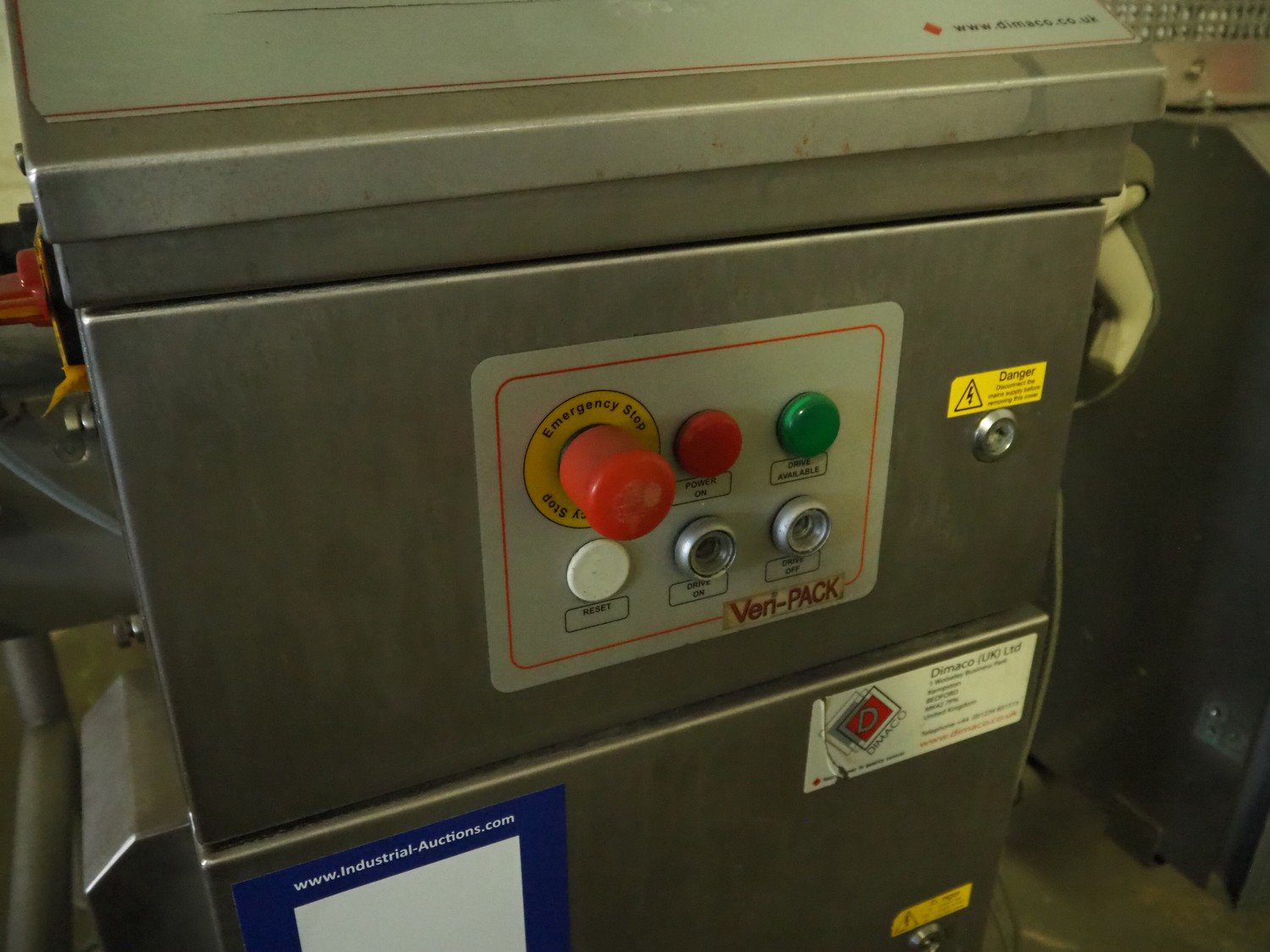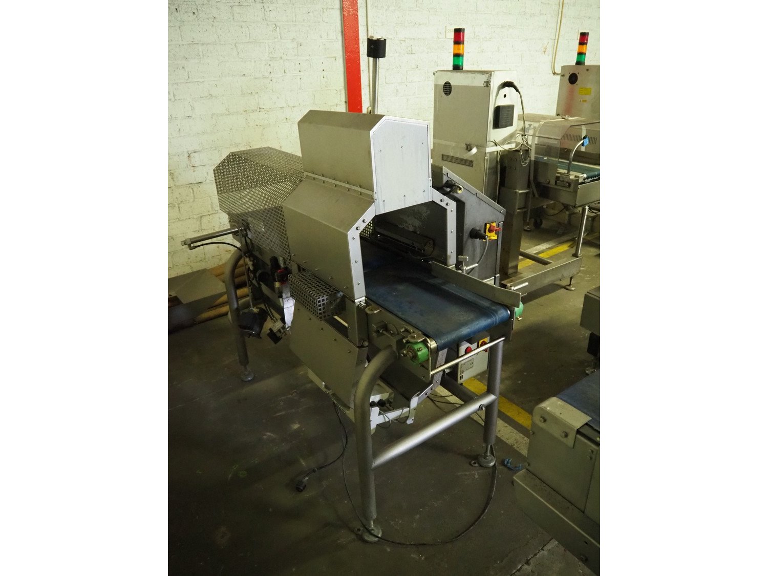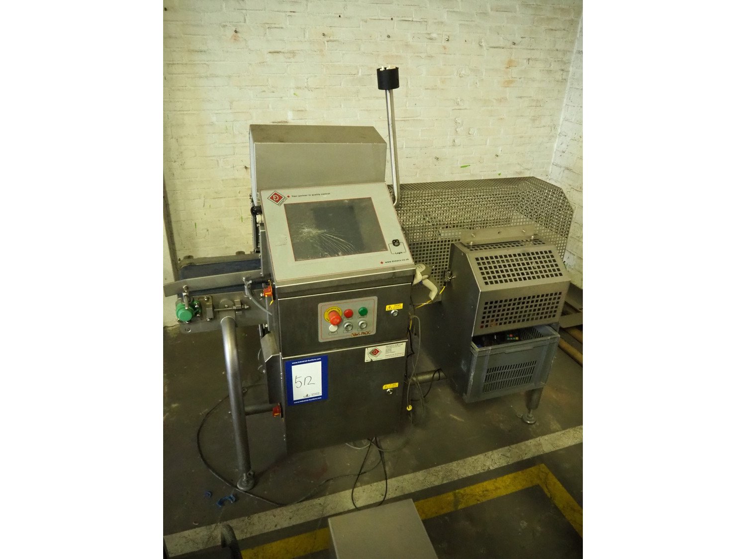 Dimaco optical sorting machine with rejector, plastic belt, belt width: 300 mm, clearance: 340 mm x 280 mm, total dimensions: 1650 mm x 750 mm x 1660 mm. Display broken.