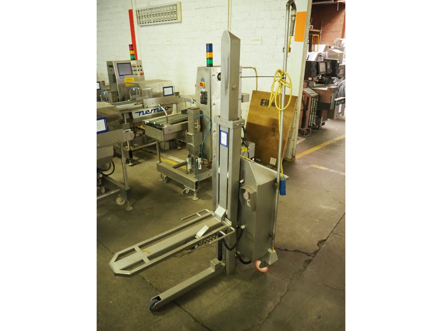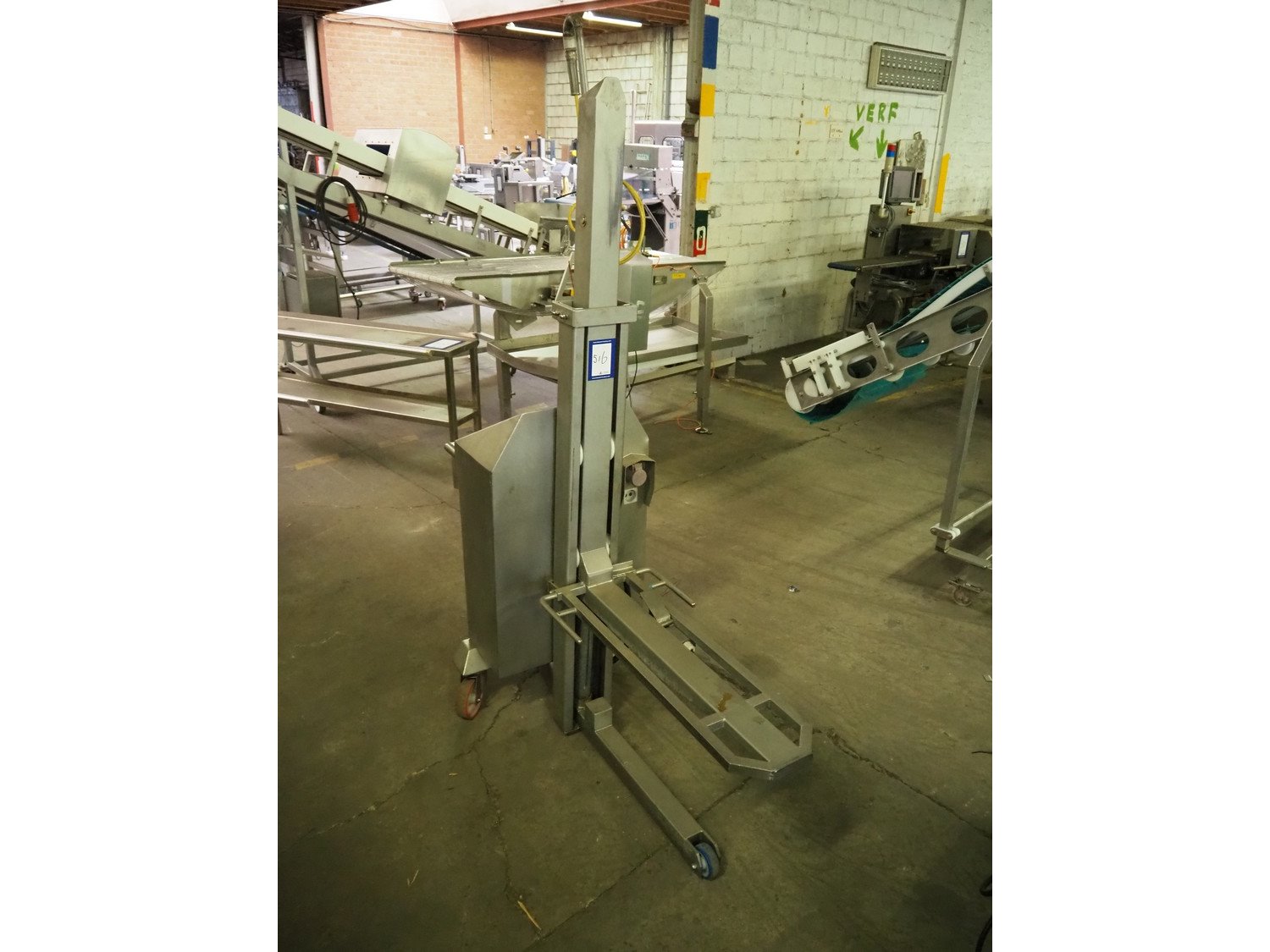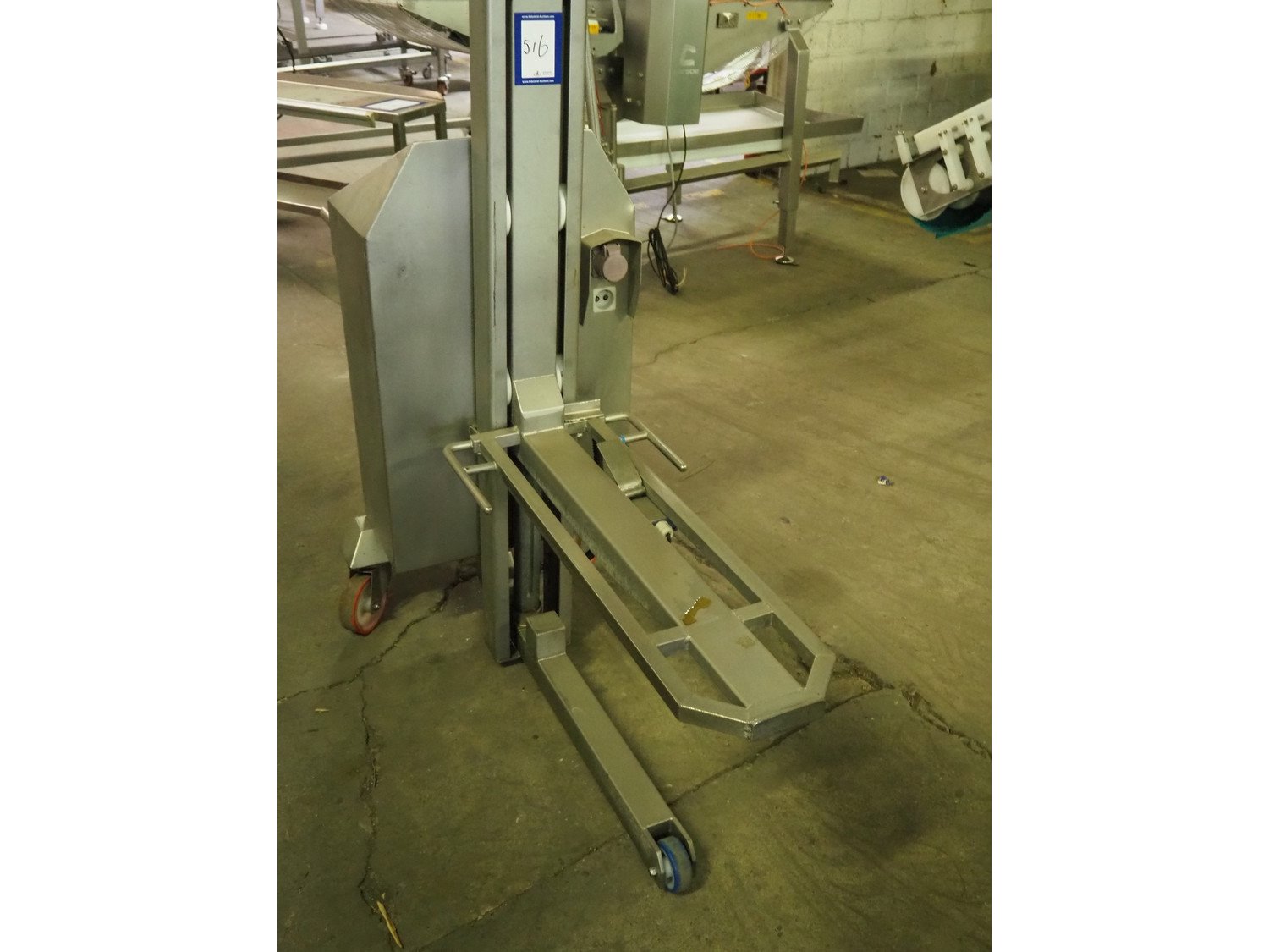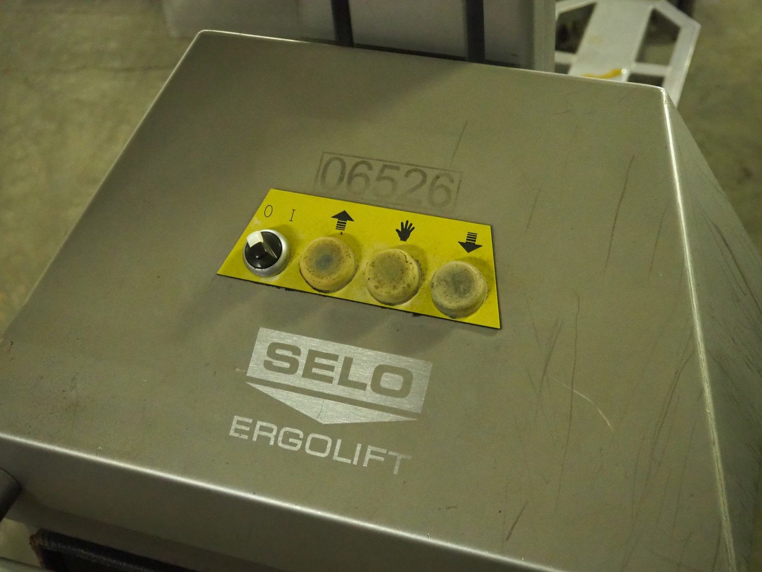 Selo mobile ergolift, fork length: 800 mm x 350 mm, lifting height: 1000 mm, total dimensions: 1250 mm x 600 mm x 1950 mm. Missing cover.