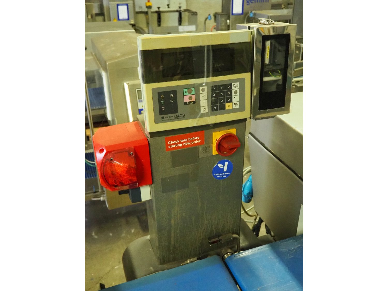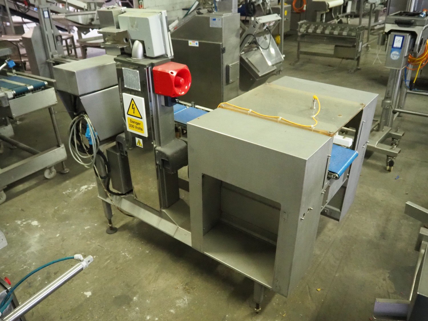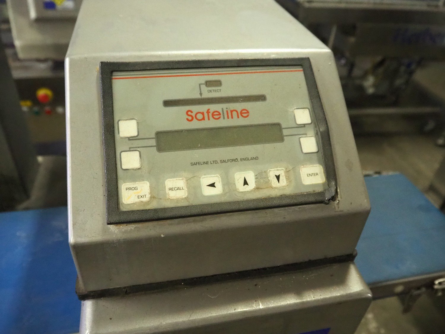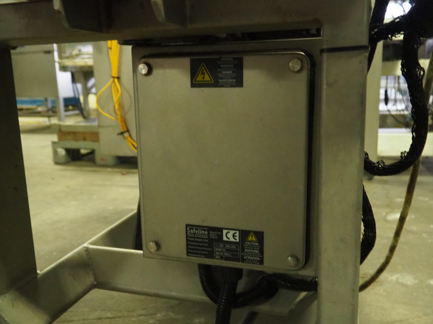 Ishida/Safeline metal detector, checkweigher and rejector, type: DACS-W-012-SB/WP I, number: 550713, year of construction: 08-2000, 240 V, 1 Ph, 50 Hz, 2 A, plastic belt, belt width: 220 mm, clearance: 270 mm x 100 mm, total dimensions: 1850 mm x 950 mm x 1450 mm.