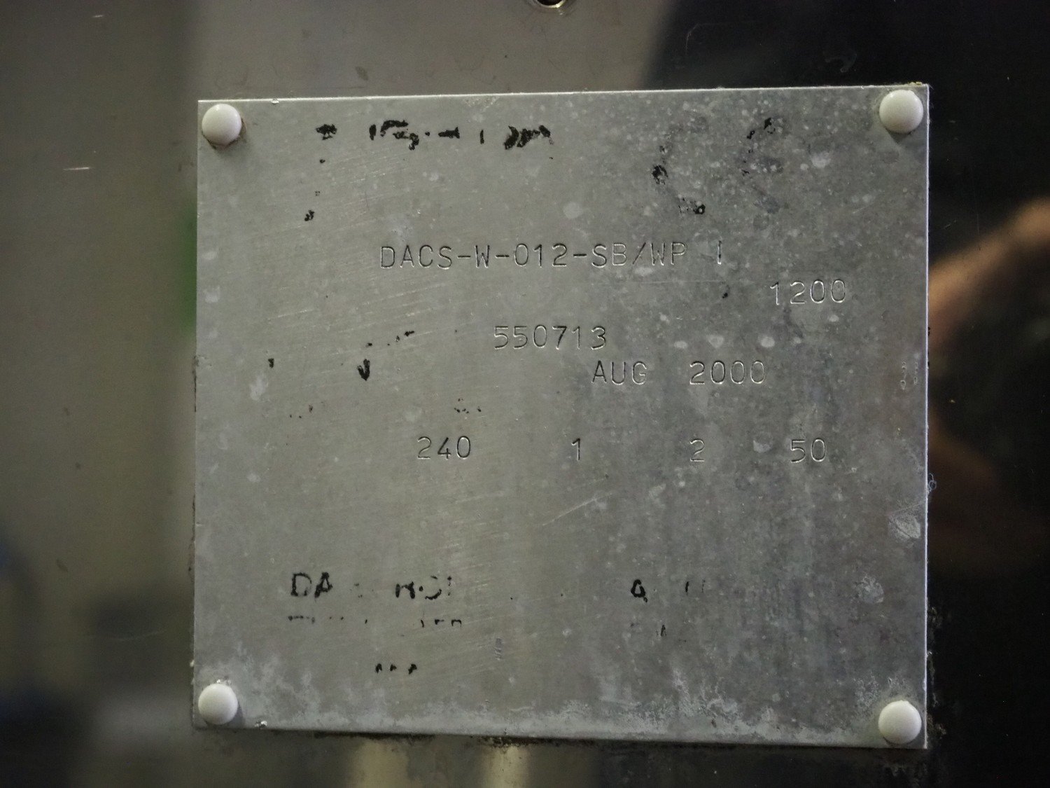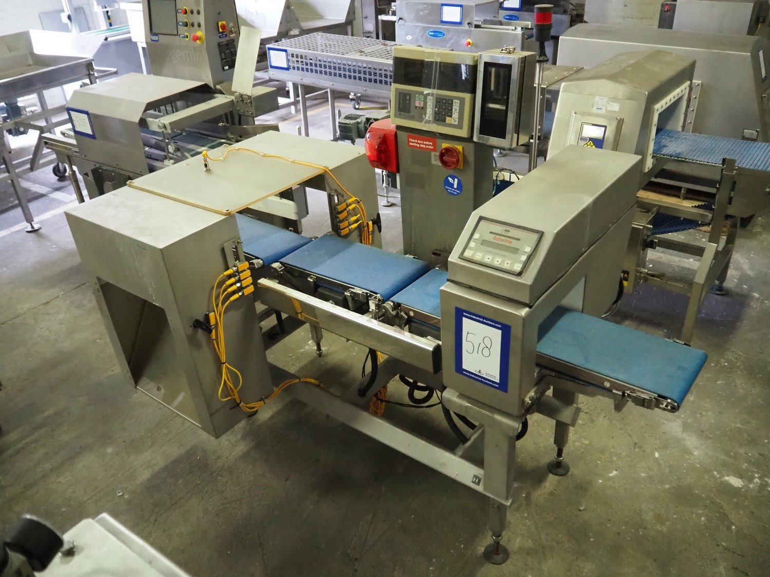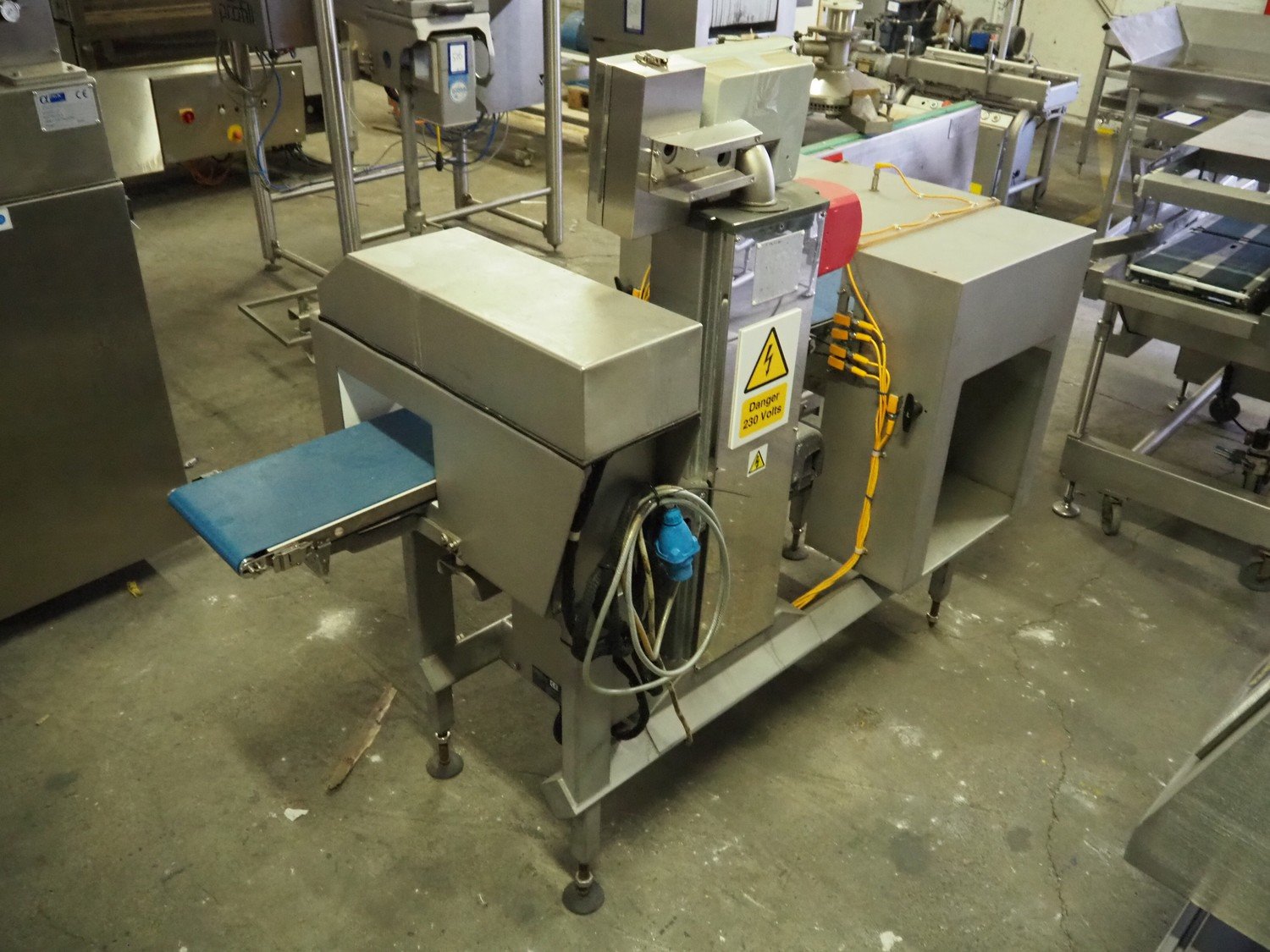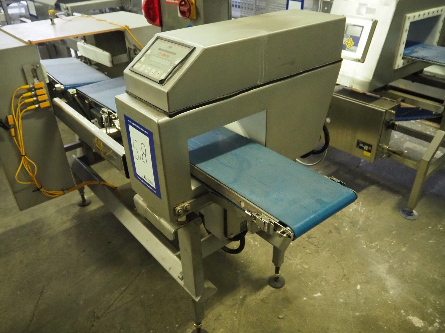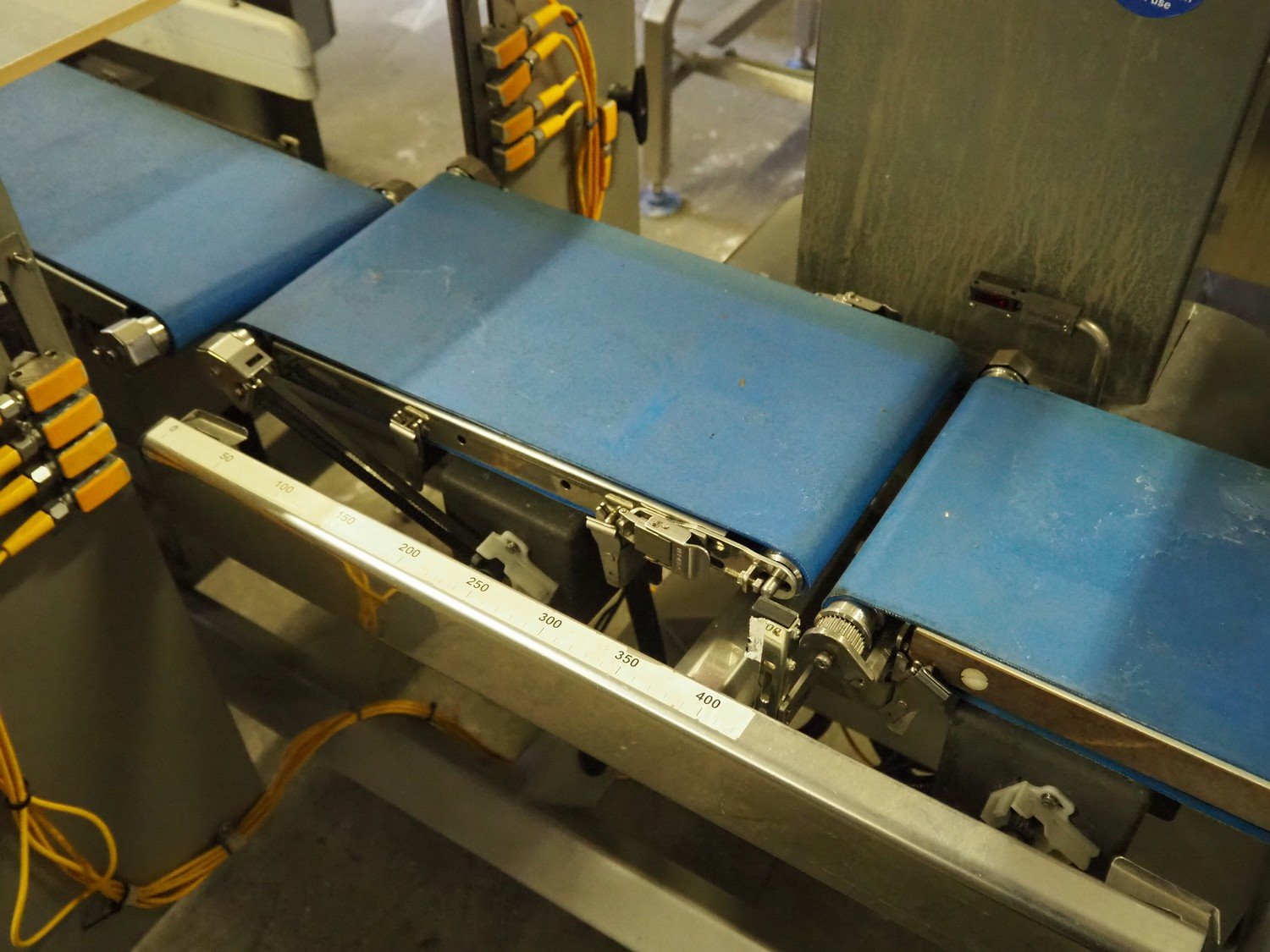 Ishida/Safeline metal detector, checkweigher and rejector, type: DACS-W-012-SB/WP I, number: 550713, year of construction: 08-2000, 240 V, 1 Ph, 50 Hz, 2 A, plastic belt, belt width: 220 mm, clearance: 270 mm x 100 mm, total dimensions: 1850 mm x 950 mm x 1450 mm.