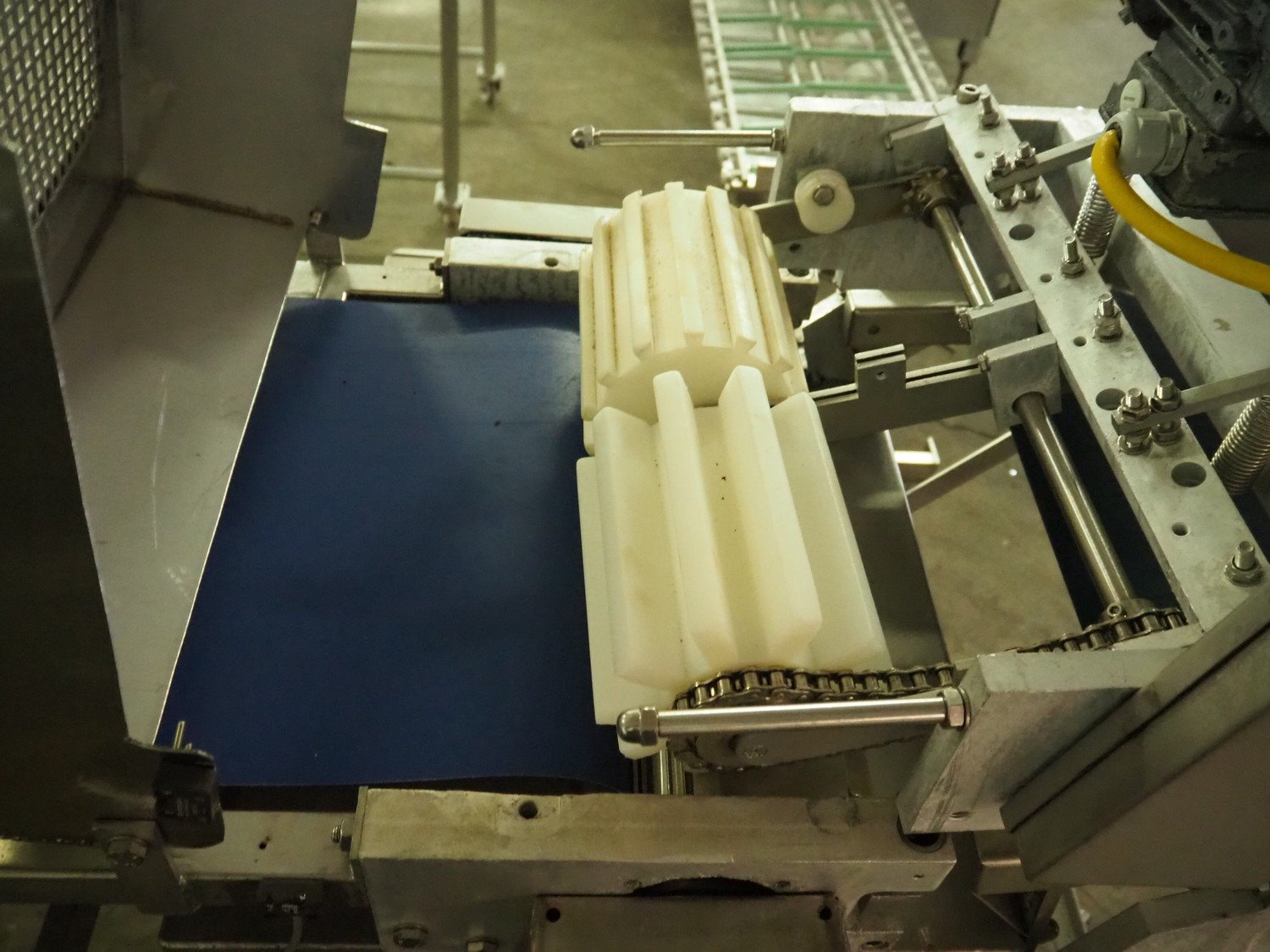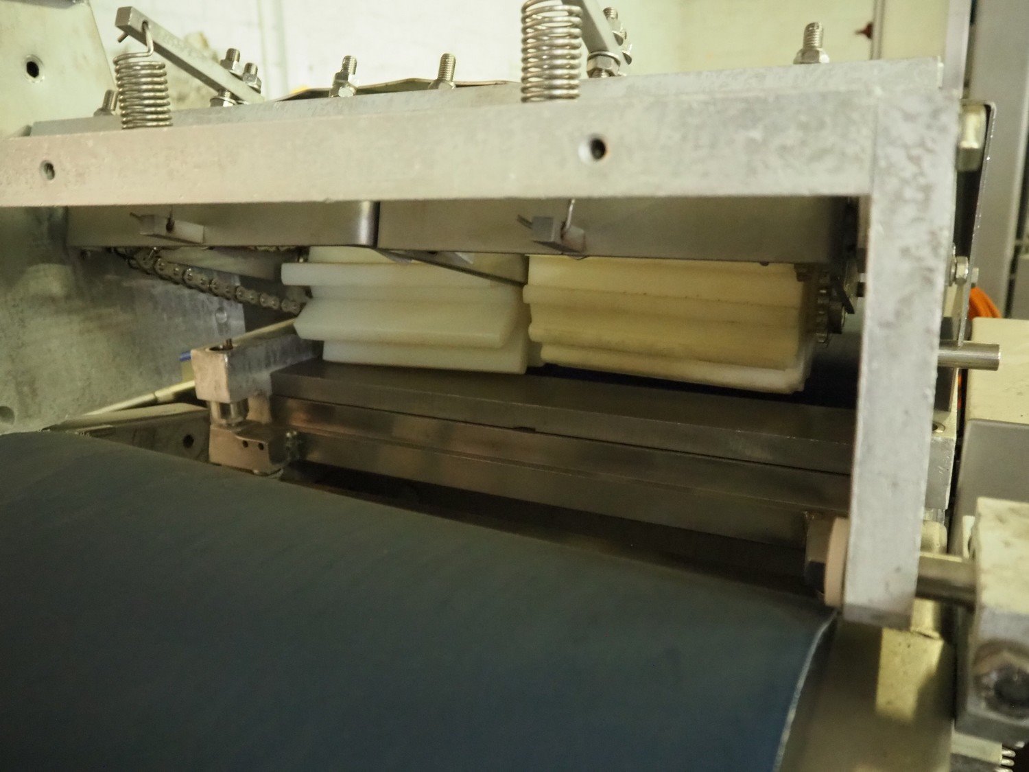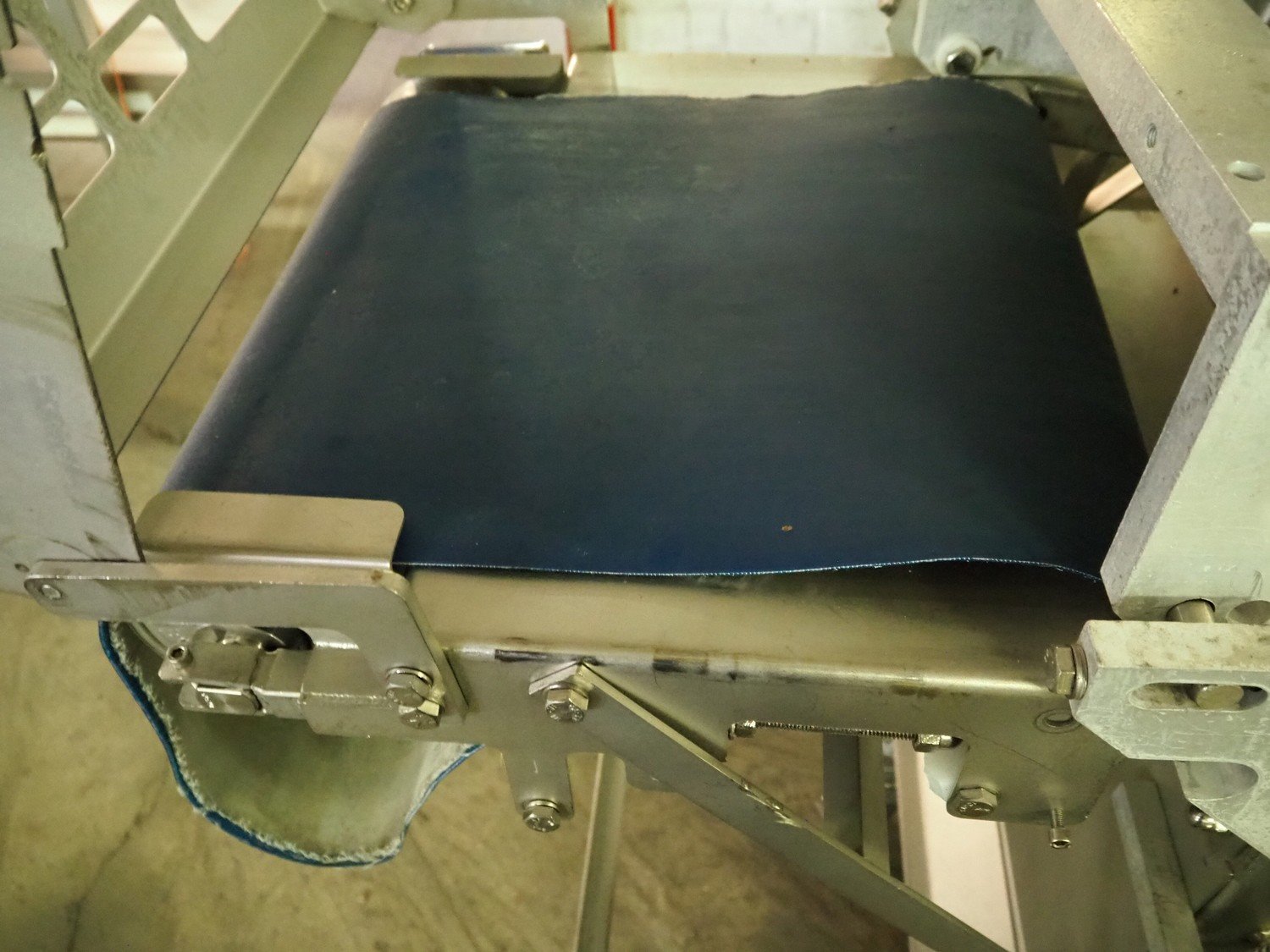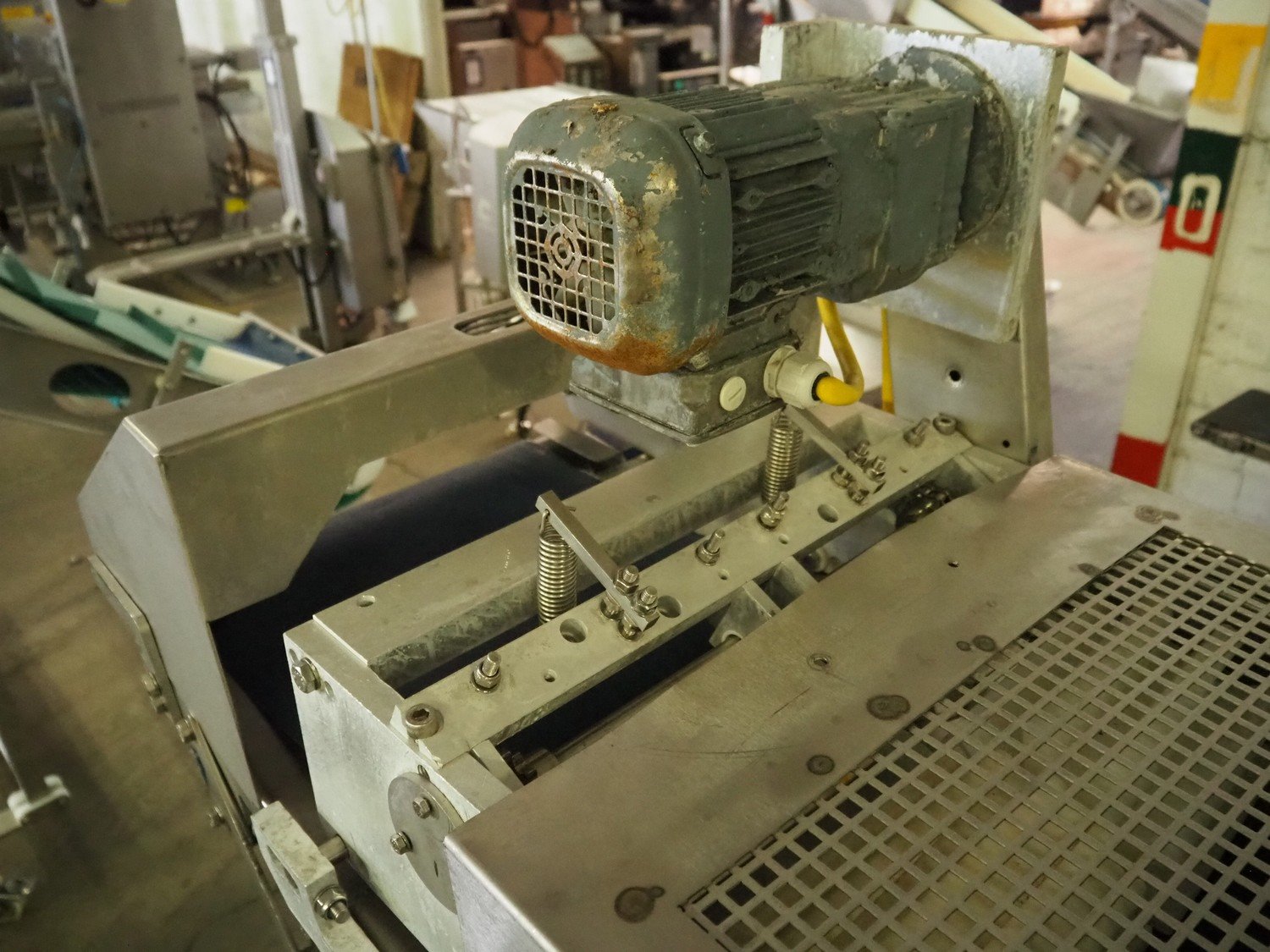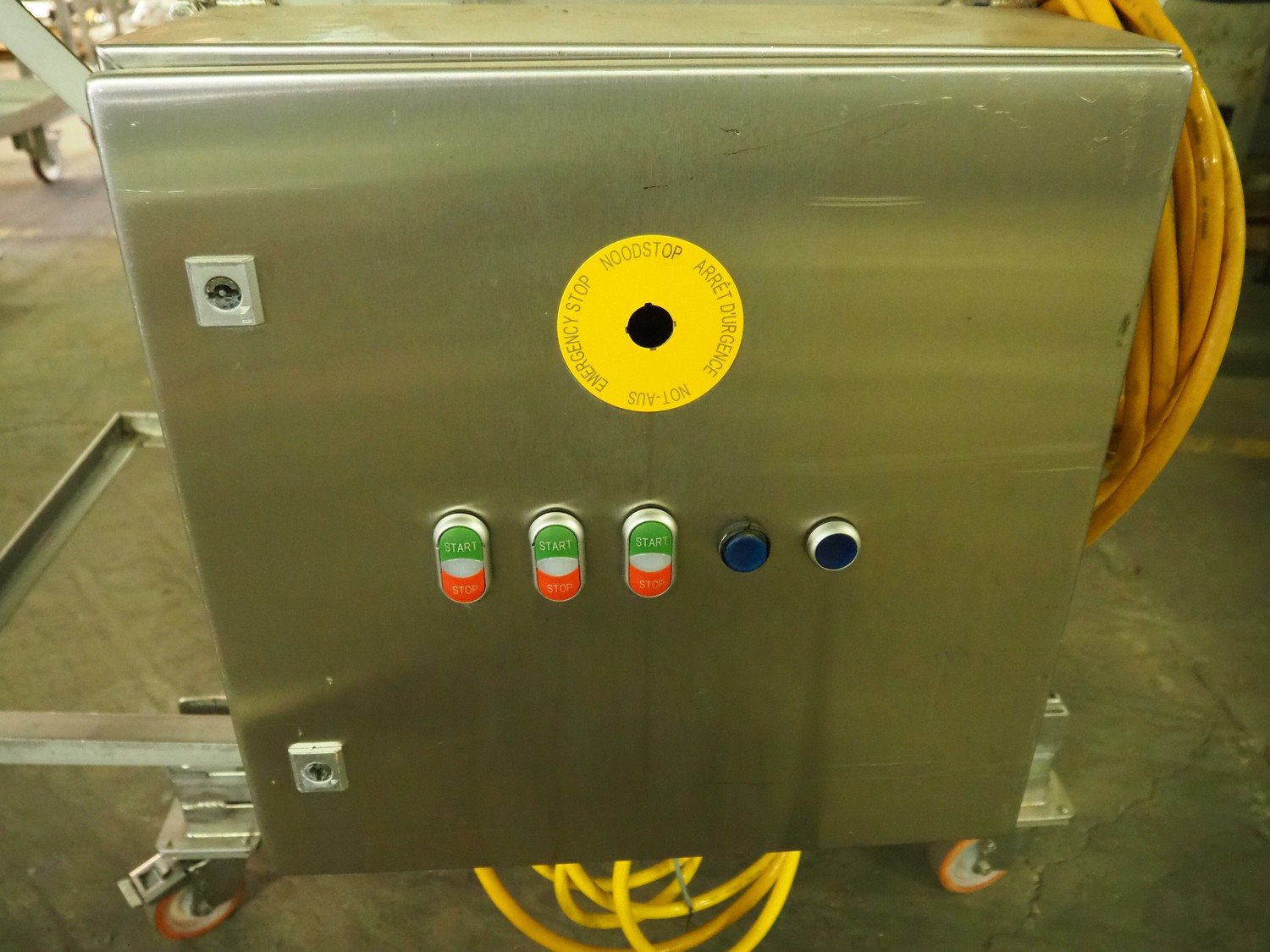 Steen mobile skinning machine, type: ST600 KIP, serial number: 247211293A, 380 V, 50 Hz, plastic belt, belt width: 430 mm, total dimensions: 1850 mm x 900 mm x 1650 mm. Incomplete.