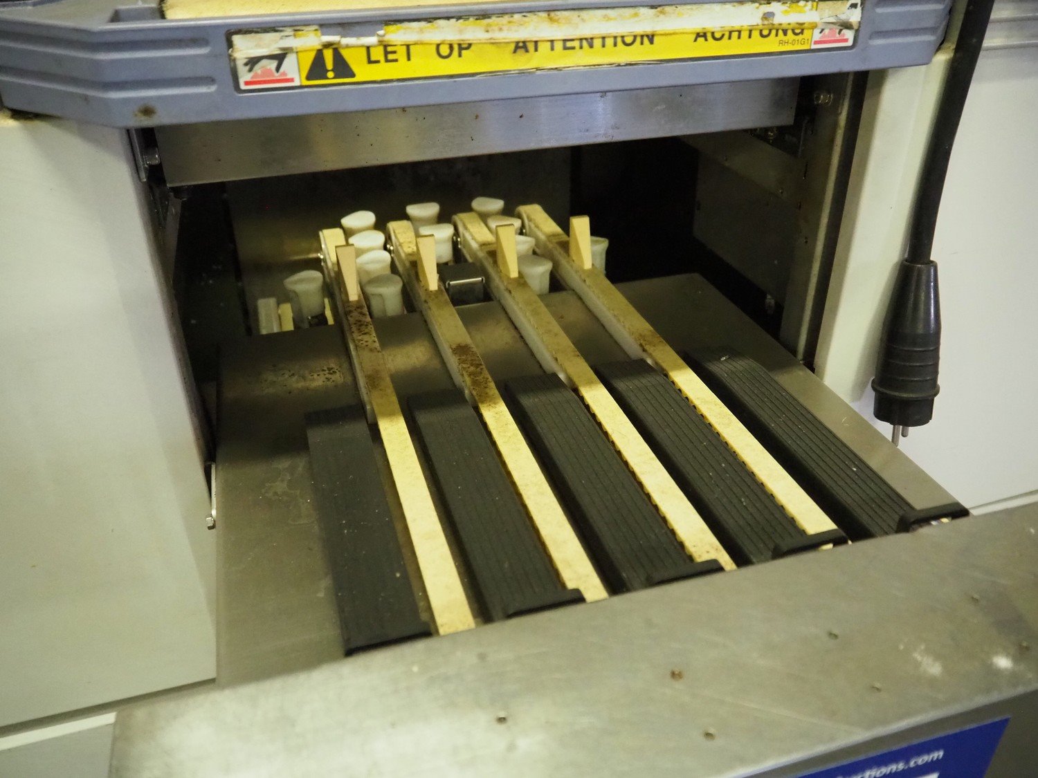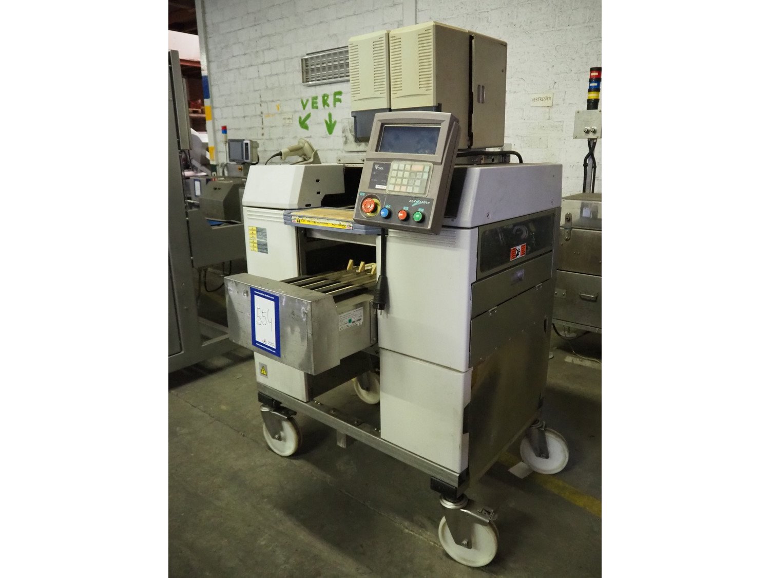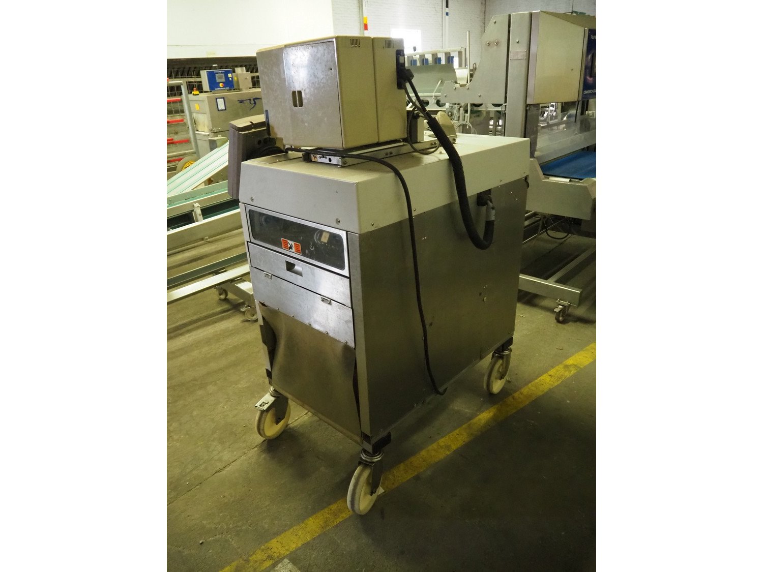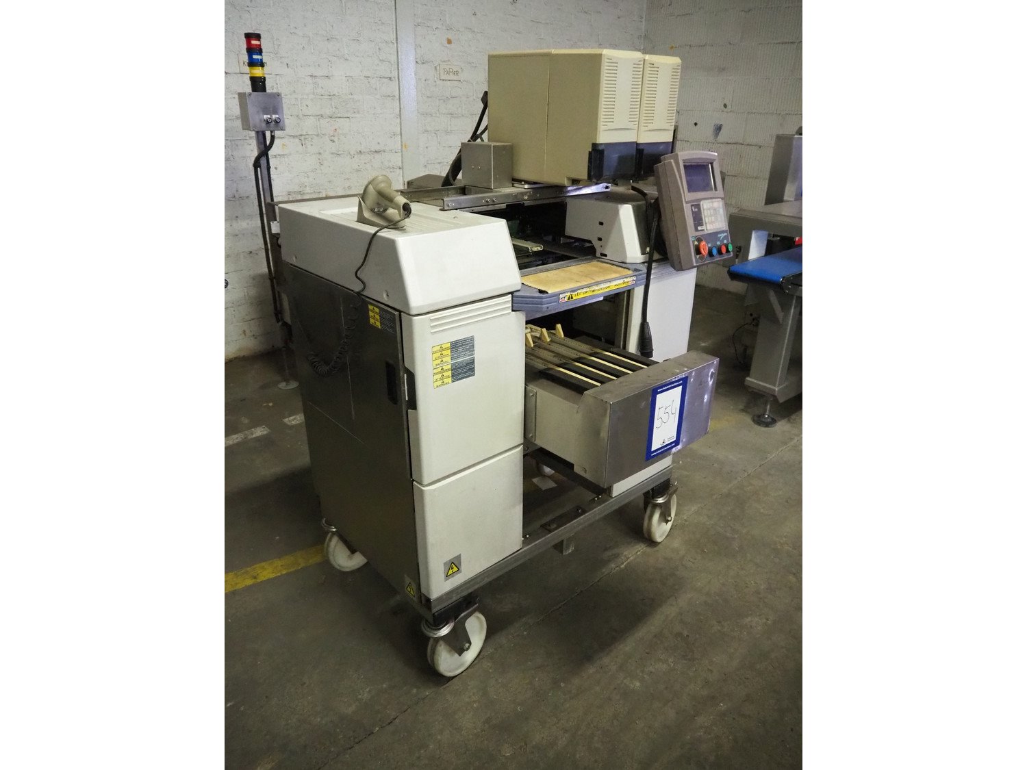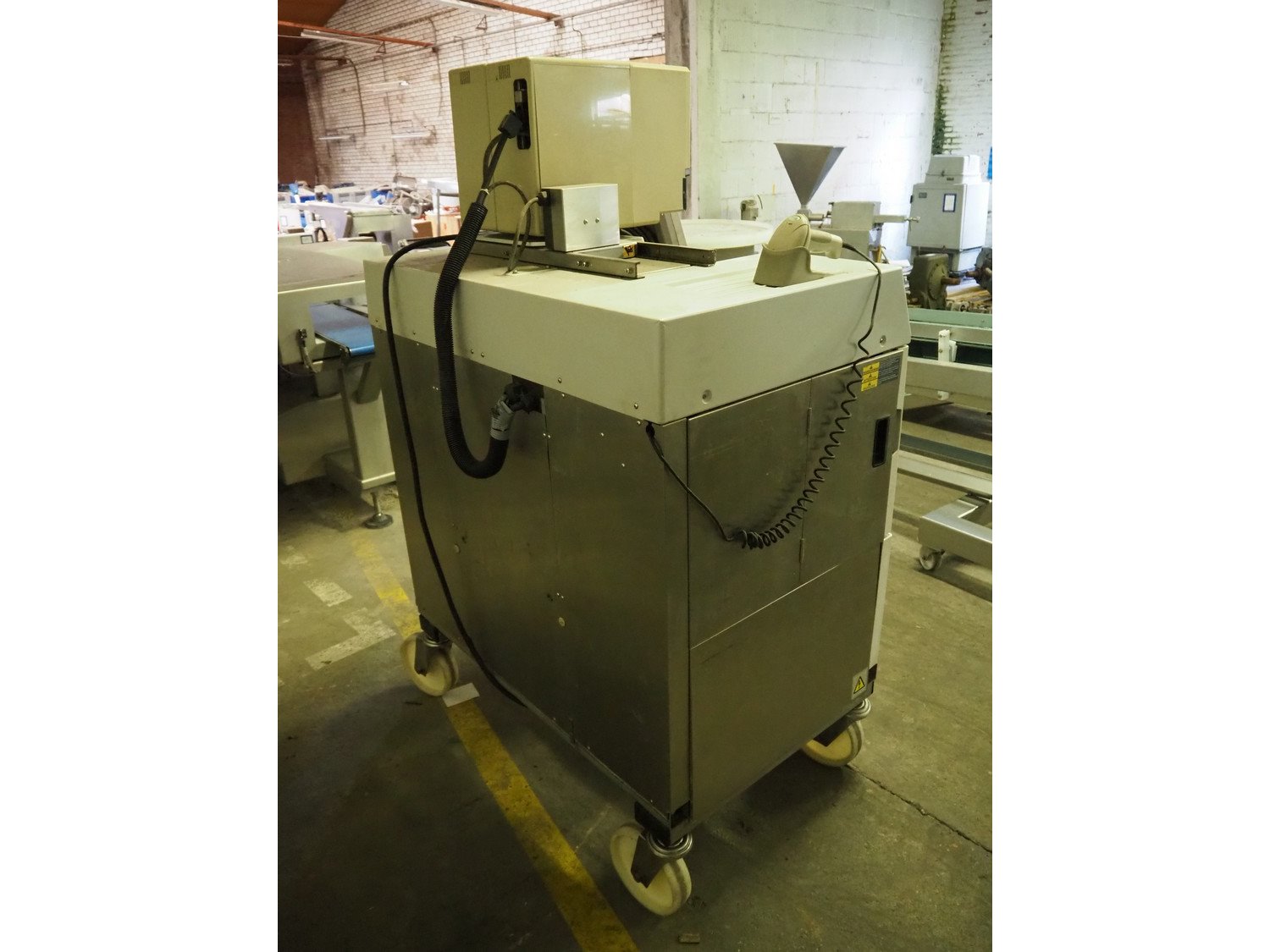 Teraoka Seiko Co., LTD mobile semi automatic weigh, wrap and labelling machine, model: AW-3600CP, serial number: 05160908, 380-415/220-240 V, 1/3 Ph, 50/60 Hz, 6 A, 1.4 kW, maximum weight: 3/6 kg, minimum weight: 20 gram, e=1/2 gram, T=-2.999 kg, dimensions: 1060 mm x 850 mm x 1660 mm.