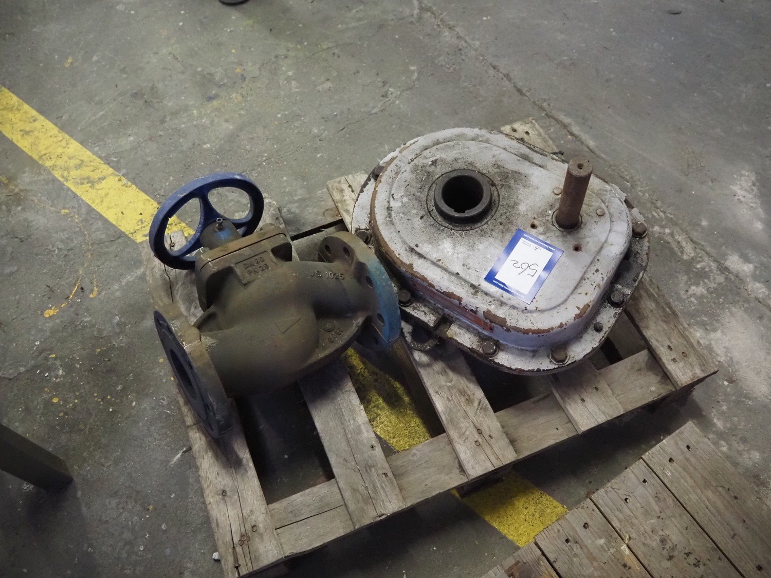 Valve and gearbox, dimensions: 800 mm x 600 mm x 350 mm.