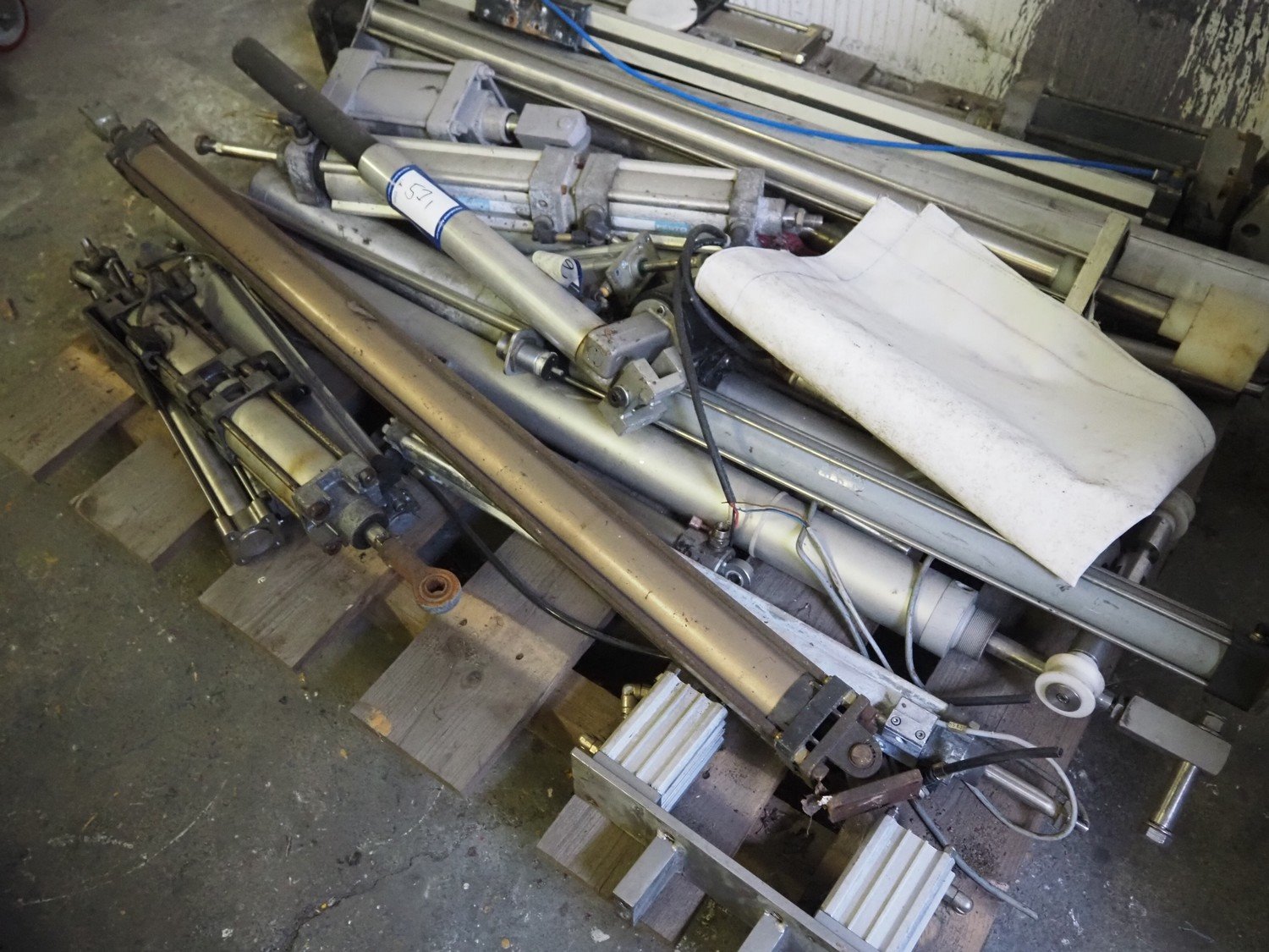 Pallet with large amount of pneumatic parts, dimensions: 1750 mm x 1250 mm x 300 mm.
