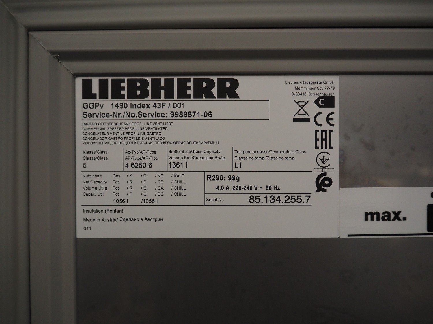 Liebherr-Hausgeräte GmbH s/s freezer, model: HHPv 1490 Index 43F / 001, serial number: 85.134.255.7, 220-240 V, 50 Hz, 4.0 A, brut volume: 1361 liter, net volume: 1056 liter, refrigerant: R290/99gram, dimensions: 1420 mm x 820 mm x 2140 mm.