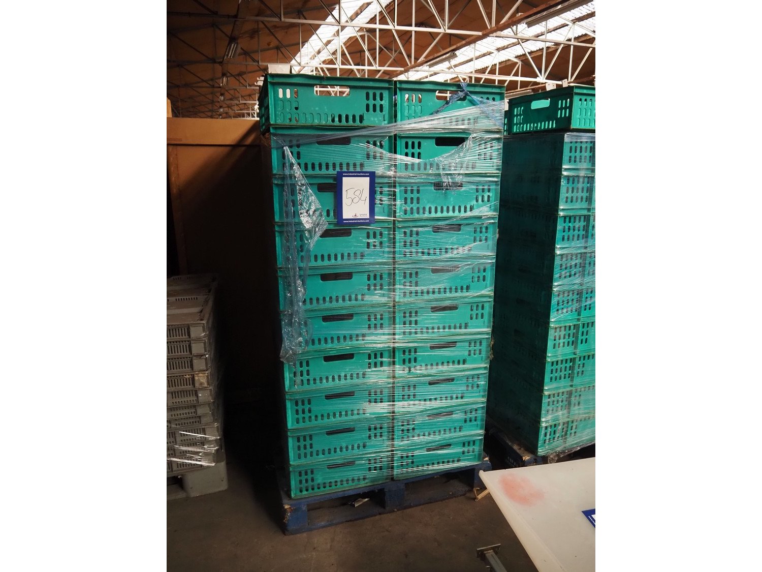 Pallet with approximately 30 crates, dimensions each crate: 760 mm x 460 mm x 180 mm, total dimensions: 1200 mm x 1000 mm x 1860 mm.
