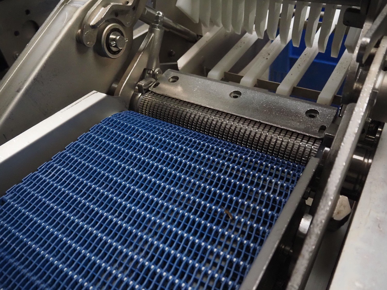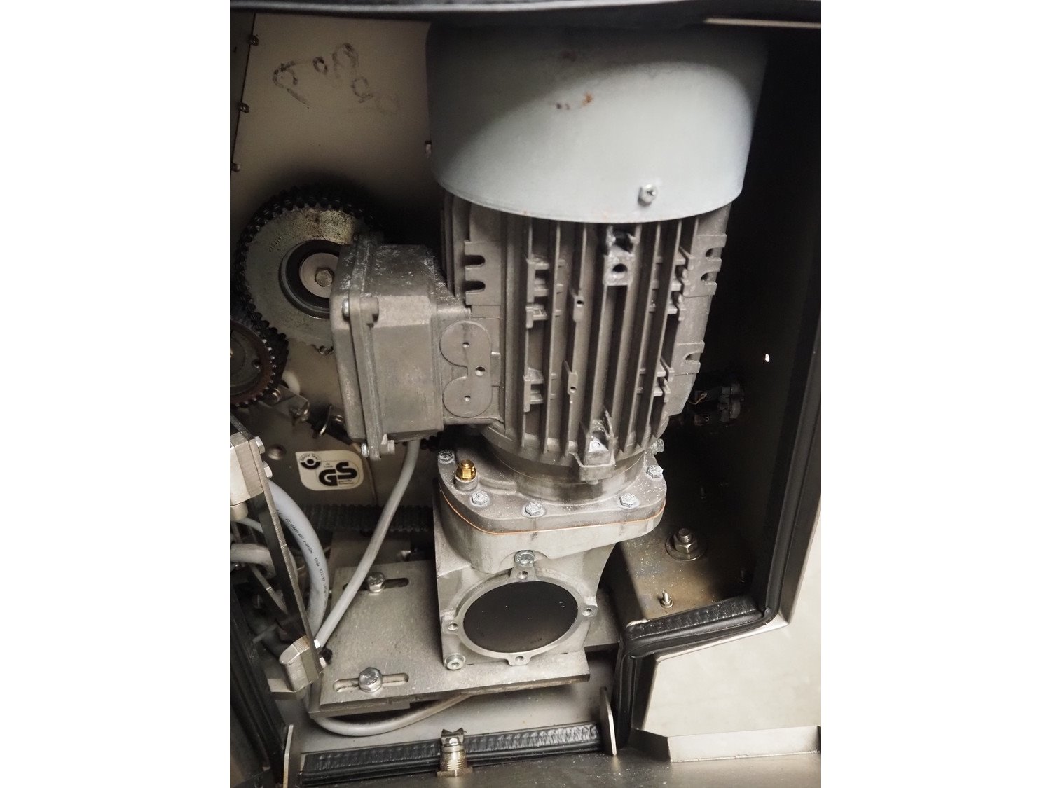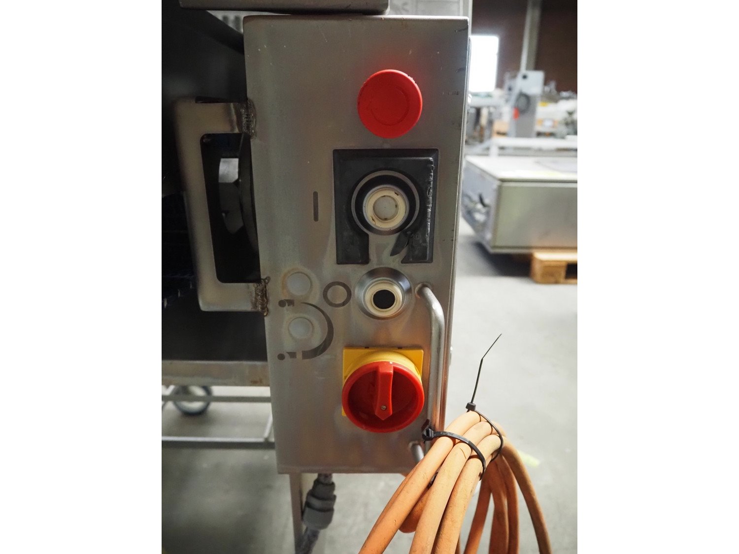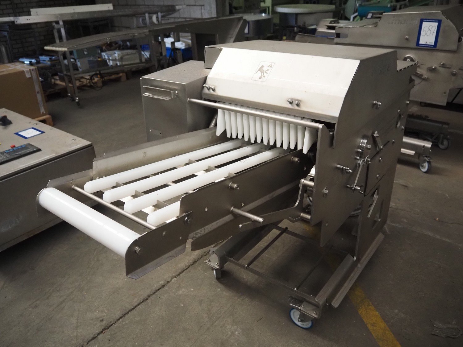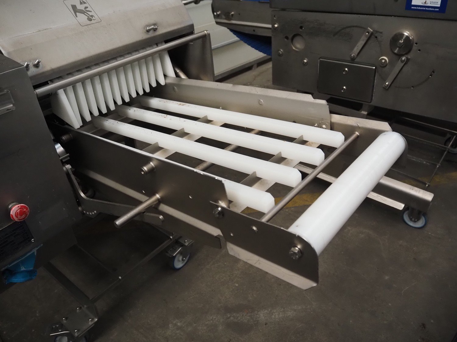 Marel Inc mobile skinning and derinding machine, model: SK 15-350 INCH, type: 9833263, serial number: 10398701, year of construction: 2017, 400 V, 3 Ph, 50 Hz, 3.5 A, 5 kA, weight: 356 kg, plastic mesh belt, belt width: 350 mm, working width: 360 mm, total dimensions: 2100 mm x 900 mm x 1240 mm. Incomplete.