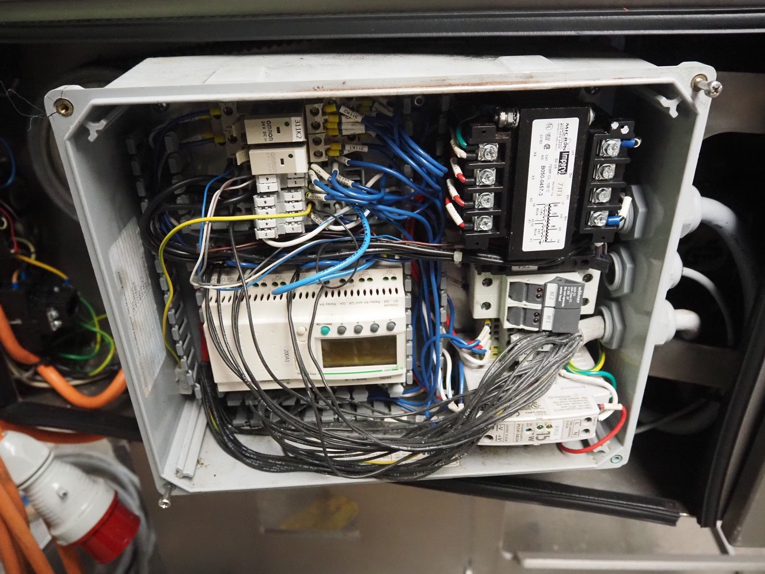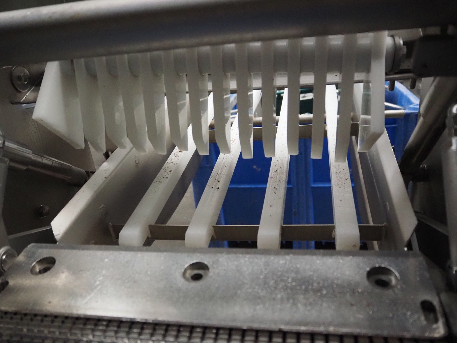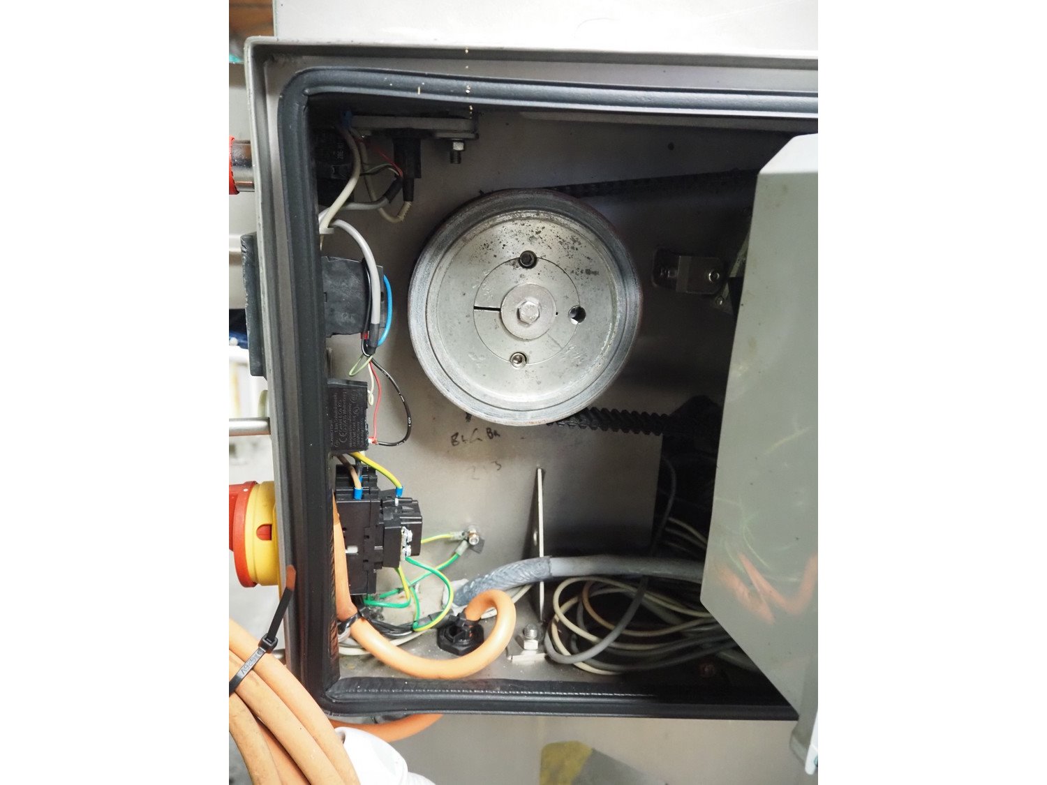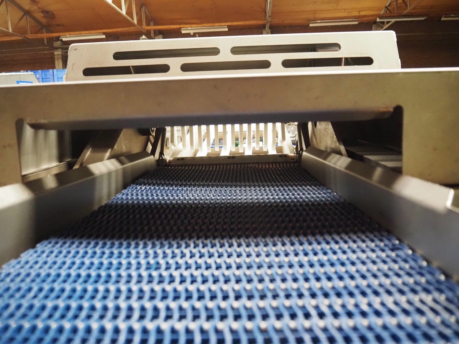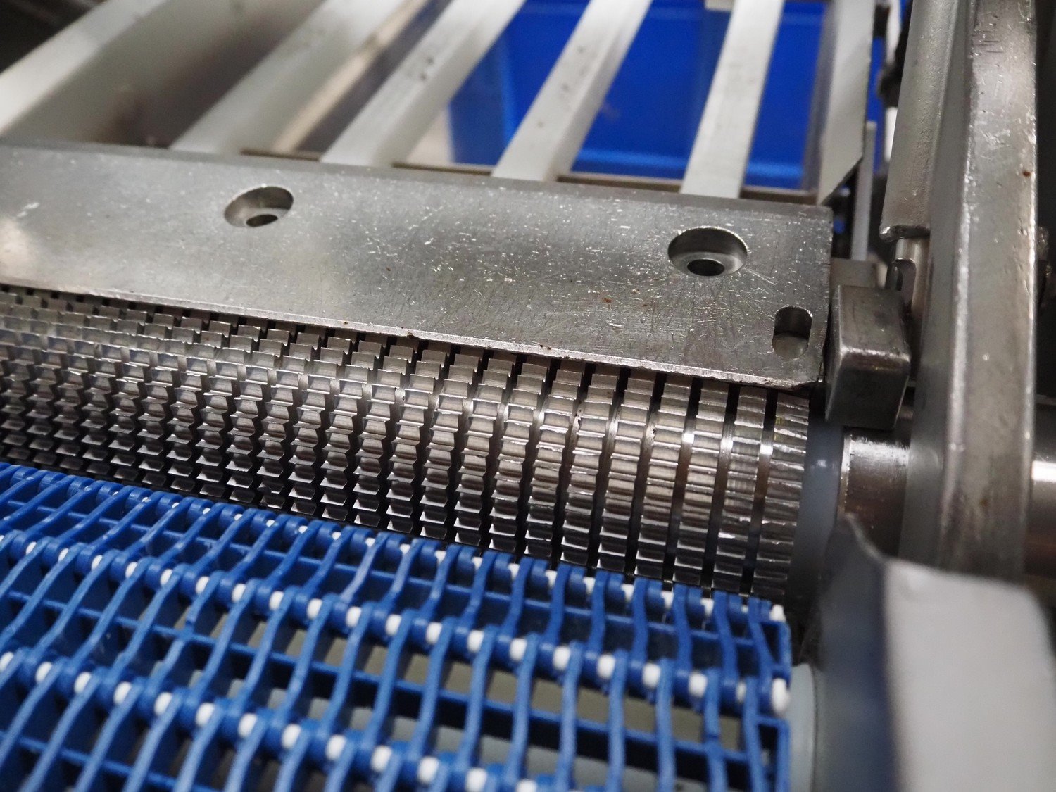 Marel Inc mobile skinning and derinding machine, model: SK 15-350 INCH, type: 9833263, serial number: 10398701, year of construction: 2017, 400 V, 3 Ph, 50 Hz, 3.5 A, 5 kA, weight: 356 kg, plastic mesh belt, belt width: 350 mm, working width: 360 mm, total dimensions: 2100 mm x 900 mm x 1240 mm. Incomplete.
