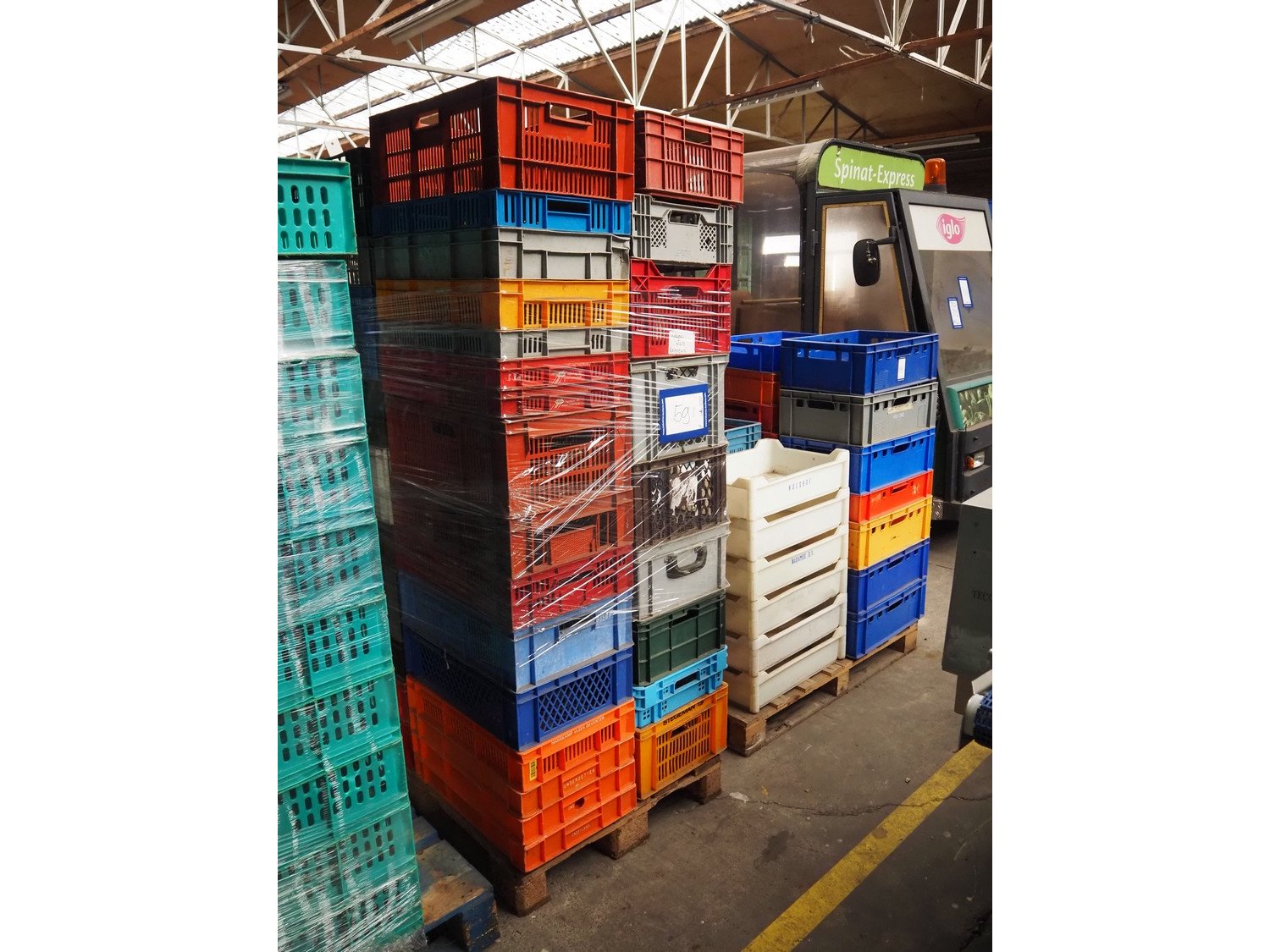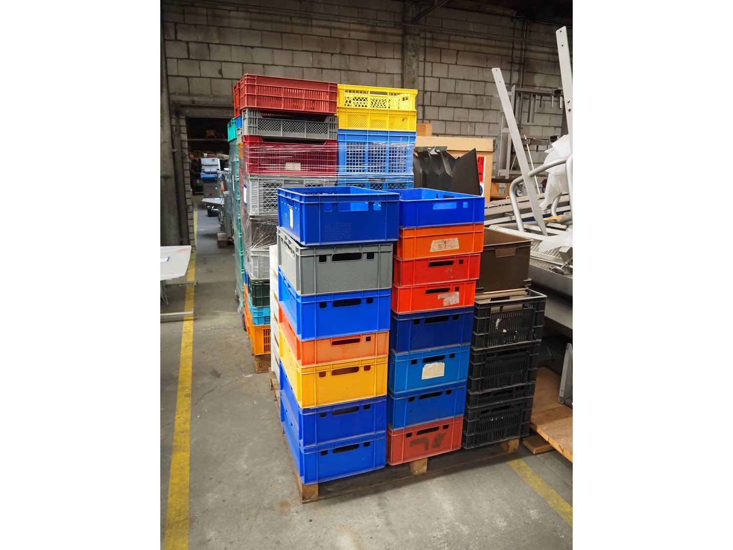 2 pallets with large amount of various plastic crates, dimensions: (2x) 1200 mm x 1000 mm x 1500 mm.