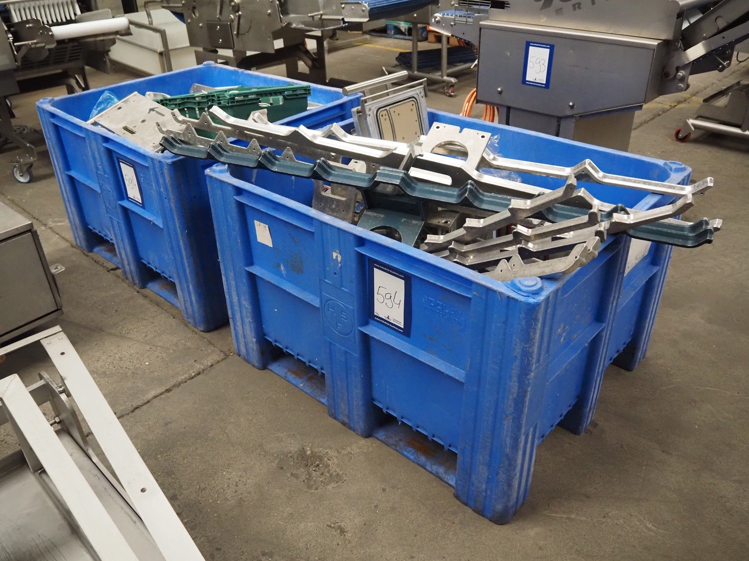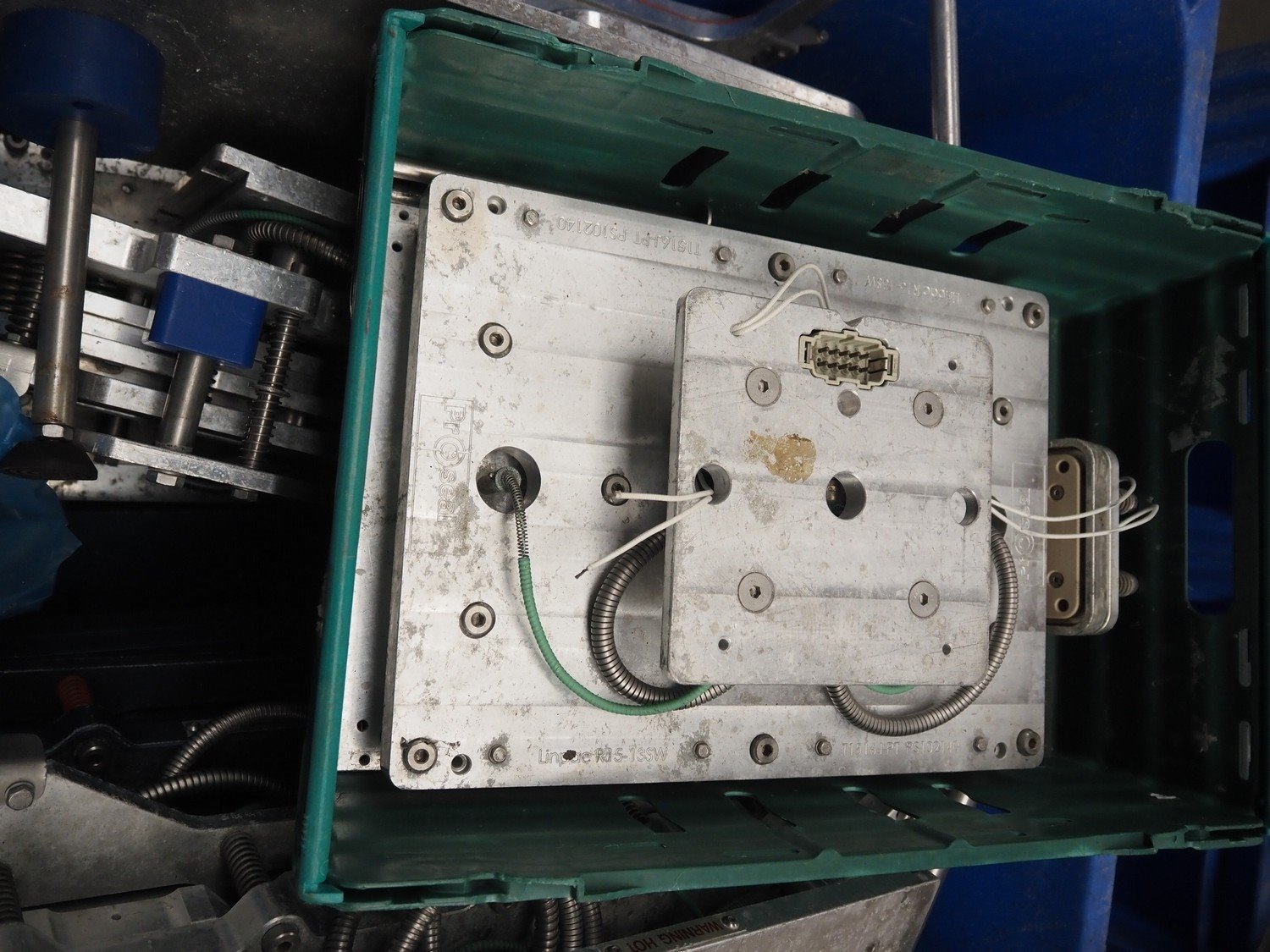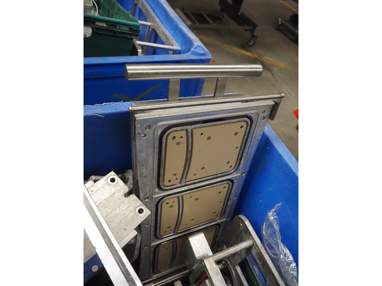 2 Dolav pallet boxes and crate with dyes and grippers for Proseal traysealers, dimensions pallet boxes: (2x) 1200 mm x 1000 mm x 750 mm.
