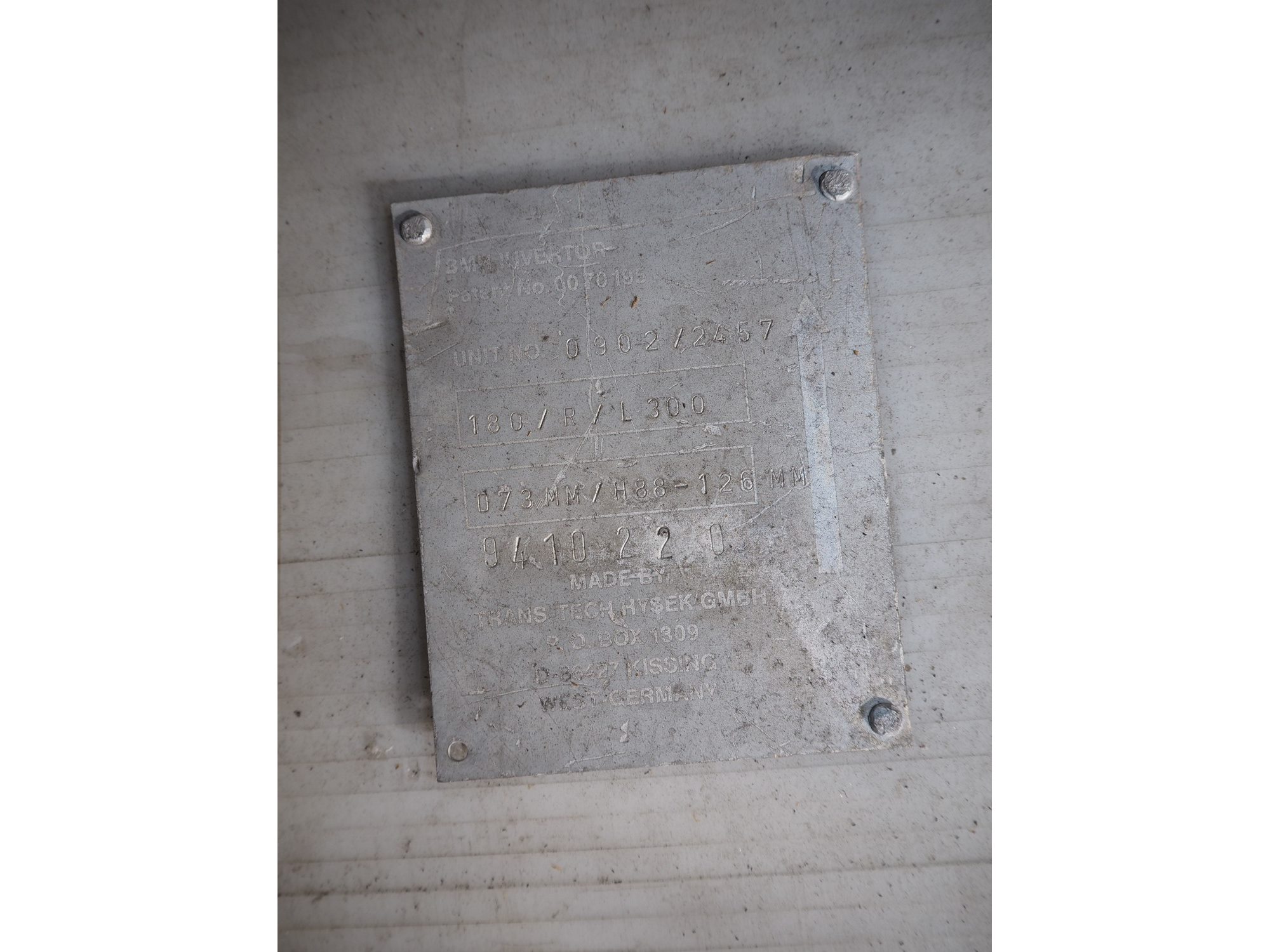 5 Trans-Tech Hysek GmbH can invertors, clearance: 150 mm x 80 mm, dimensions: 380 mm x 195 mm x 200 mm, 240 mm x 390 mm x 260 mm, 600 mm x 300 mm x 180 mm, 380 mm x 180 mm x 200 mm, 380 mm x 200 mm x 200 mm.