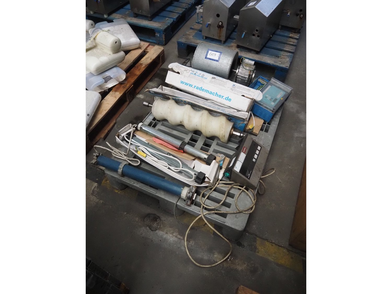 Pallet with parts, dimensions pallet: 1200 mm x 800 mm x 450 mm.