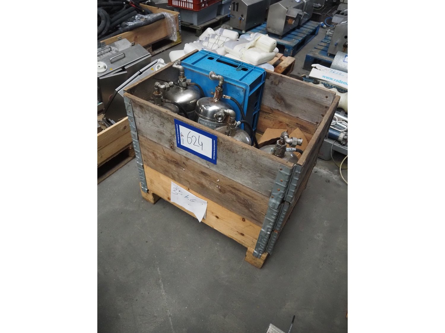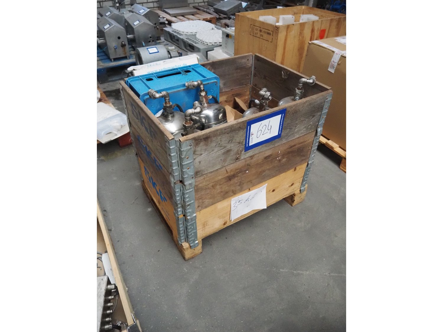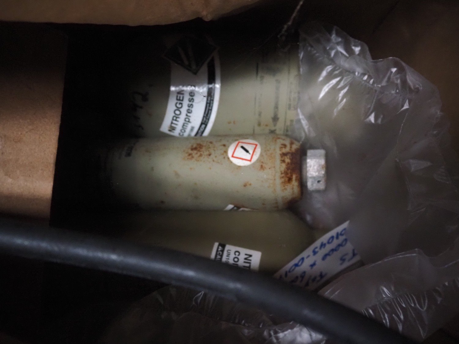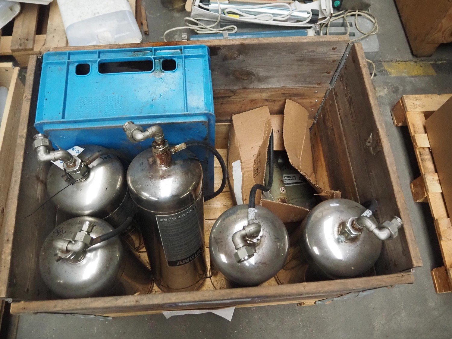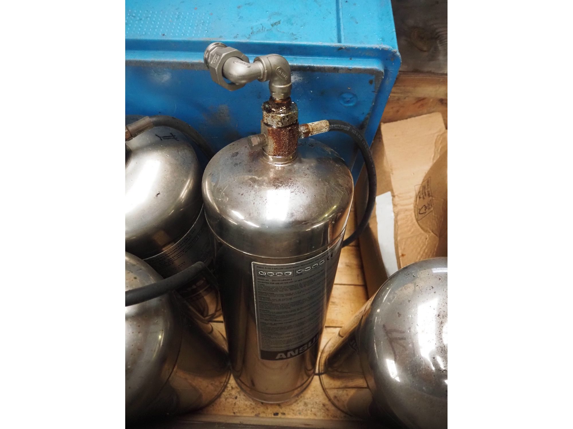 Crate with 5 Ansul fire suppression system vessels, liquid: R-102, dimensions: 800 mm x 600 mm x 800 mm.