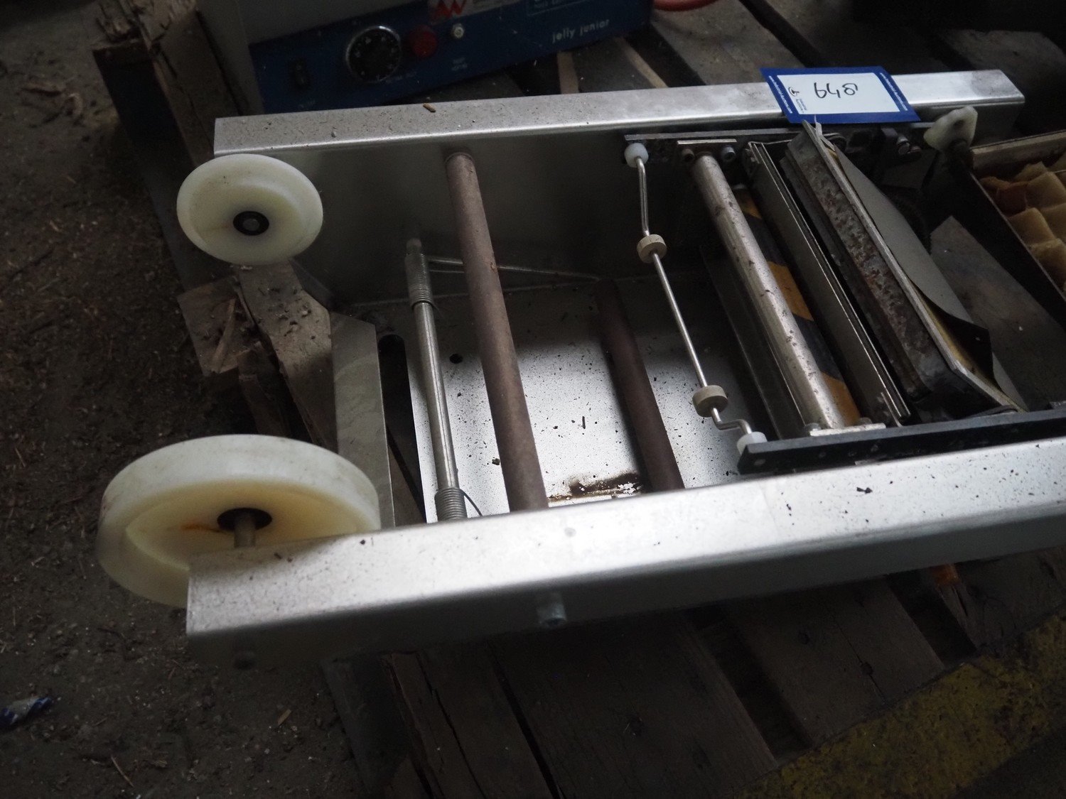 Coppens packaging machine, machine number: 47590000162, dimensions dye: 215 mm x 145 mm, total dimensions: 770 mm x 400 mm x 250 mm.