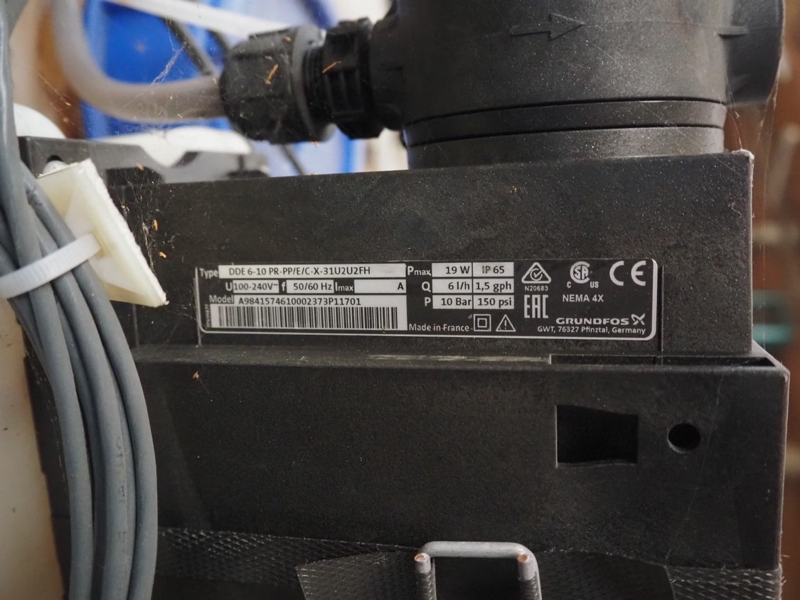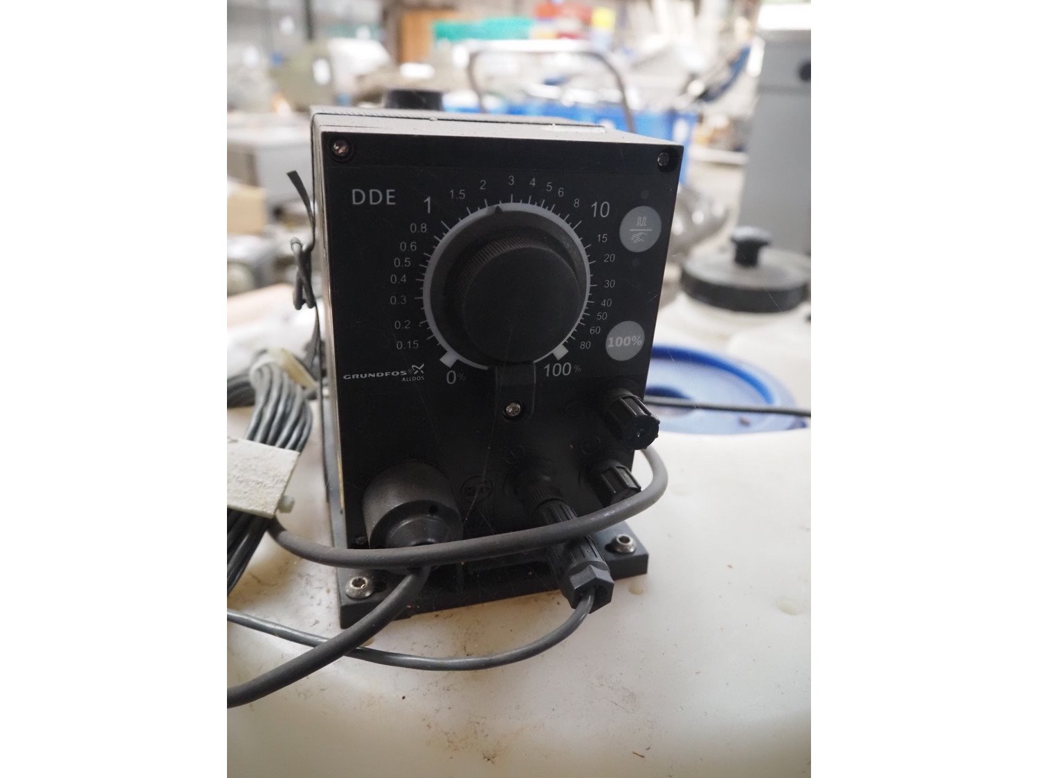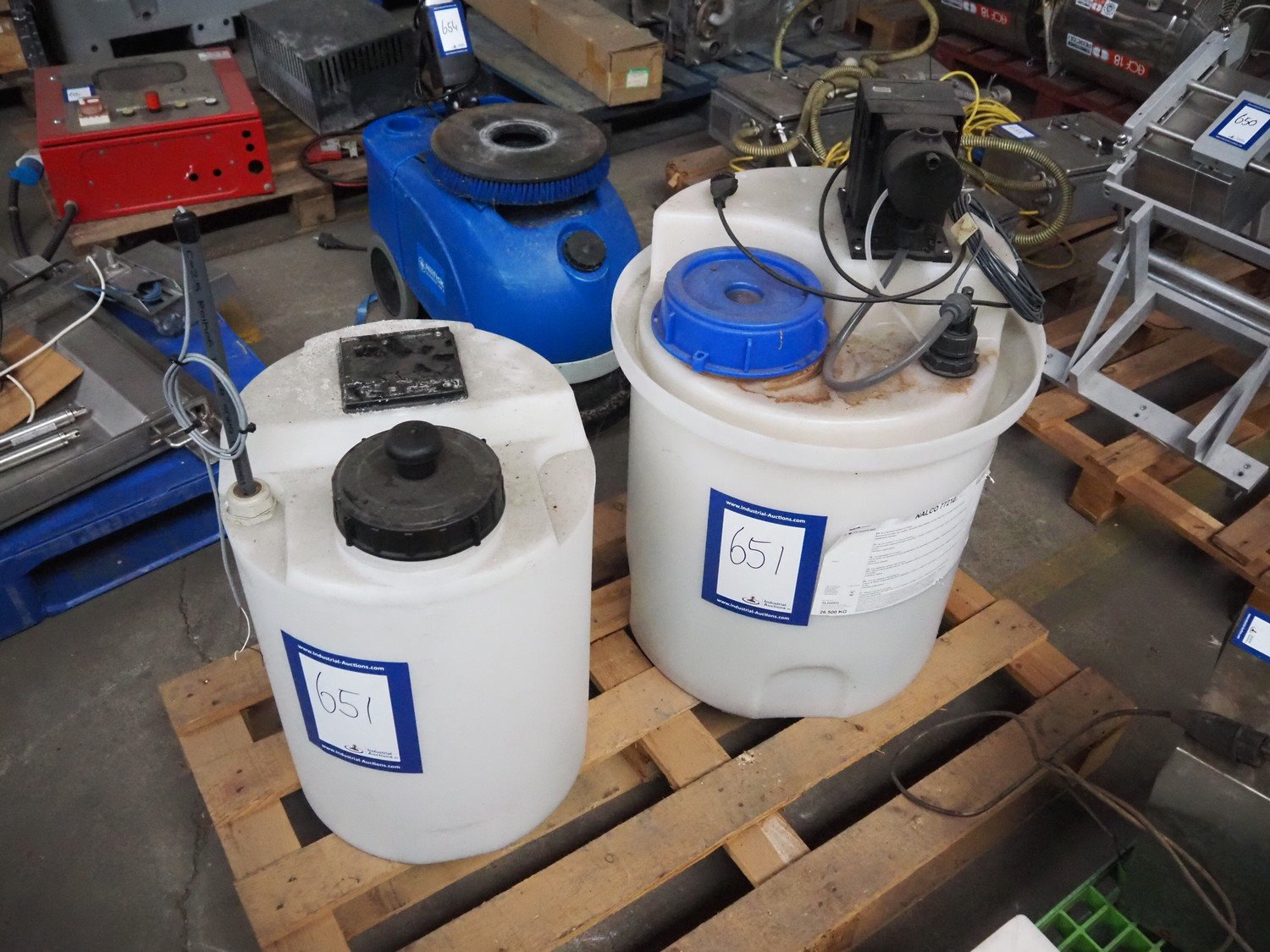 (2x) Plastic tubs (1x) with metering pump, volume: 100 liter, 60 liter.