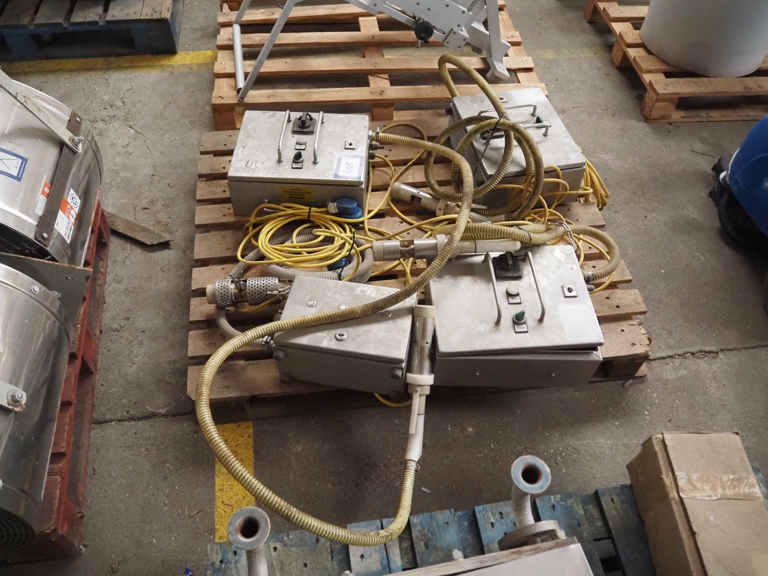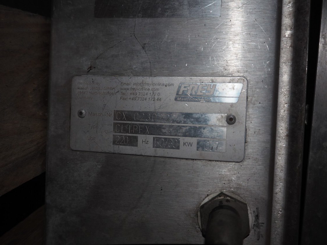 4 Frey Maschinenbau GmbH casing closing machines, type: Clipex, machine number: CX 0230222, CX 0052137, CX 0100833 and CX 0470562, 220 V, 50/60 Hz, 0.7 kW, dimensions: (4x) 400 mm x 160 mm x 300 mm.