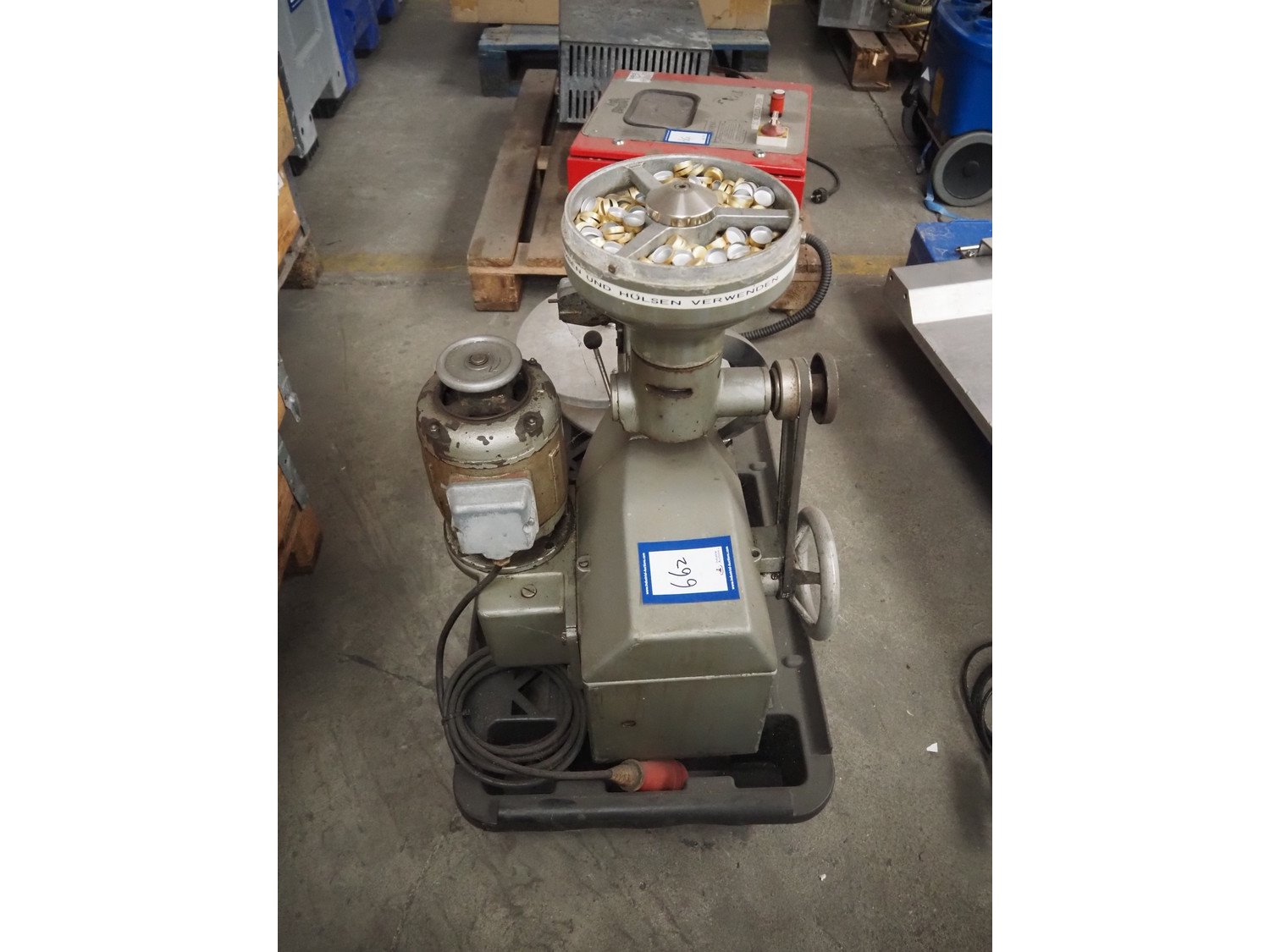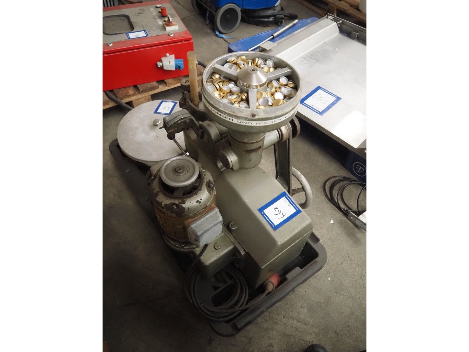 Capping machine, dimensions caps: 20 mm, total dimensions: 600 mm x 500 mm x 750 mm.