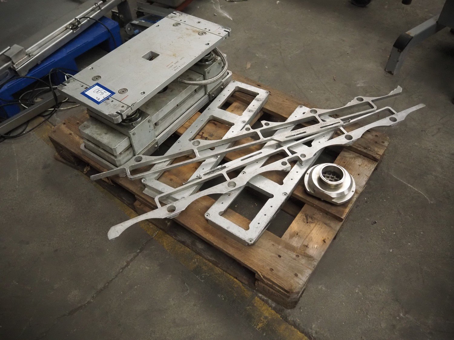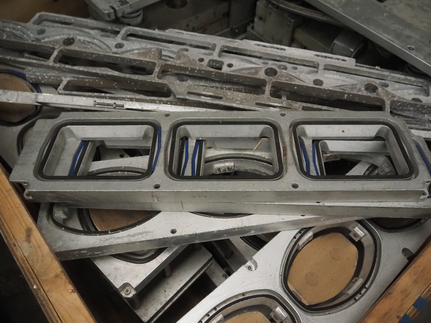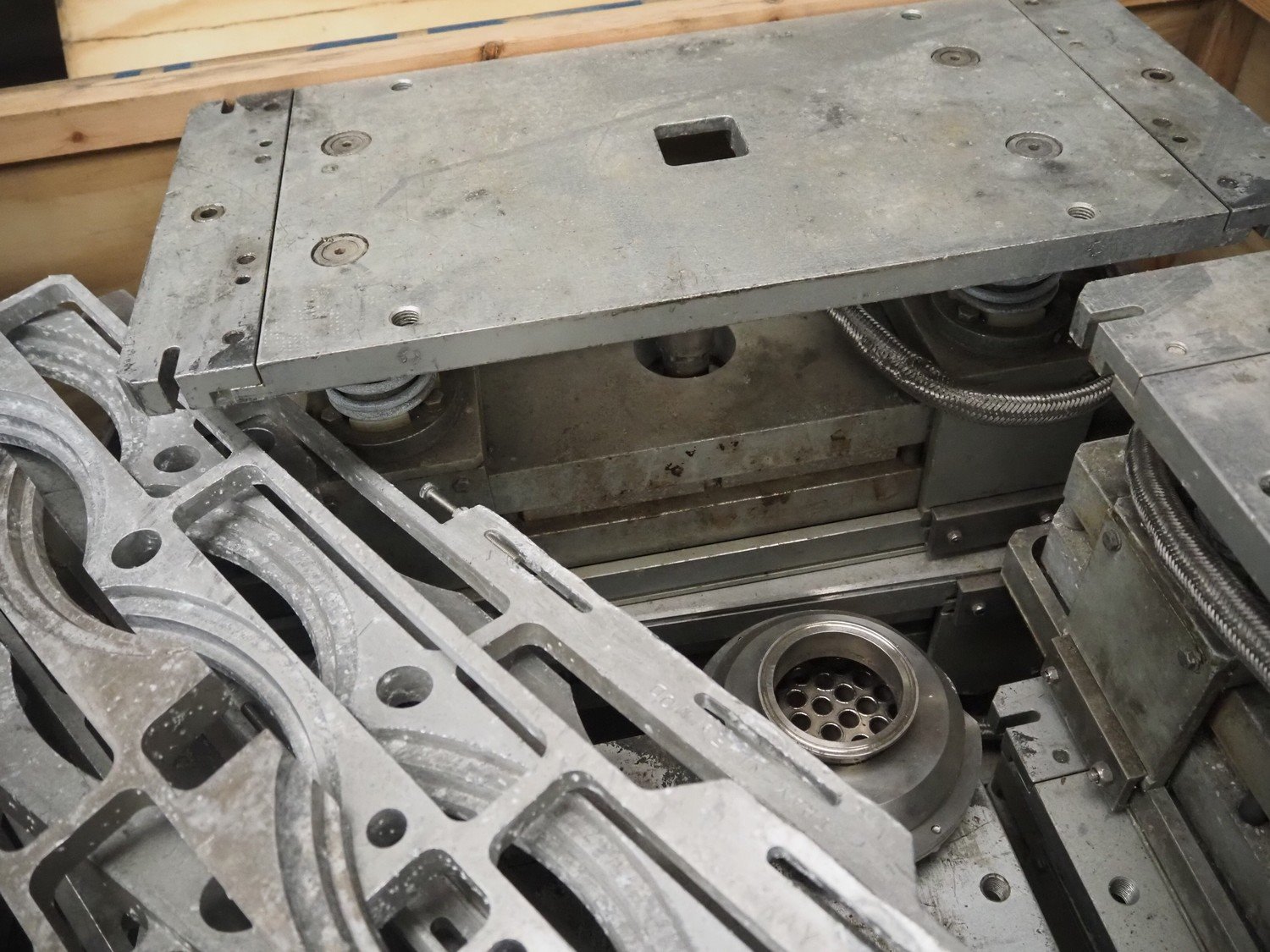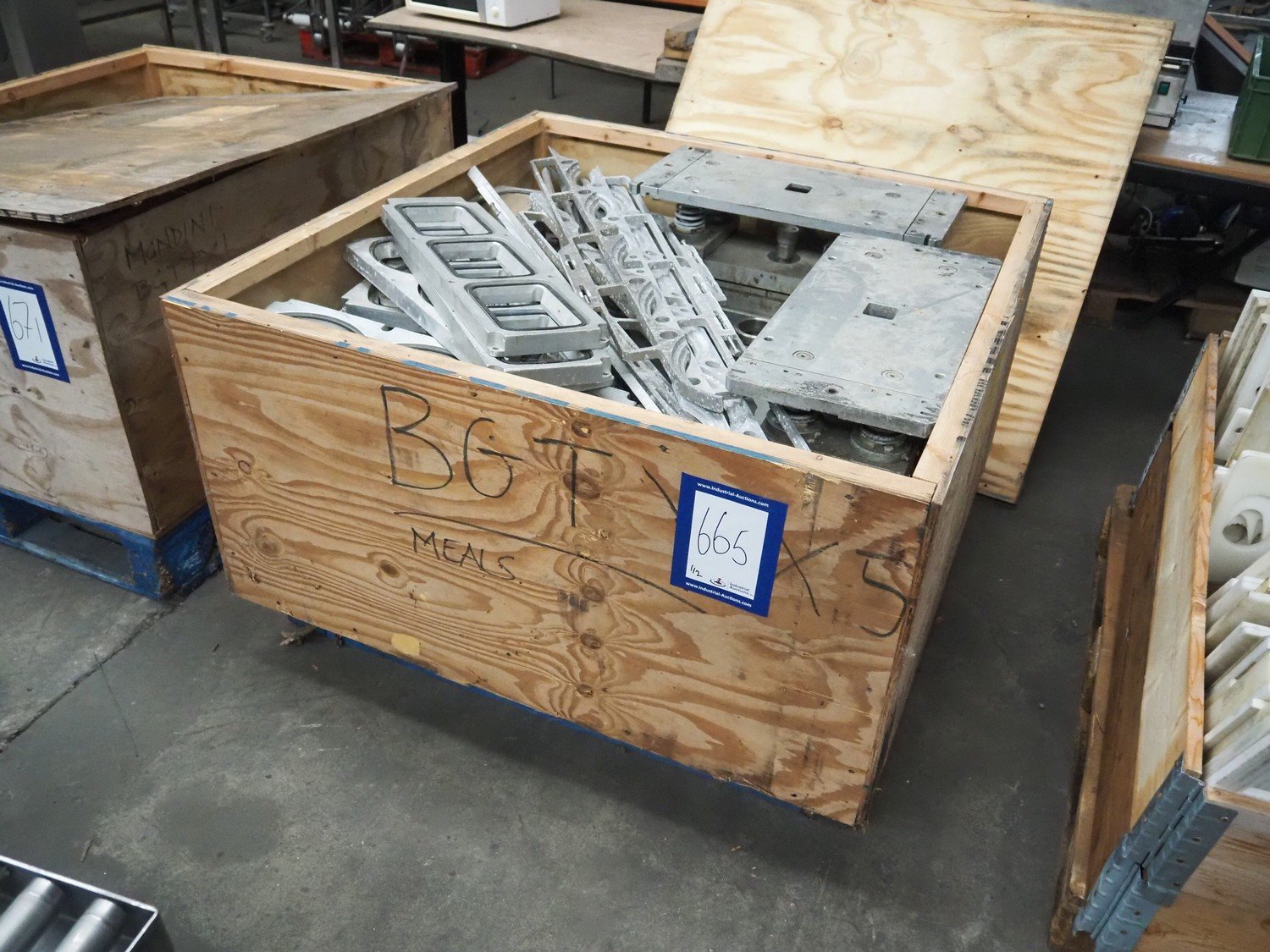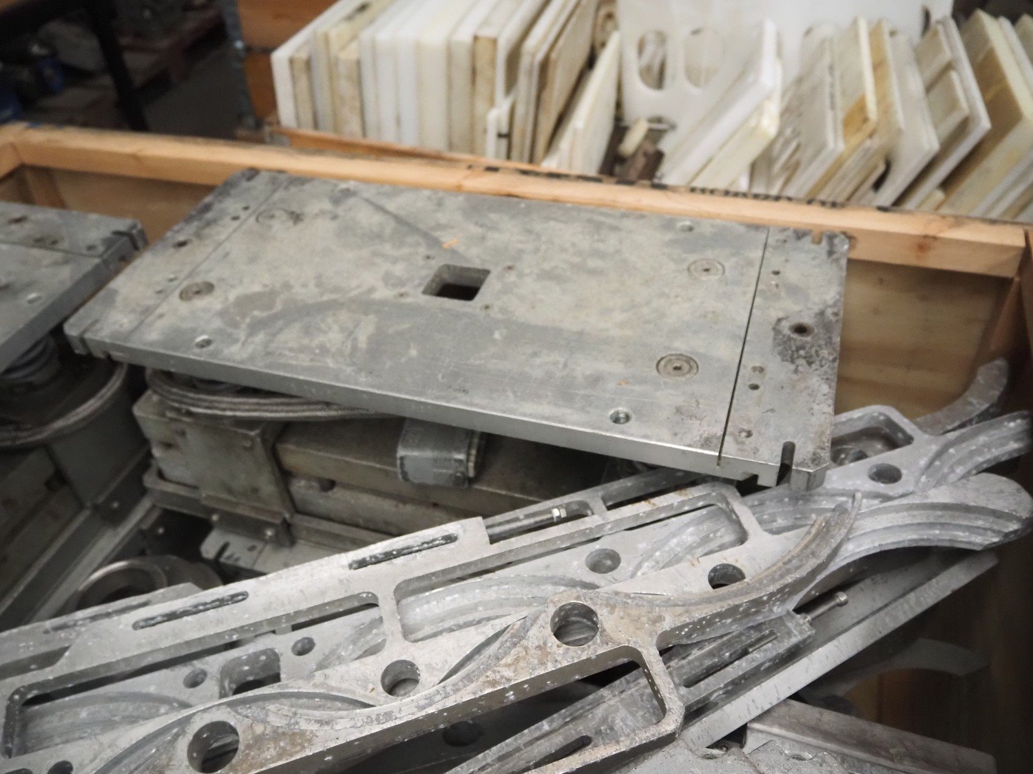 Wooden pallet box and pallet with various dye's for traysealer, dimensions pallet box: 1200 mm x 1200 mm x 850 mm dimensions pallet: 1200 mm x 800 mm x 450 mm.