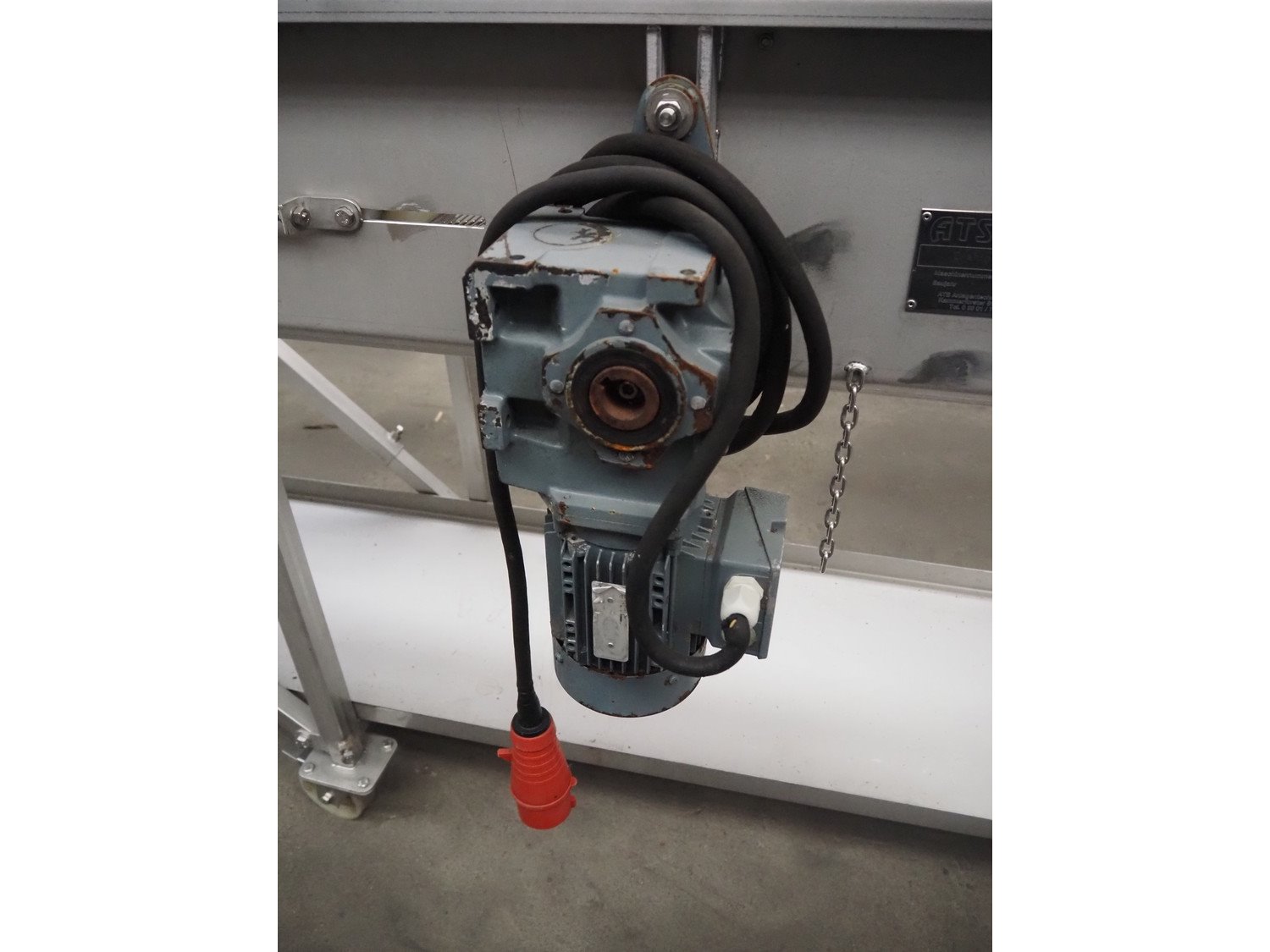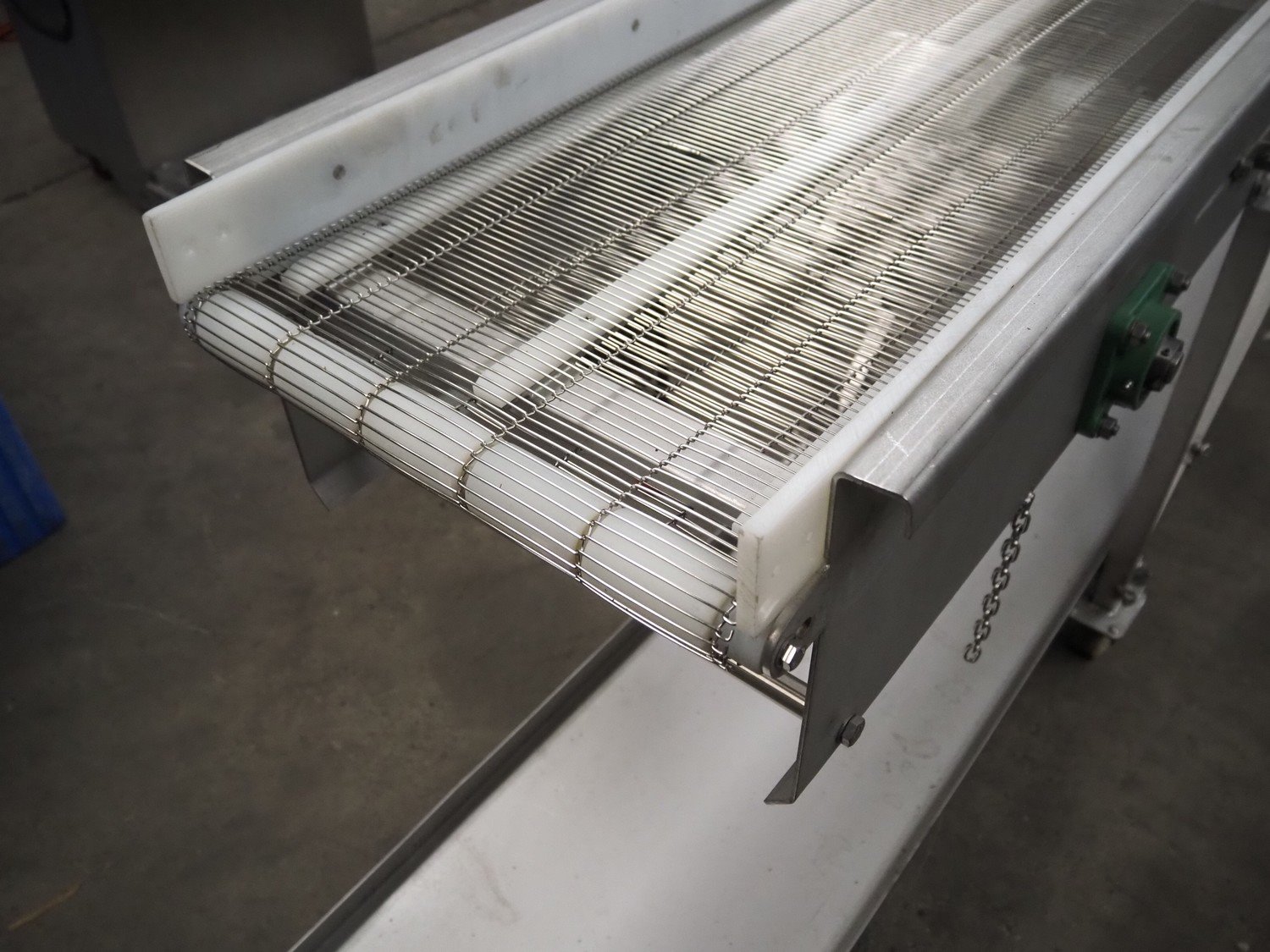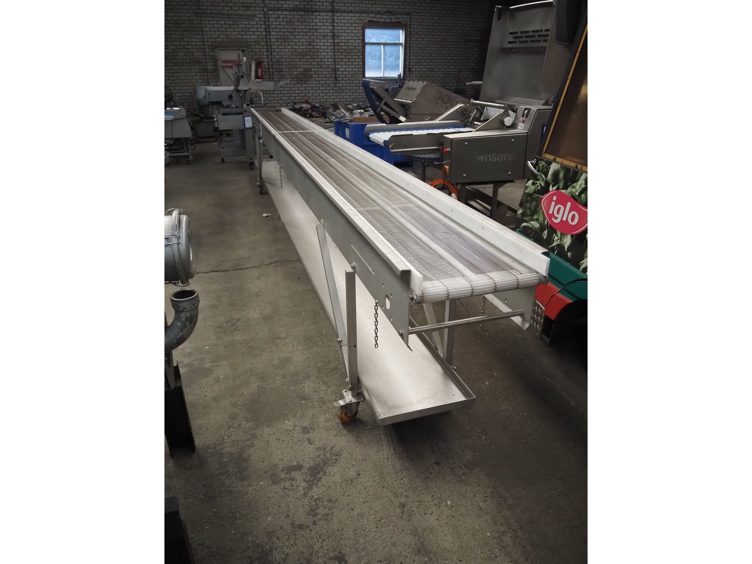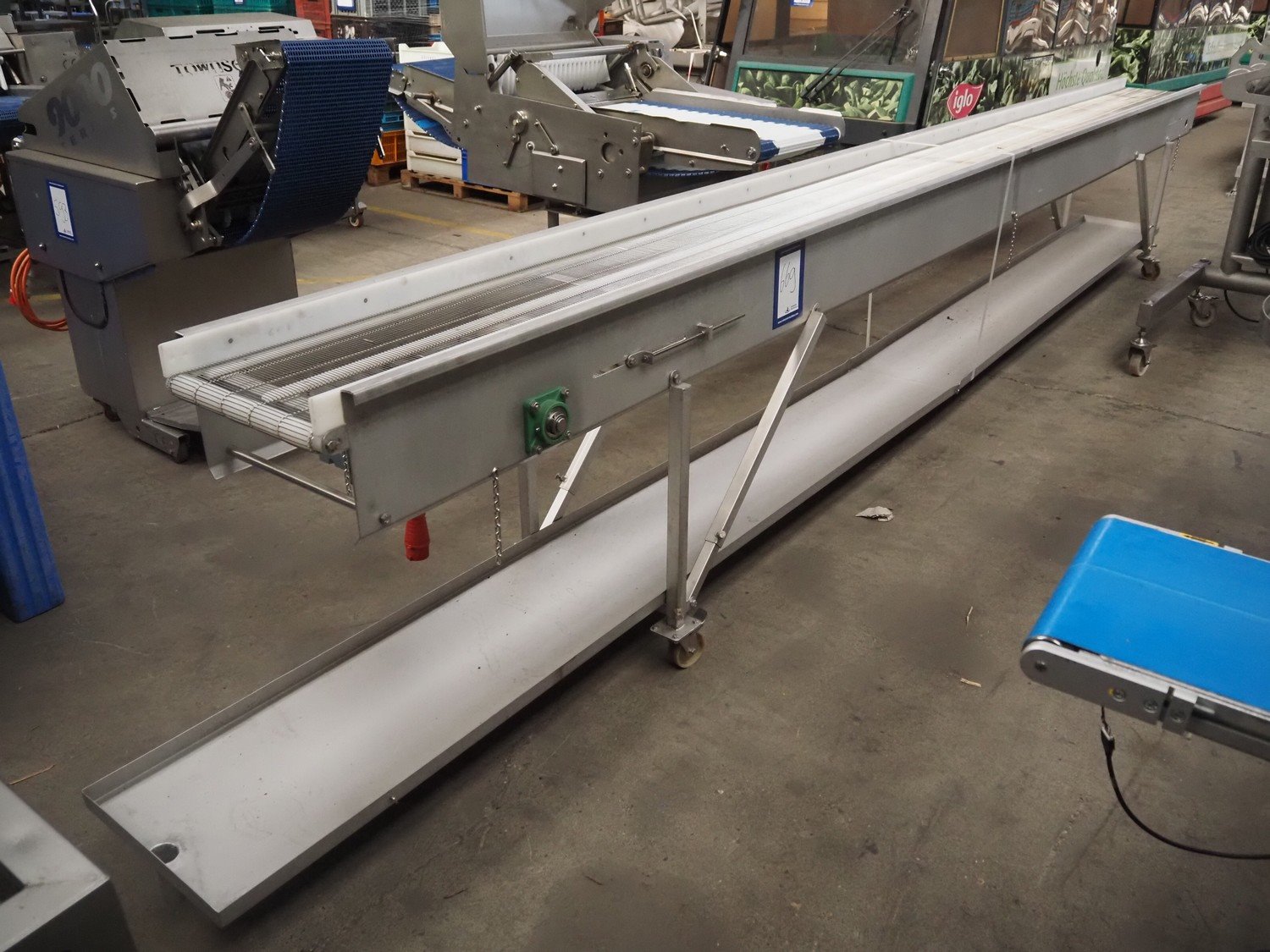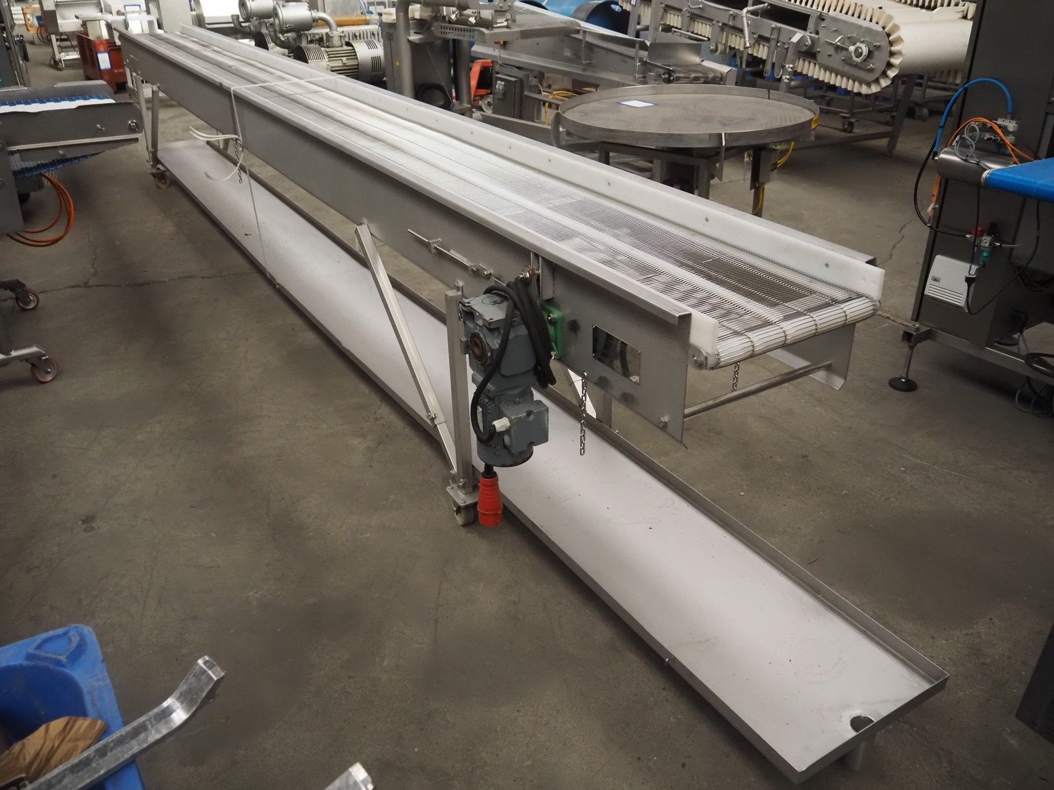 ATS mobile mesh belt, number: 20031/2, year of construction: 11/02, s/s mesh belt, belt width: 400 mm, total dimensions: 6350 mm x 700 mm x 1000 mm.