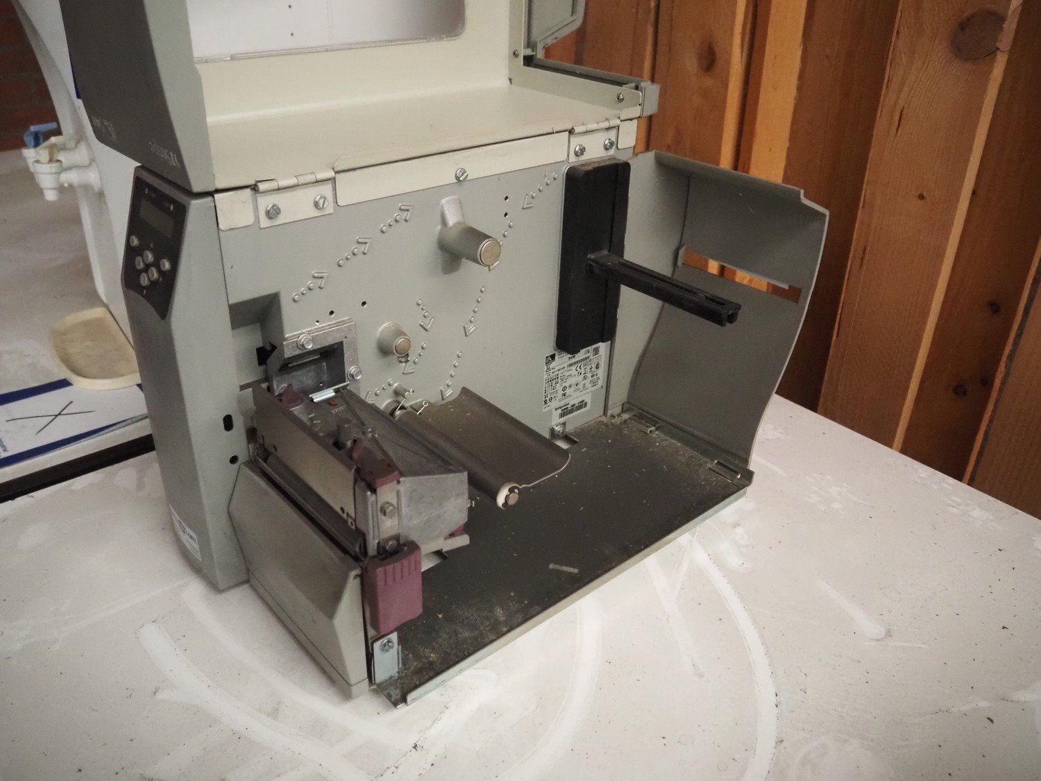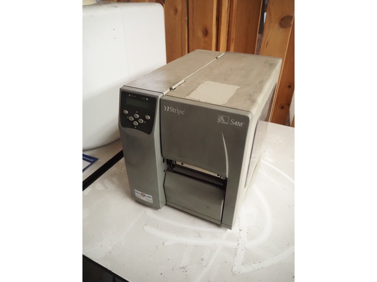 Zebra Technologies Corporation S4M label printer, serial number: 03J114801430, dimensions: 450 mm x 260 mm x 300 mm.