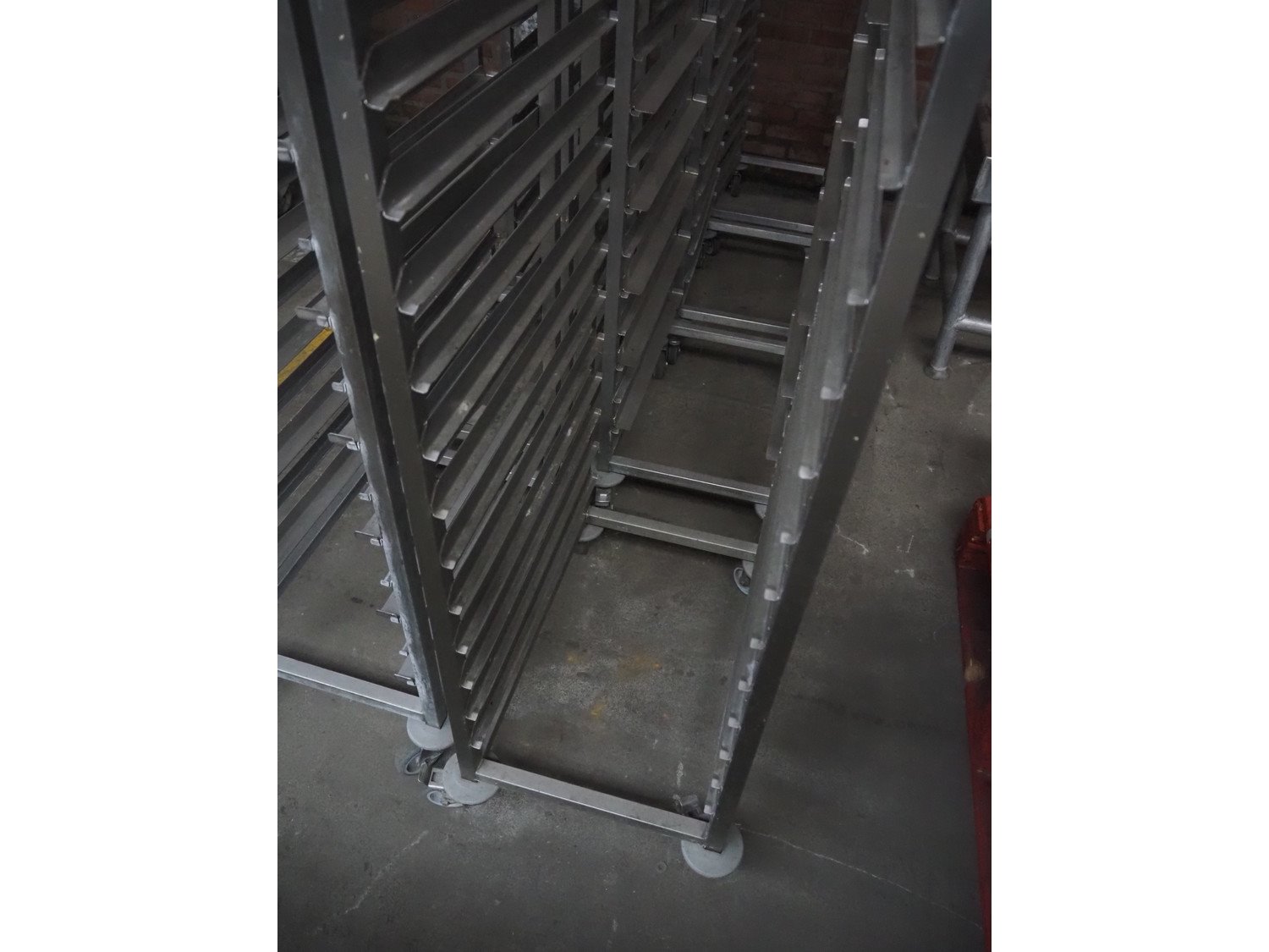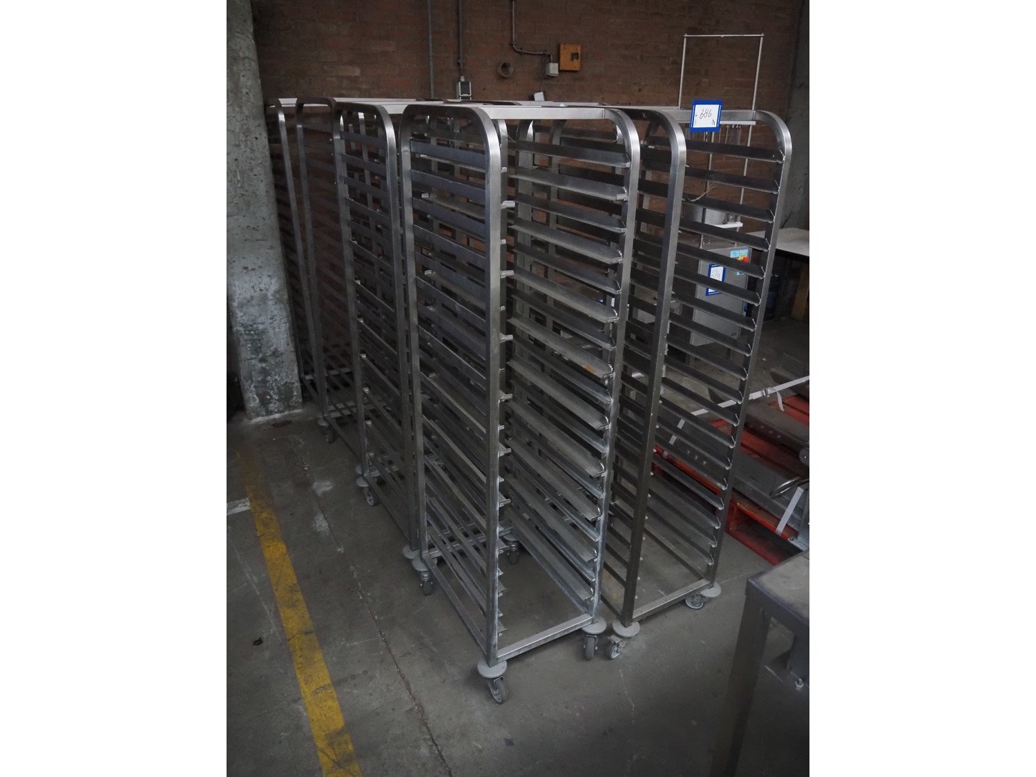 8 s/s trolleys, 18 floors, floor dimensions: (18x) 555 mm x 330 mm, total dimensions: (8x) 620 mm x 450 mm x 1620 mm.