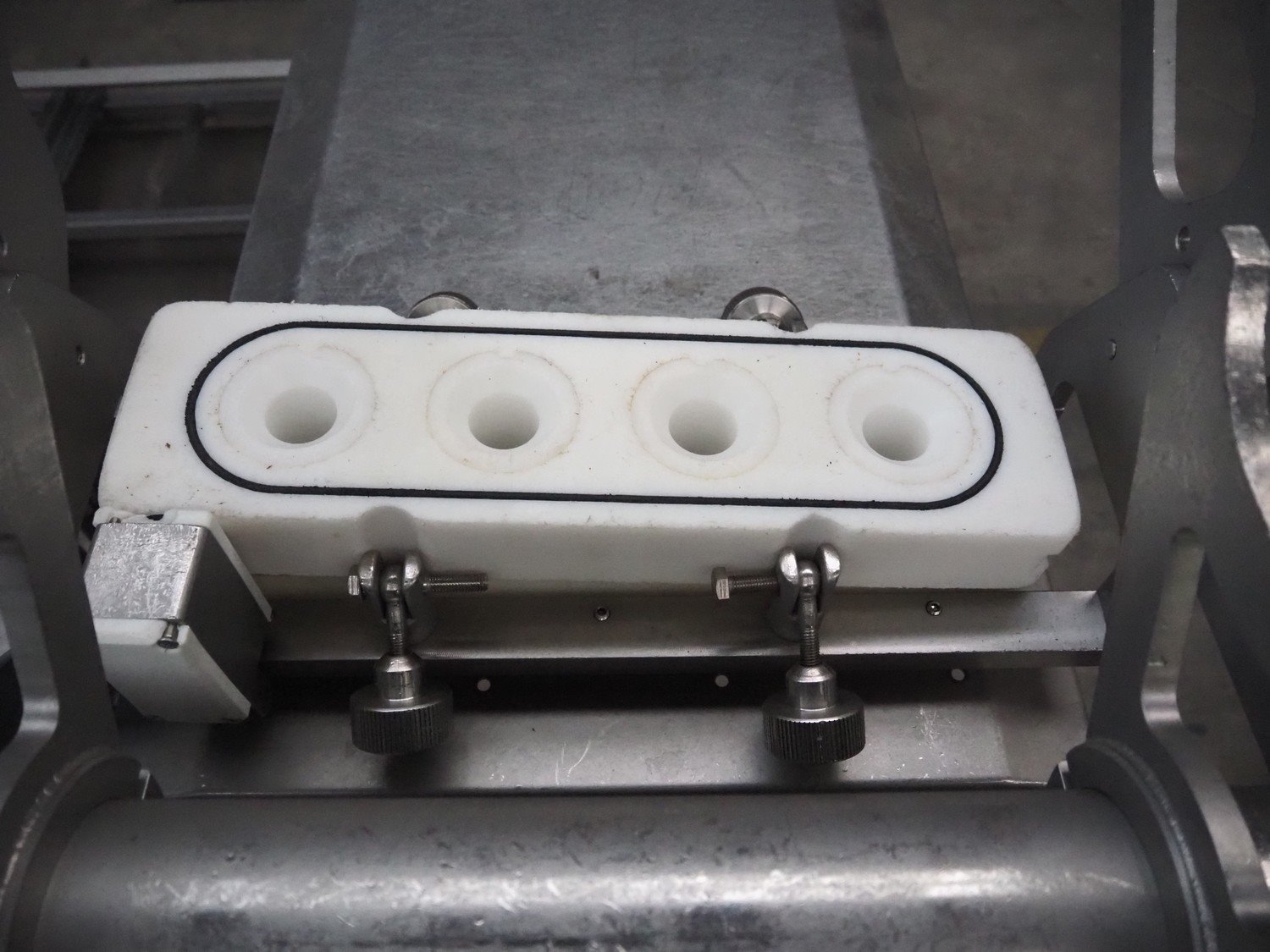 Verbufa mobile waterwheel, 4 heads, dye: 74 mm x 62 mm, total dimensions: 1300 mm x 1100 mm x 1400 mm. Incomplete.