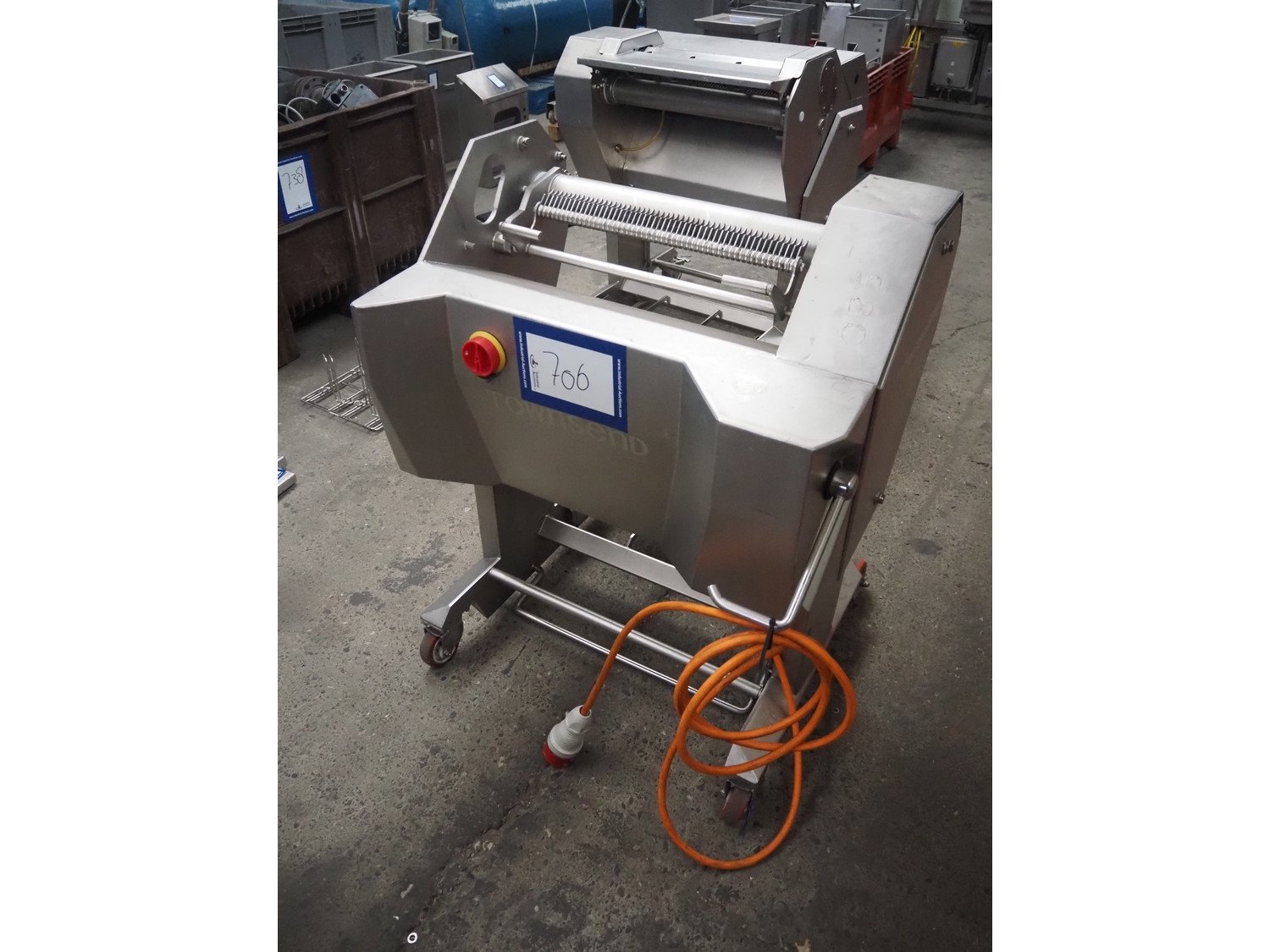 Townsend mobile skinning machine, working width: 500 mm, total dimensions: 800 mm x 710 mm x 980 mm. Incomplete.