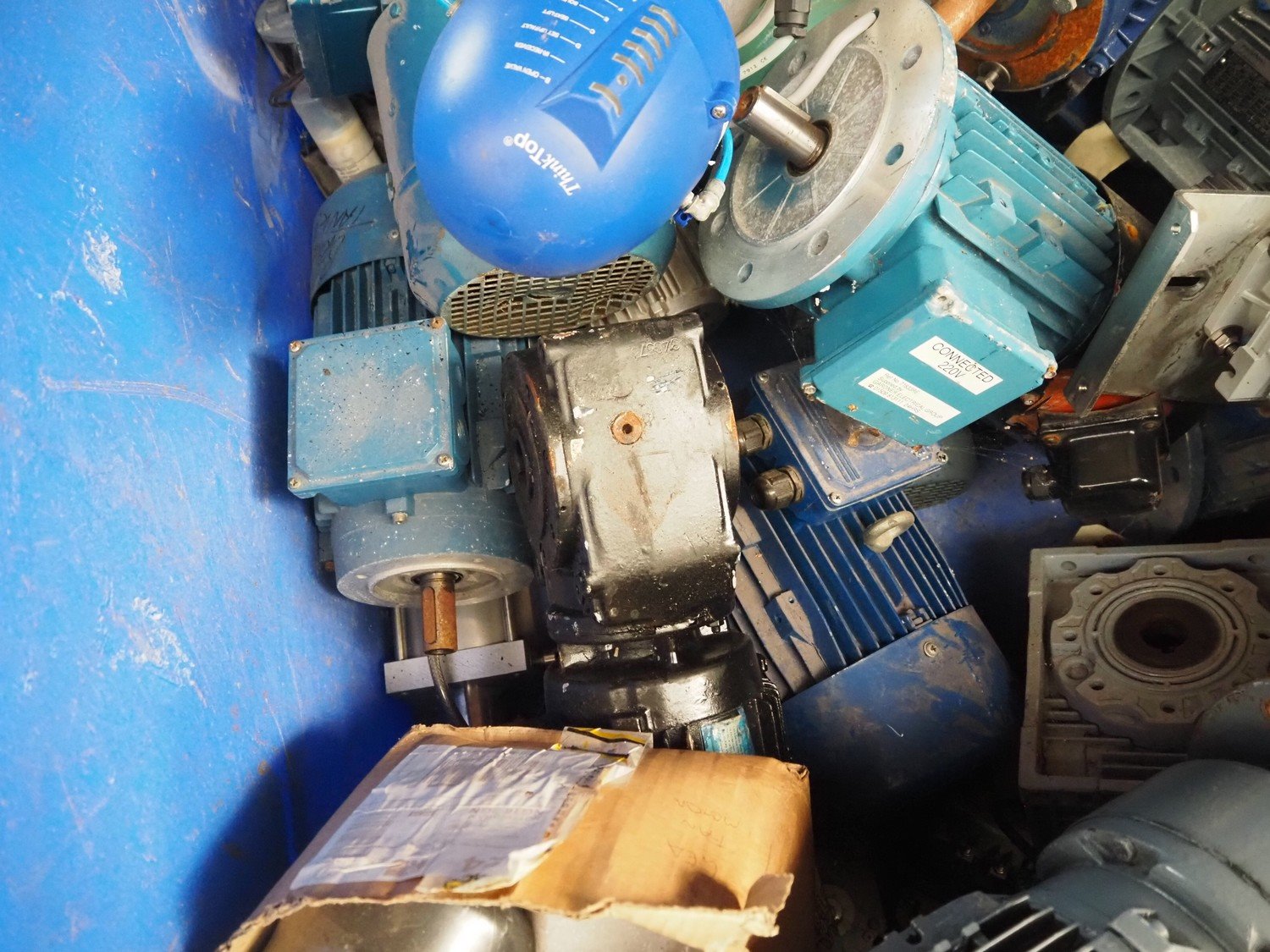 Plastic pallet box with various motors, dimensions: 1200 mm x 1000 mm x 750 mm.