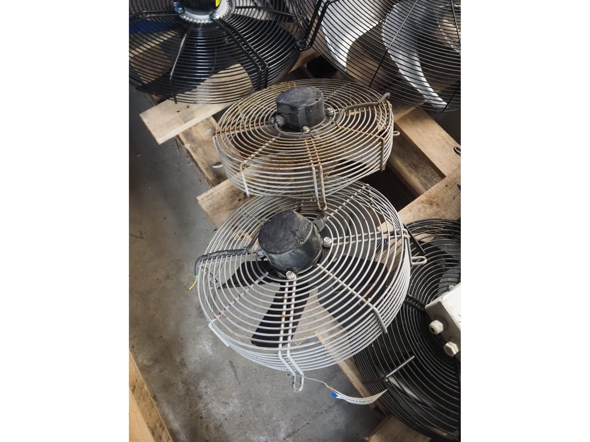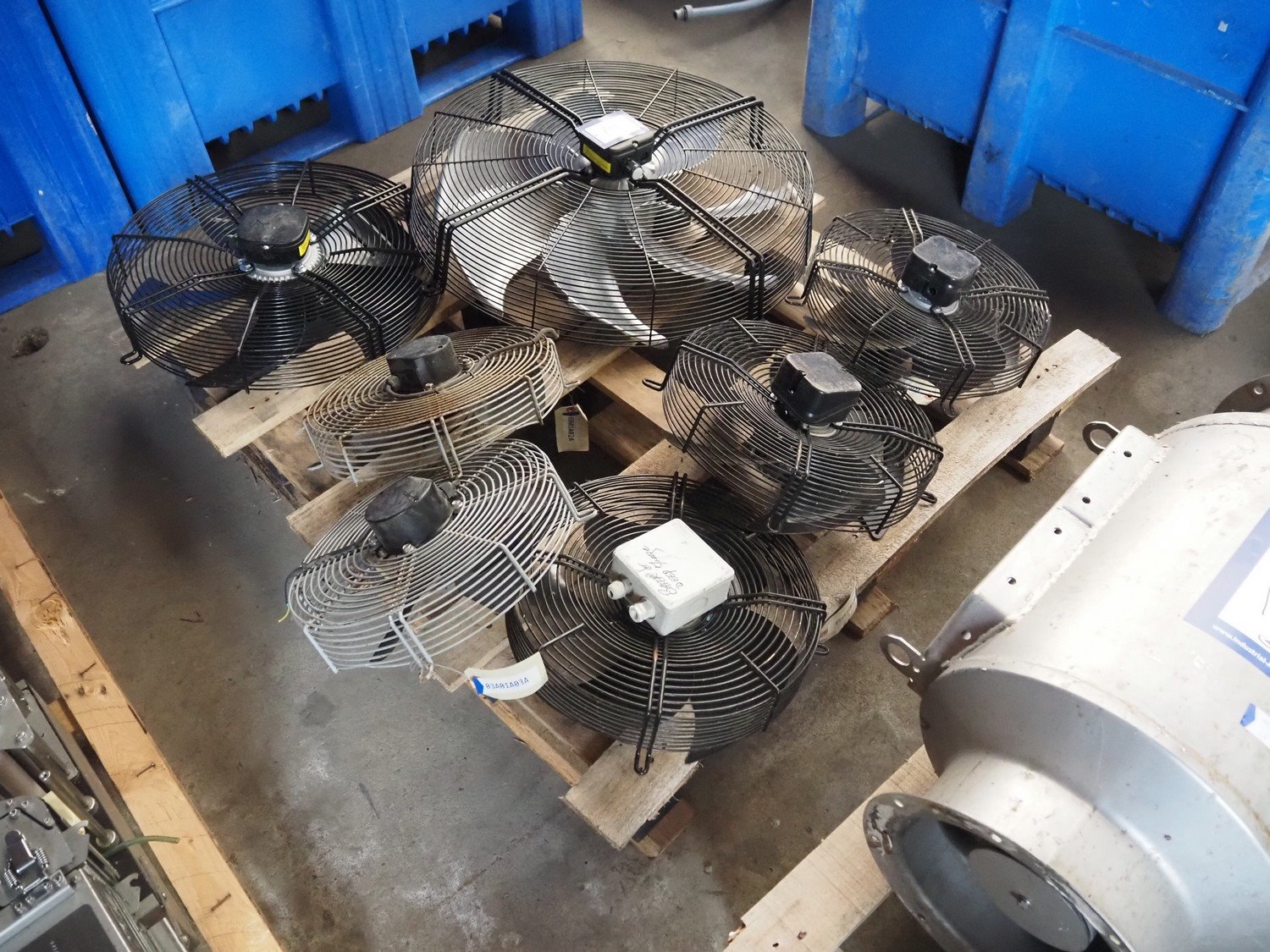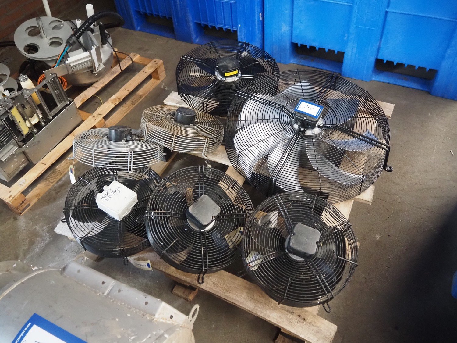 Pallet with various fans, dimensions: 1200 mm x 1000 mm x 400 mm.