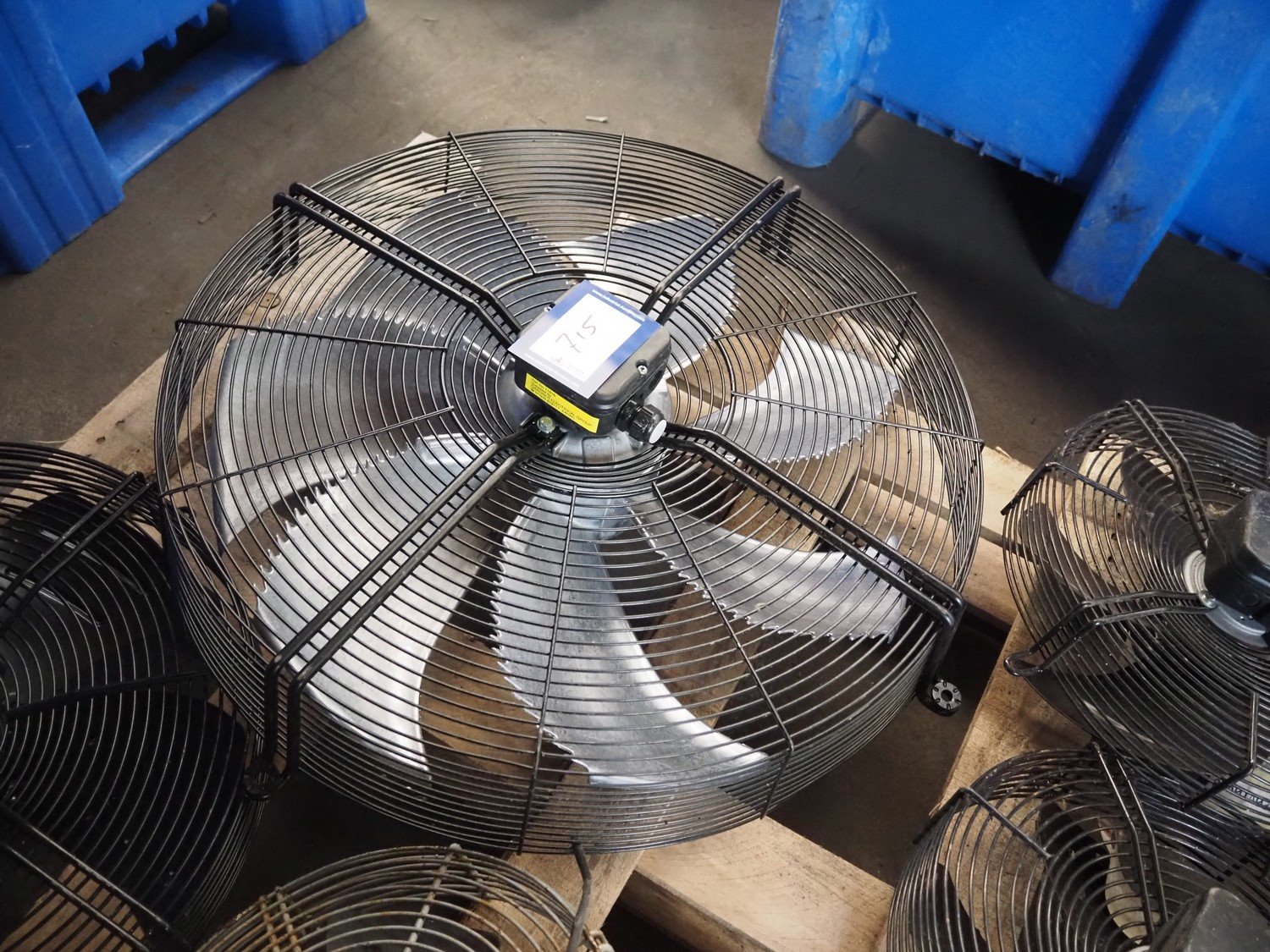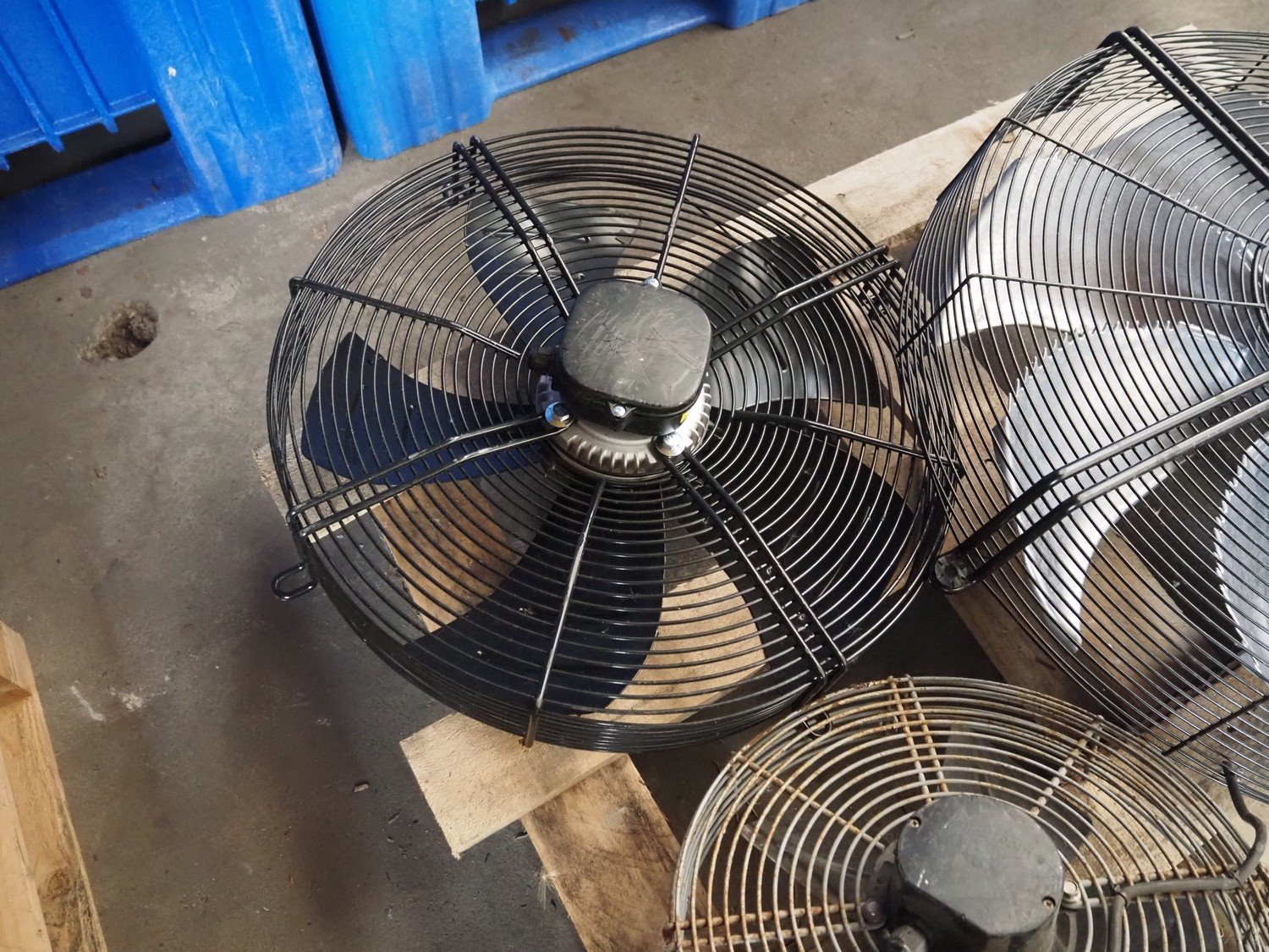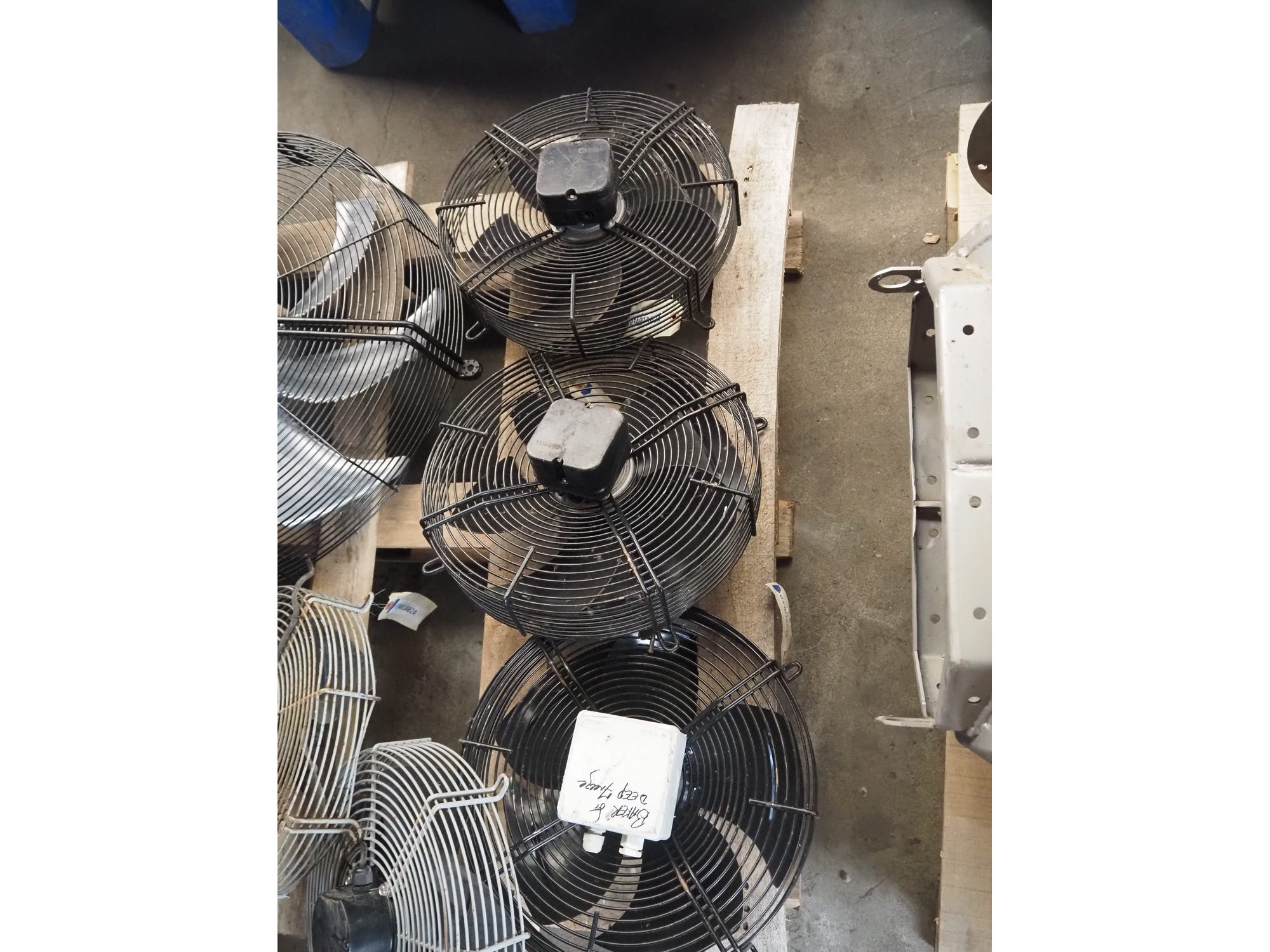 Pallet with various fans, dimensions: 1200 mm x 1000 mm x 400 mm.