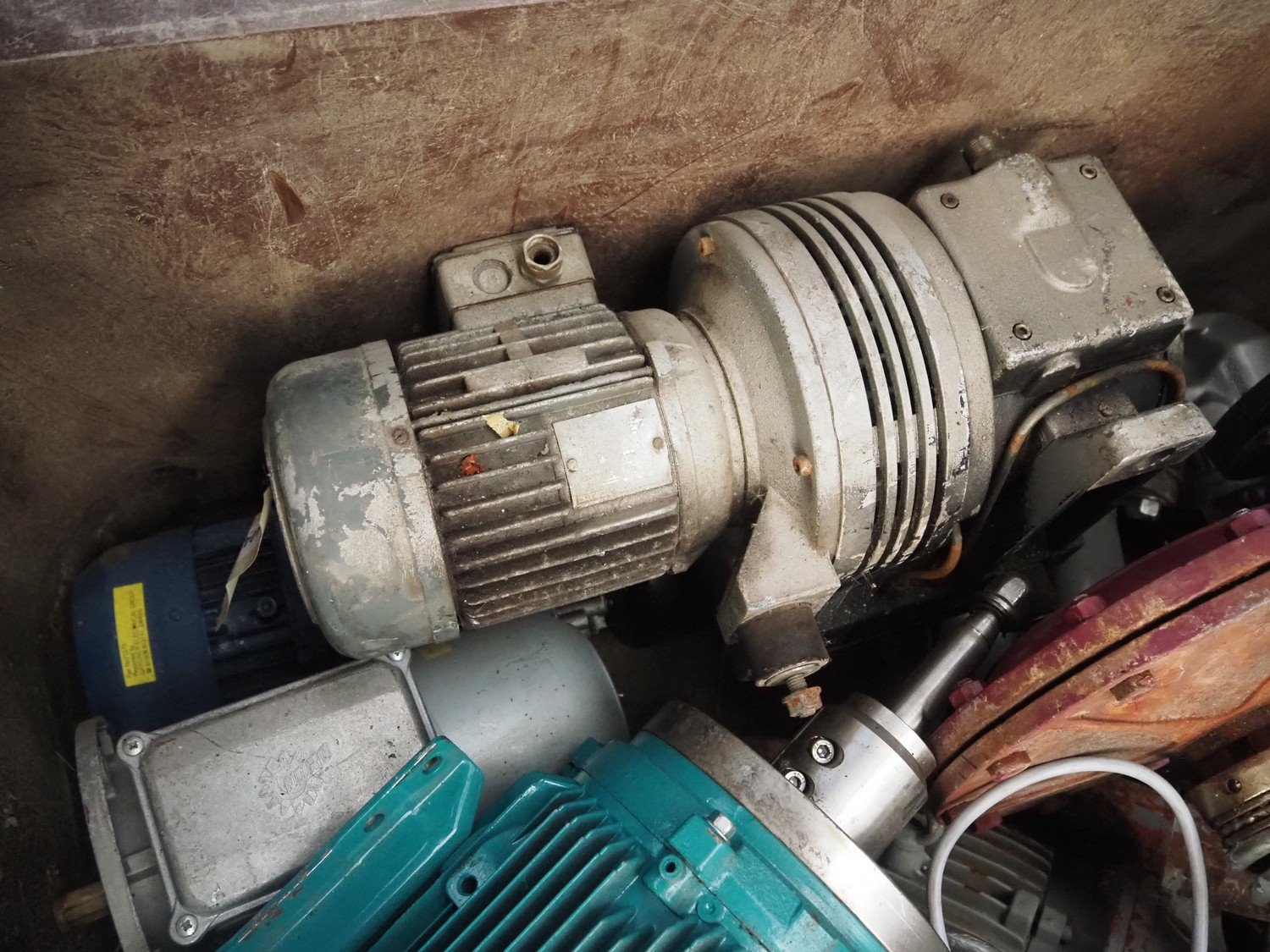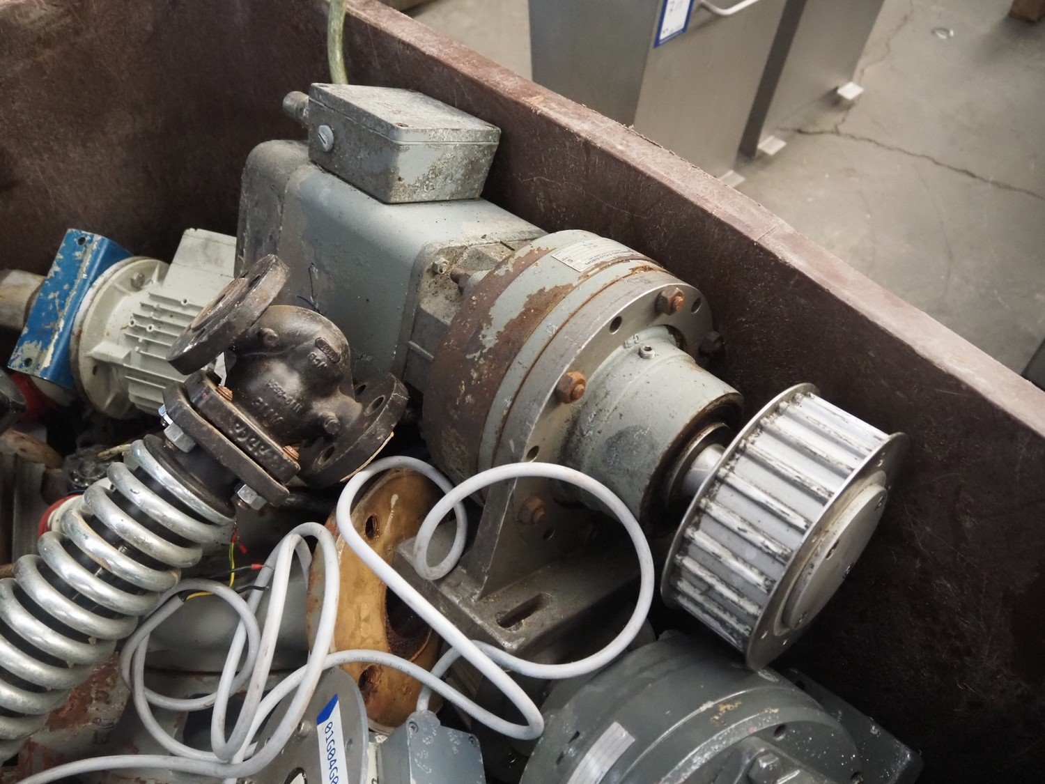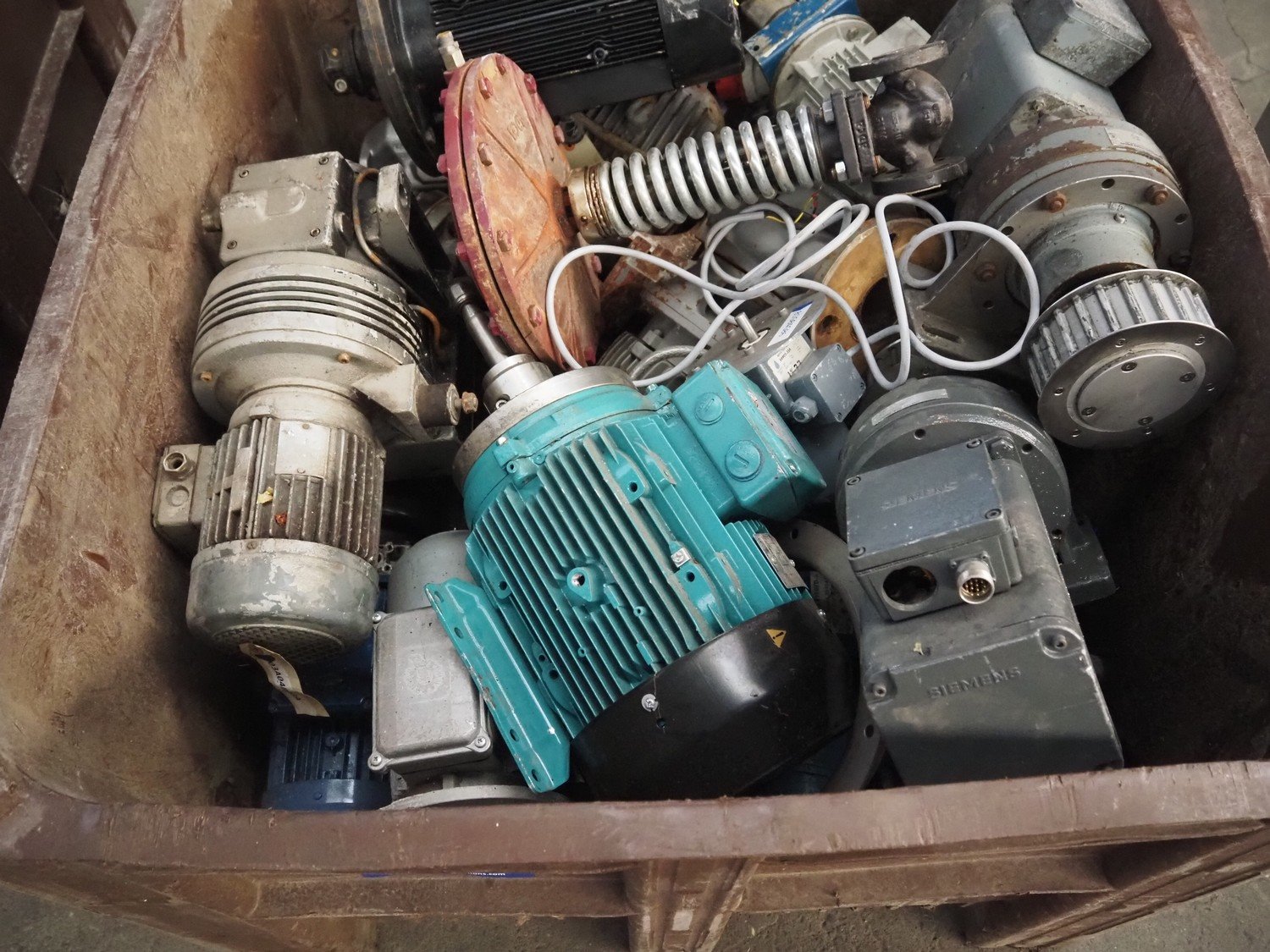 Plastic pallet box with various motors, dimensions: 1200 mm x 1000 mm x 750 mm.