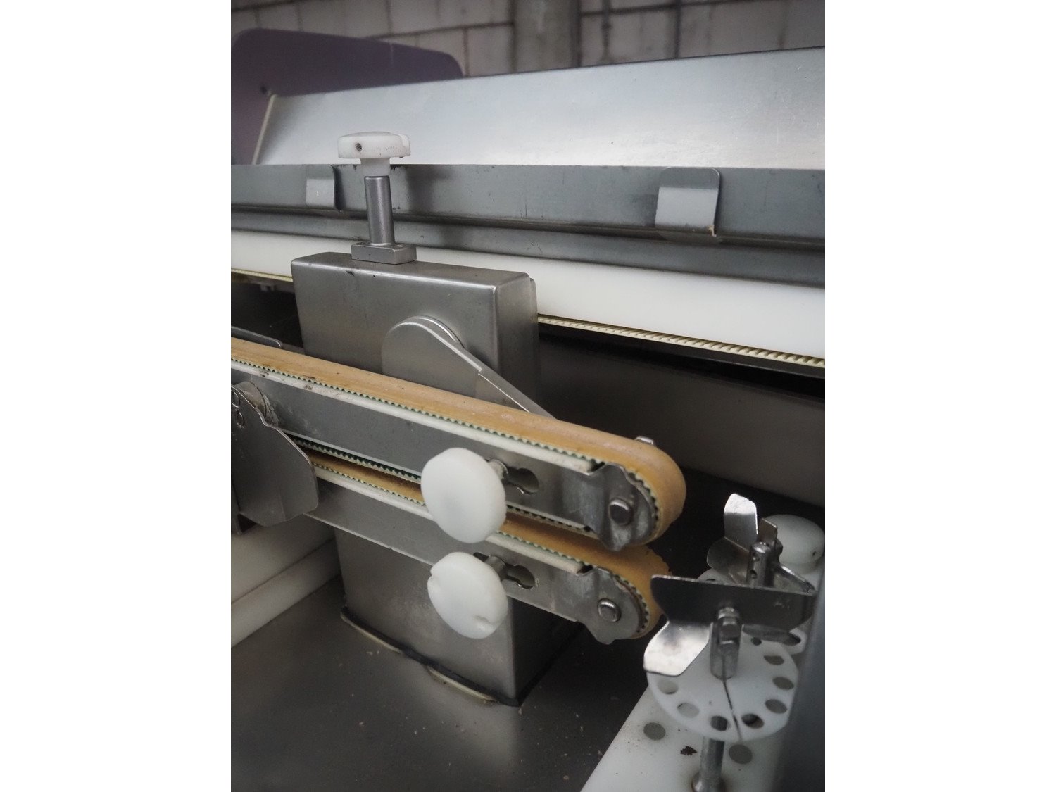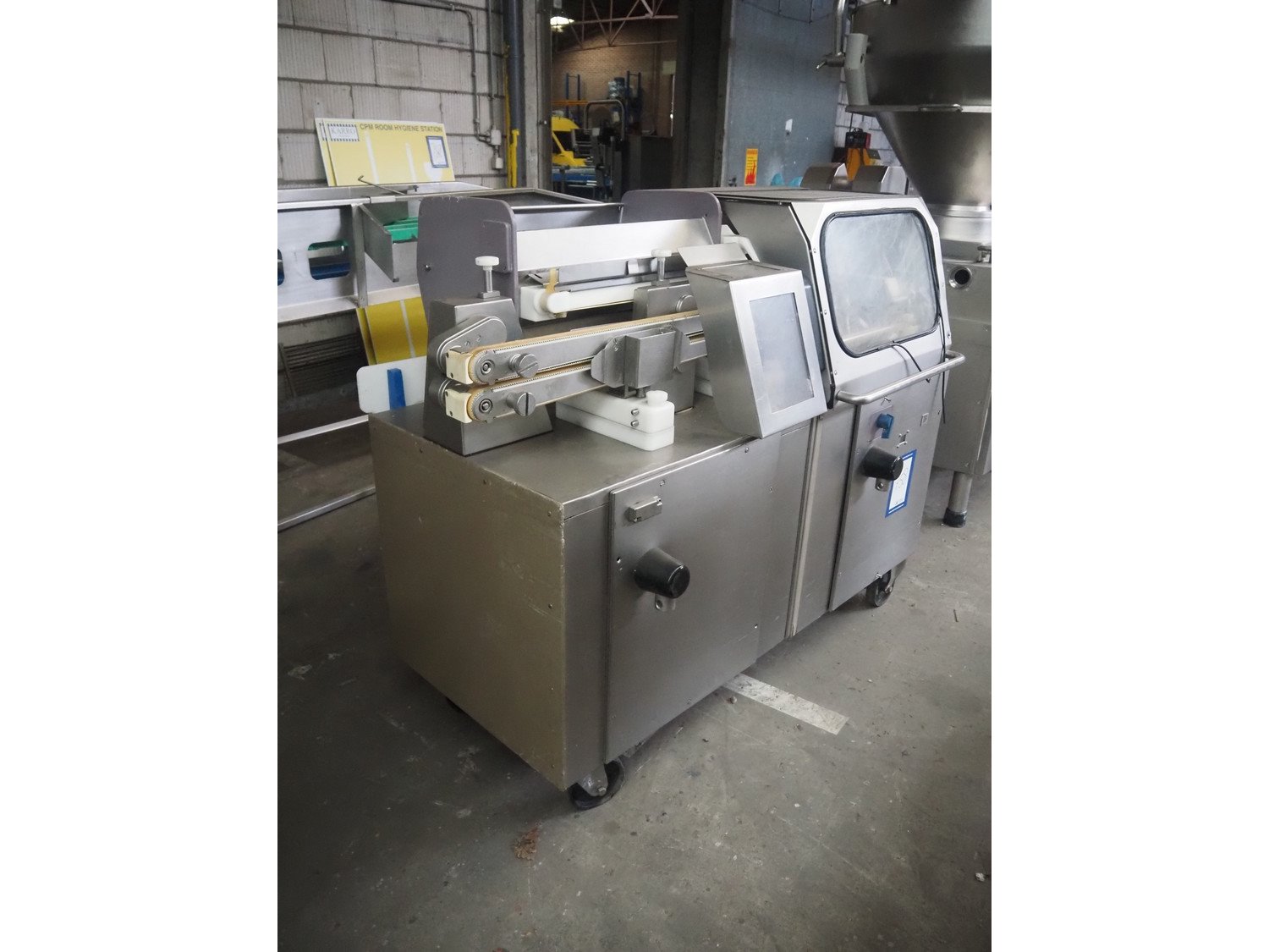 Handtmann mobile sausage linker, type: 241-01, number: 445, year of construction: 1999, 420 V, 50 Hz, 6.9 A, 5 kW, dimensions: 1750 mm x 900 mm x 1380 mm.
