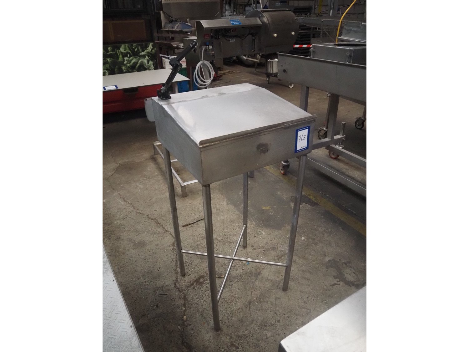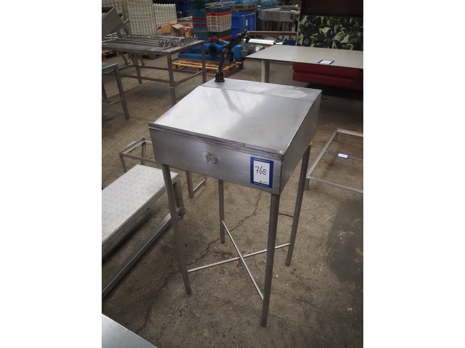 S/s writing desk, dimensions: 500 mm x 500 mm x 1080 mm.