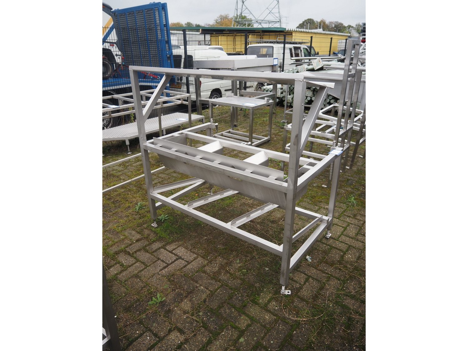 S/s frame for crates, crate clearance: 610 mm x 405 mm, total dimensions: 1300 mm x 850 mm x 1330 mm.