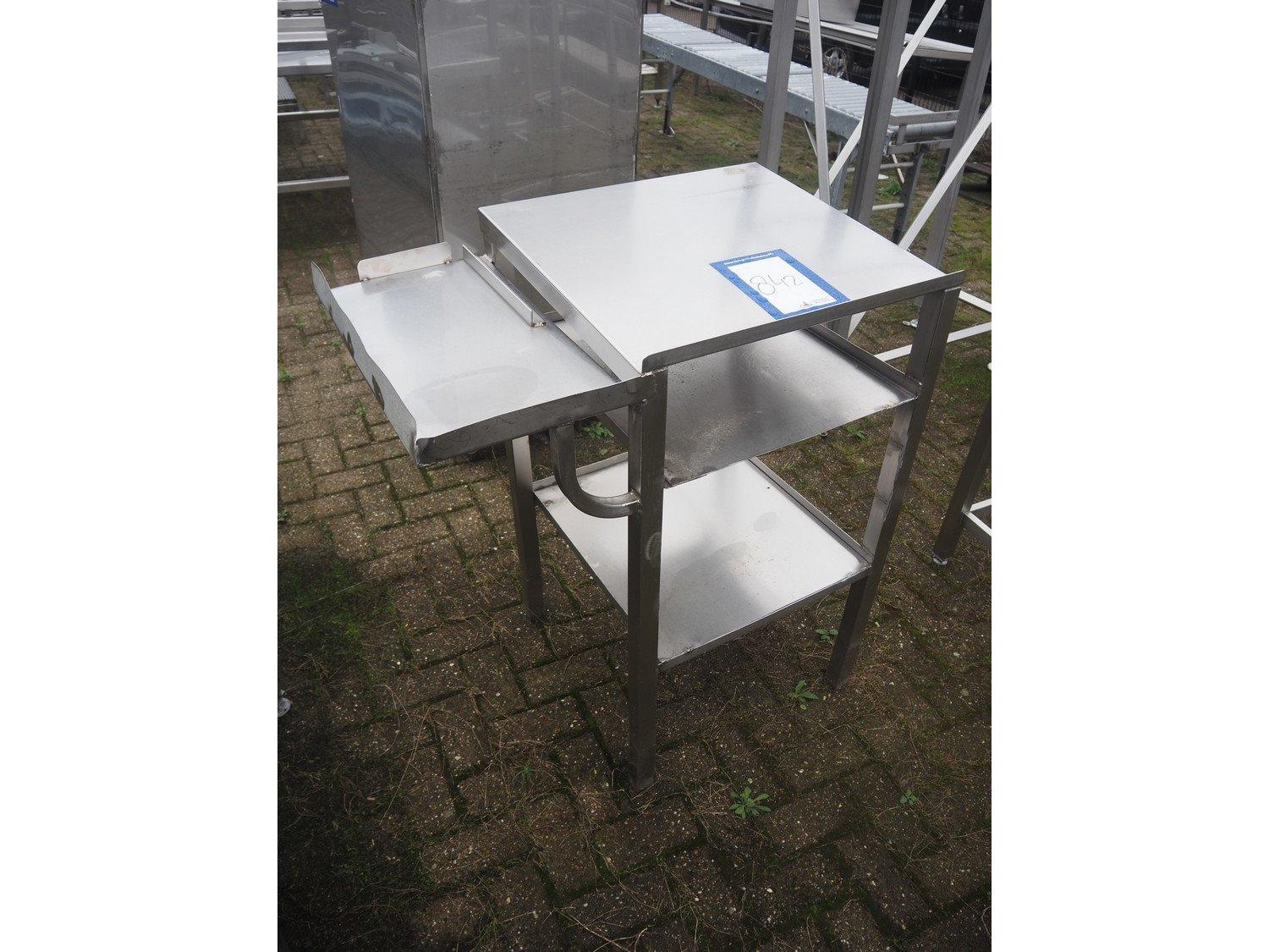 S/s writing desk, dimensions: 900 mm x 560 mm x 1040 mm.