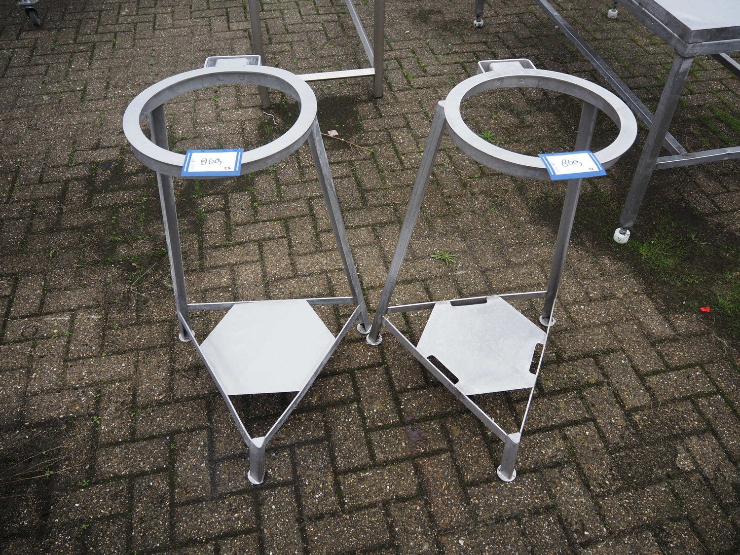 2 s/s waste bag holders, dimensions: (2x) 600 mm x 600 mm x 900 mm.