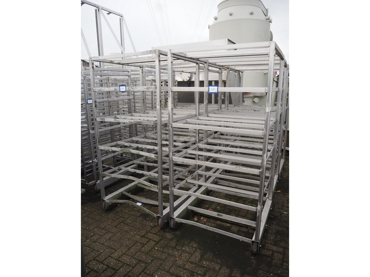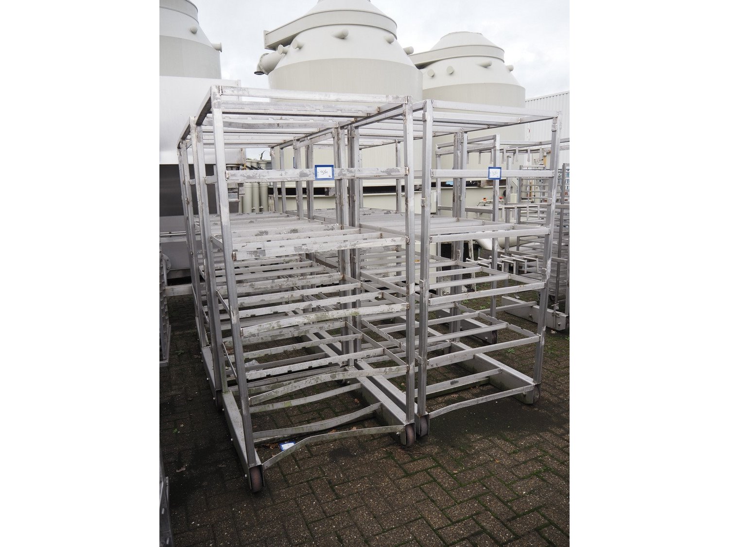 6 s/s cooking racks, dimensions: (6x) 1000 mm x 1000 mm x 2050 mm.