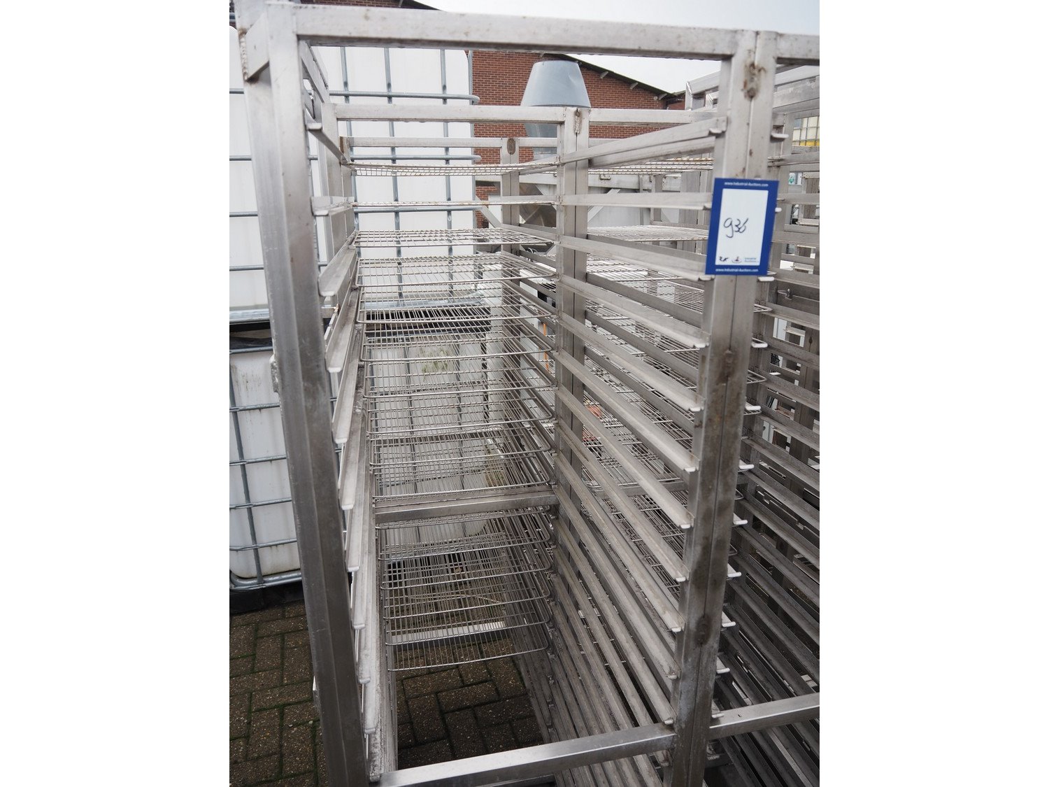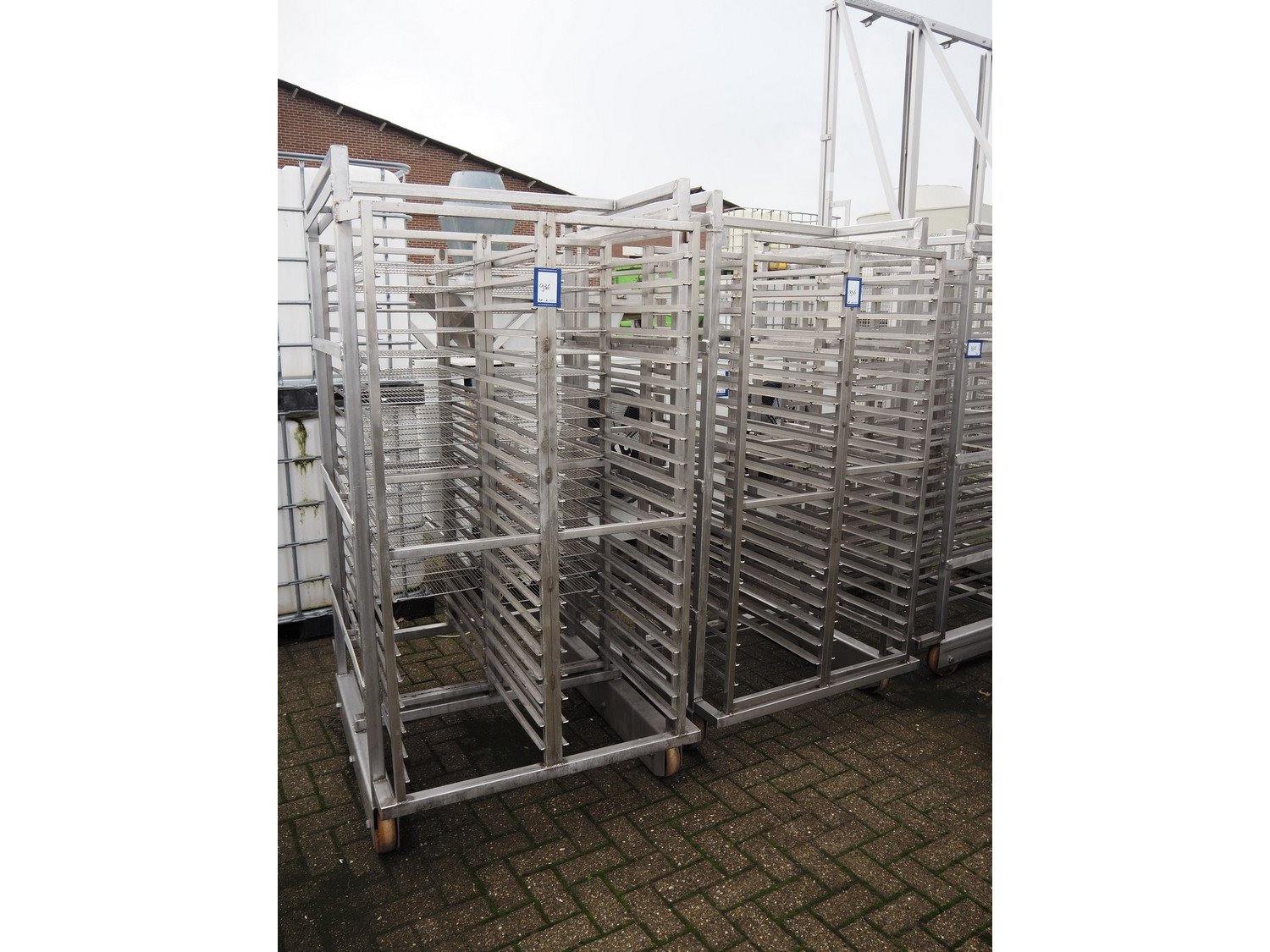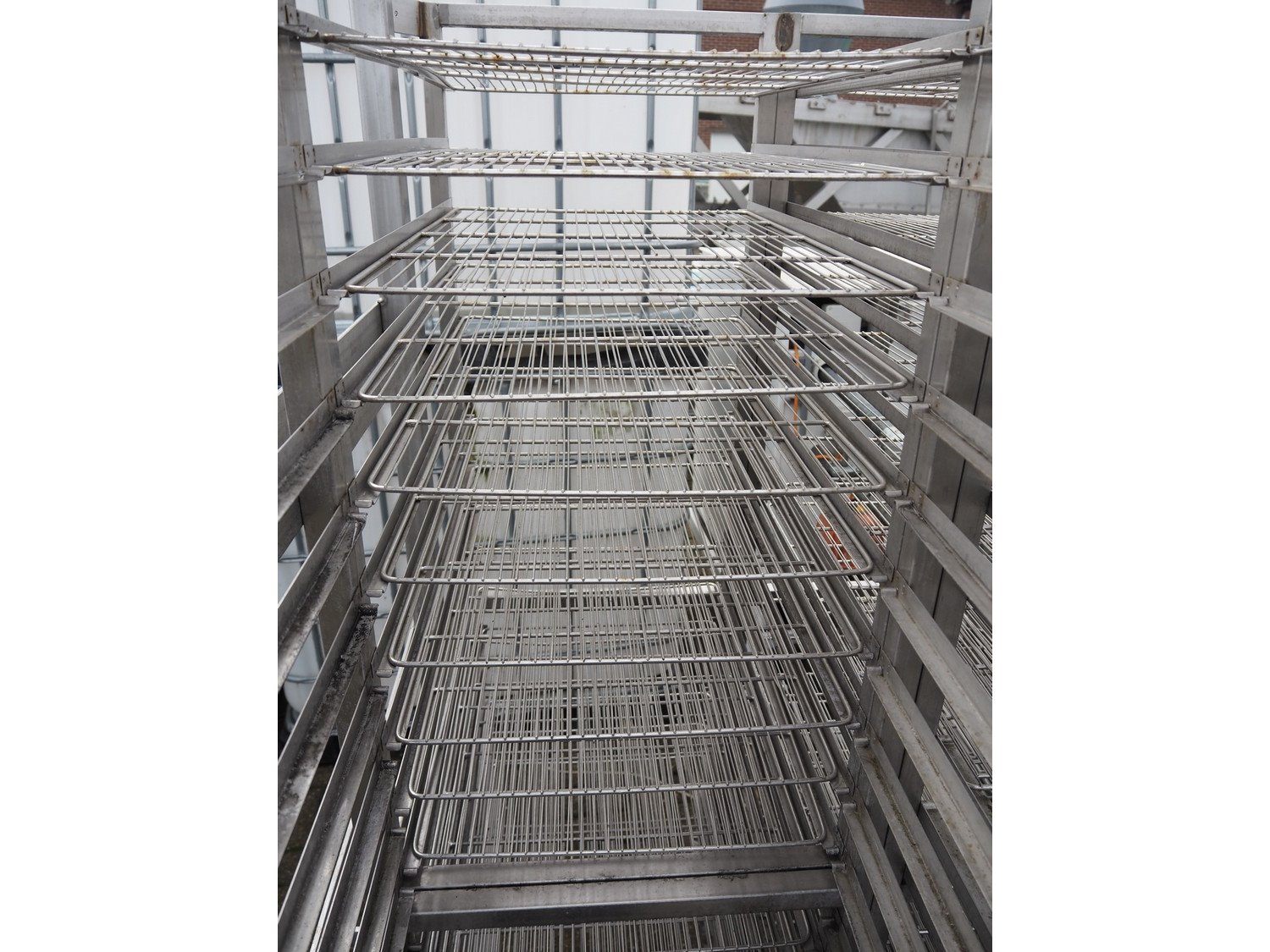 2 s/s trolleys for plates, (2x) 20 floors, dimensions each floor: 600 mm x 400 mm, distance between floors: 70 mm, total dimensions: (2x) 1000 mm x 1300 mm x 2000 mm.