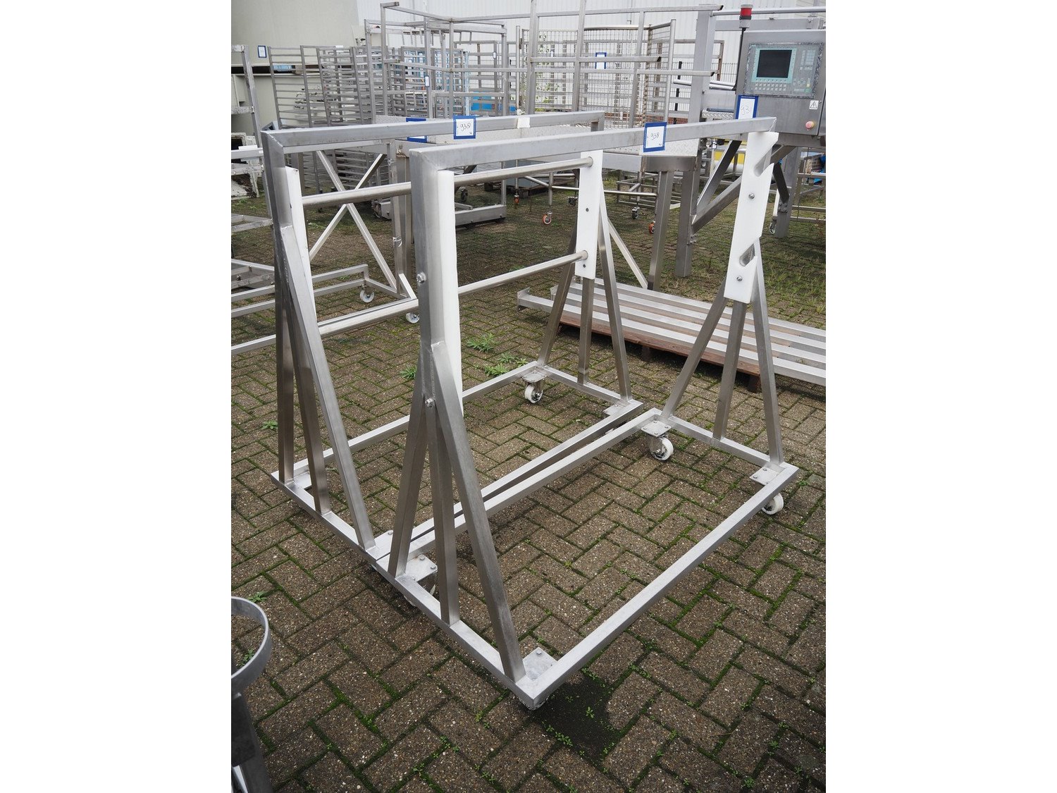2 s/s trolleys, dimensions: (2x) 1480 mm x 700 mm x 1430 mm.