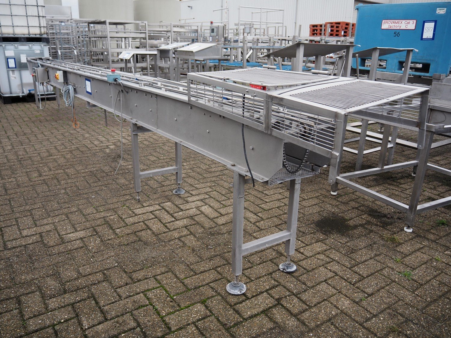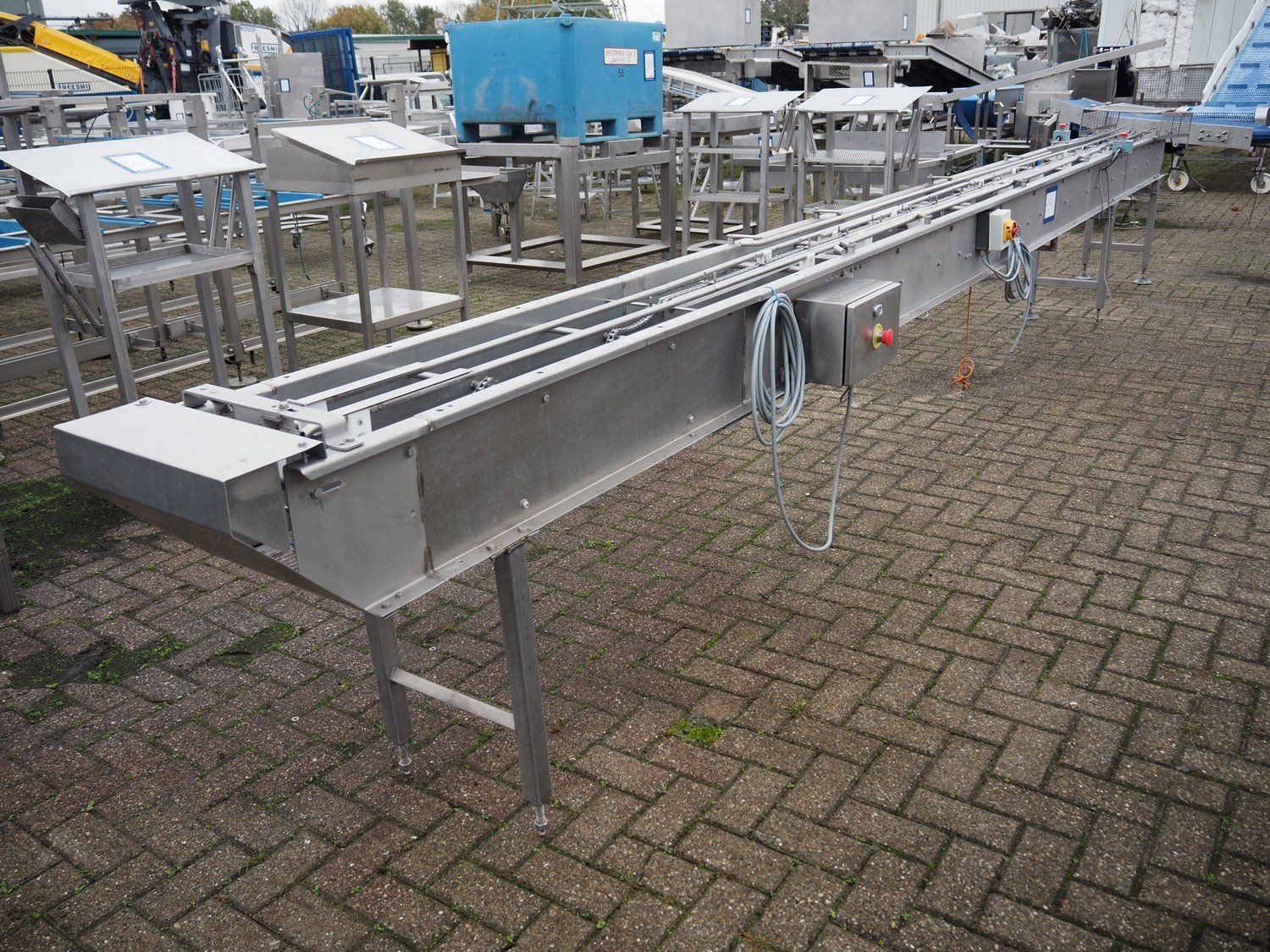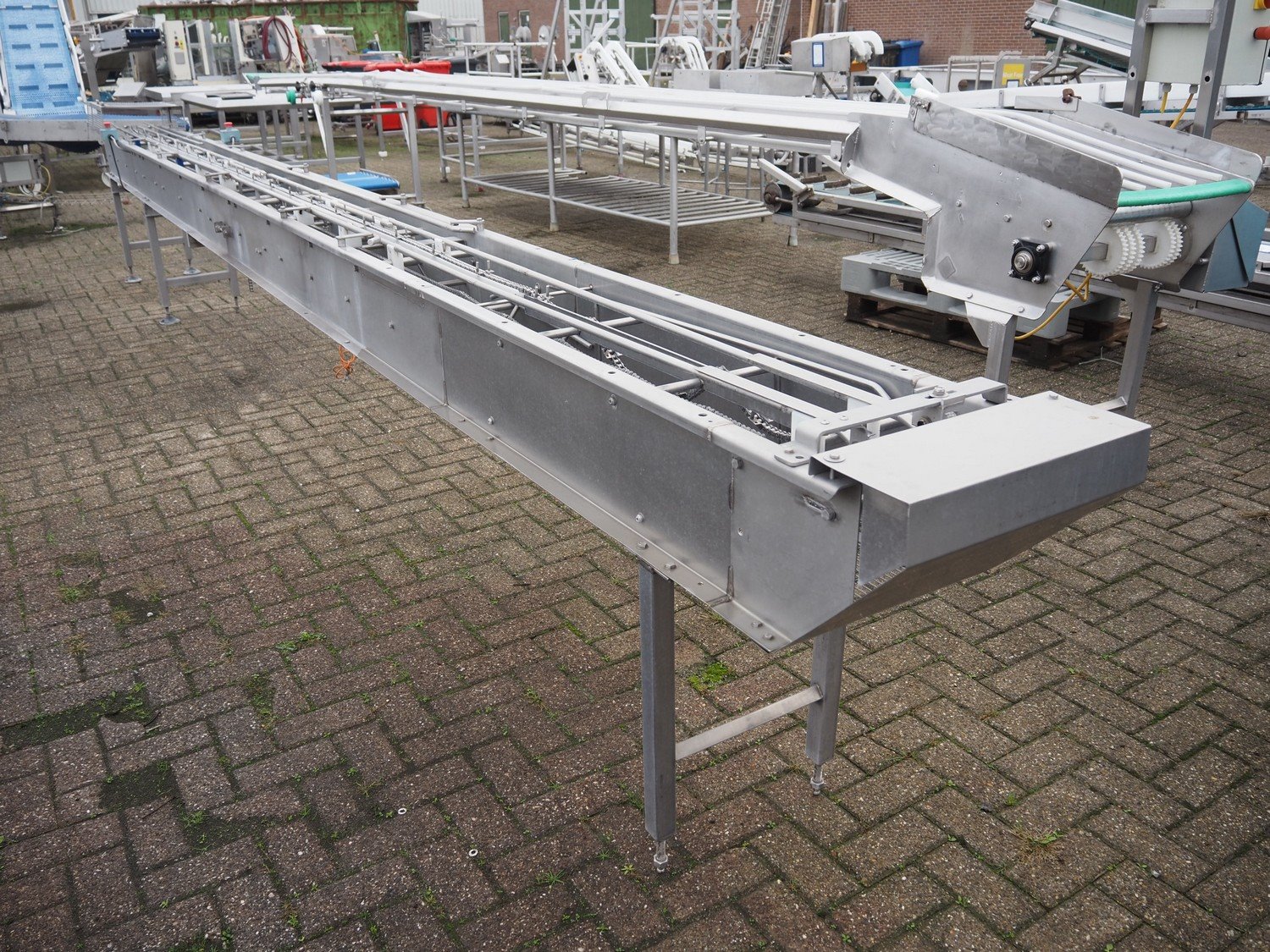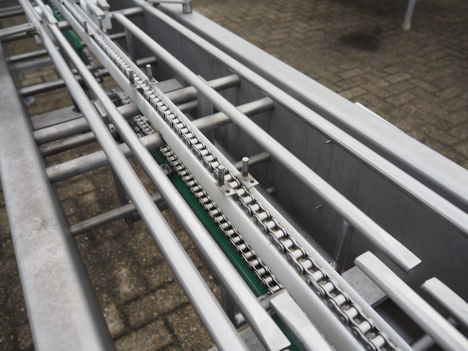 Chain conveyor, dimensions: 7000 mm x 550 mm x 1100 mm.