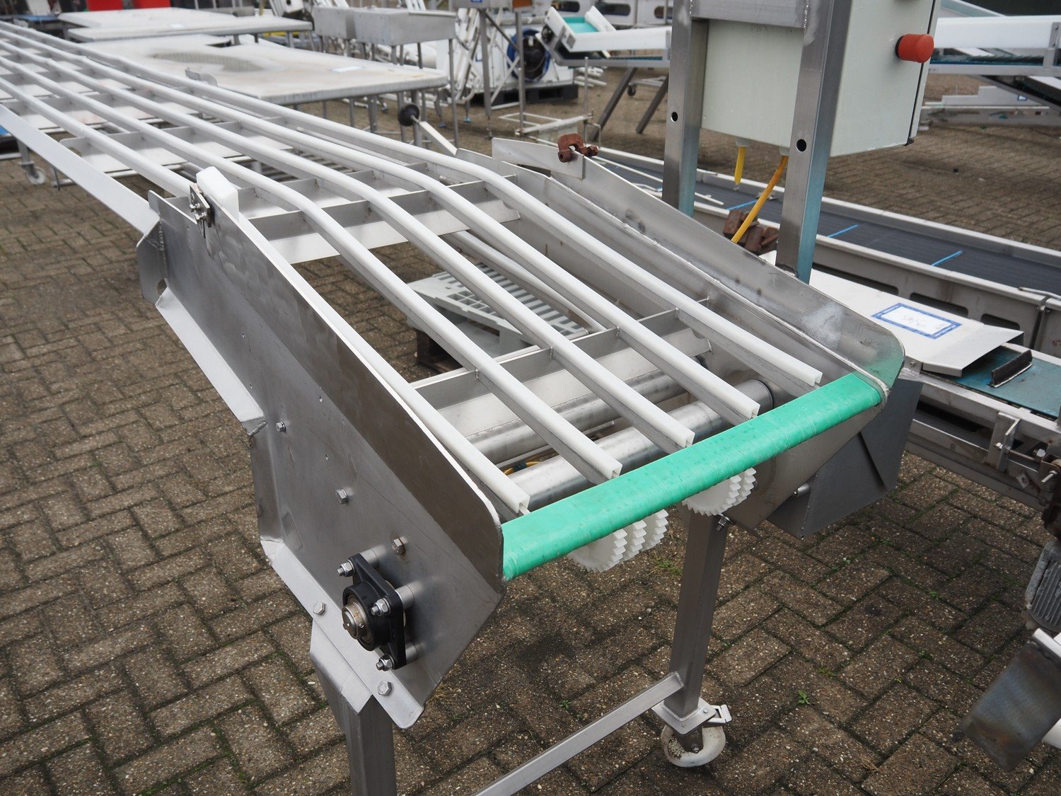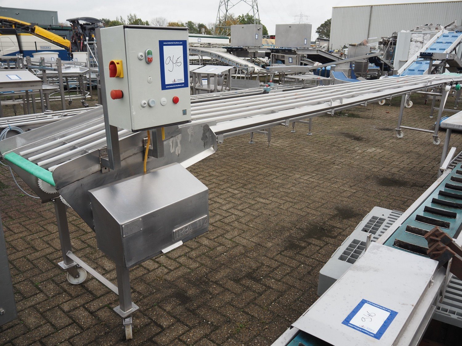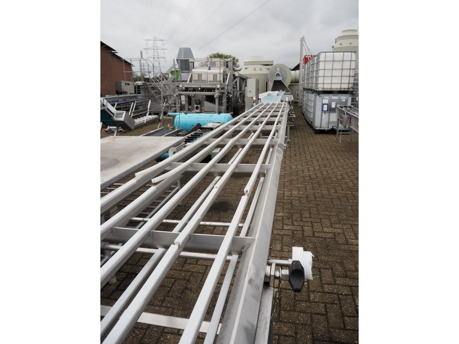 De Jager RVS mobile transport belt, type: 30130520, year of construction: 01/2014, maximum belt width: 600 mm, total dimensions: 9600 mm x 1050 mm x 1620 mm. Without belt.