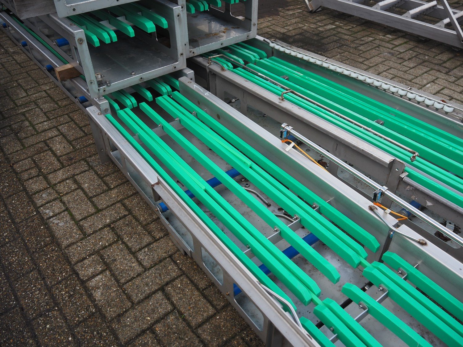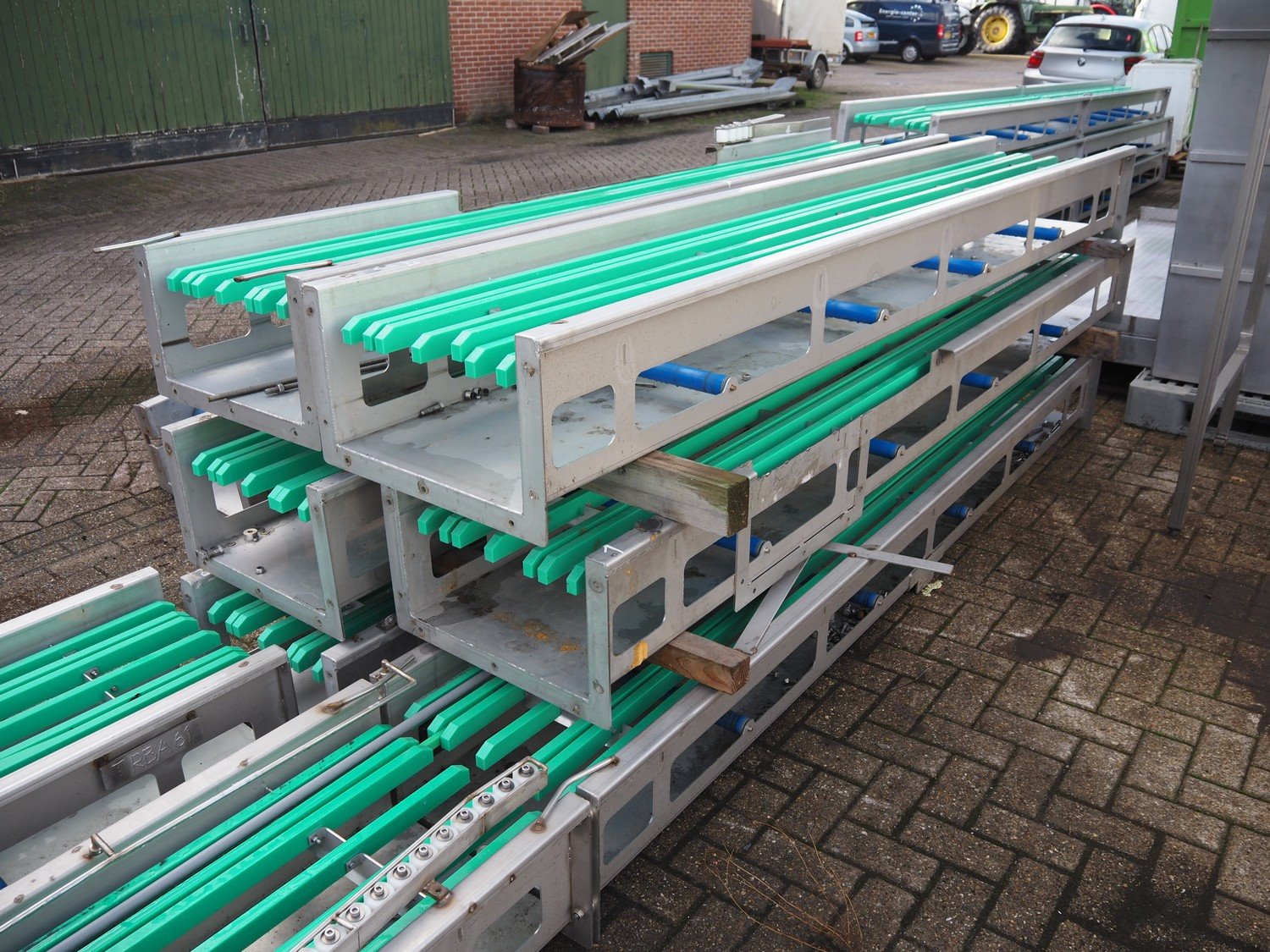 Transport belt system, maximum belt width: 500 mm, total dimensions: (5x) 6000 mm x 550 mm x 330 mm, (6x) 3000 mm x 550 mm x 330 mm, (2x) 1200 mm x 550 mm x 330 mm, (1x) 2300 mm x 550 mm x 330 mm, (1x) 2000 mm x 550 mm x 330 mm.