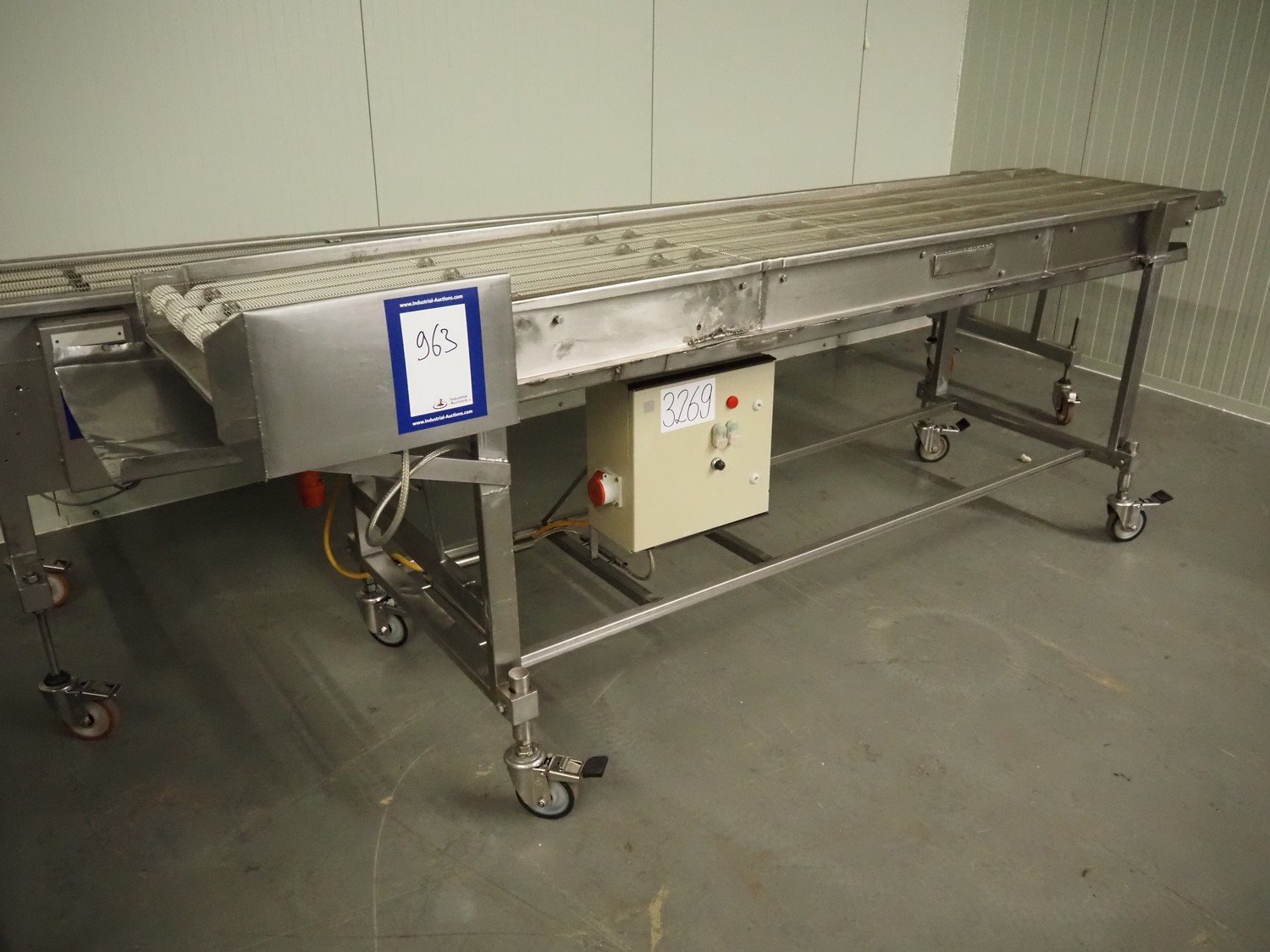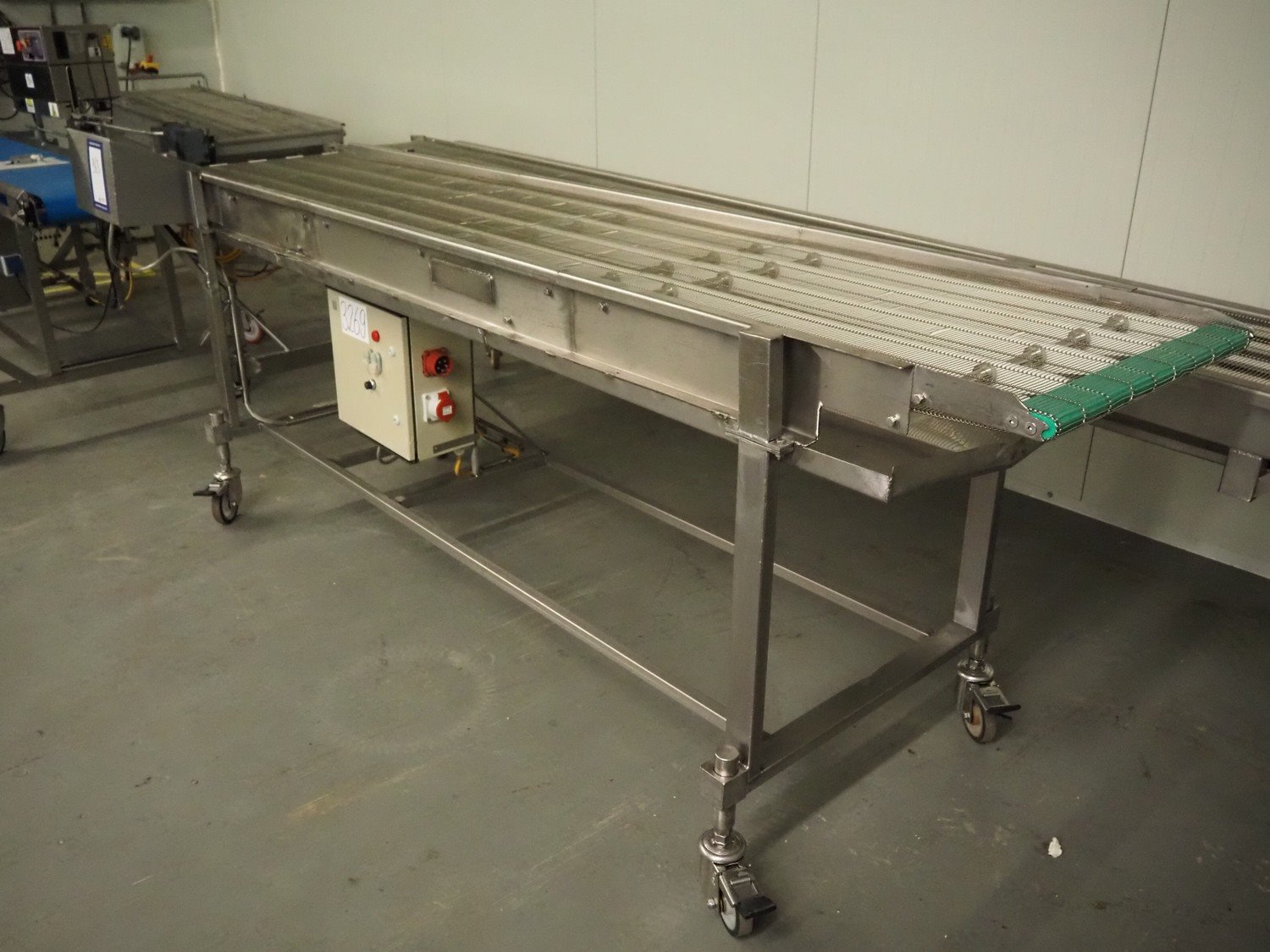 Koppens mobile mesh belt, s/s frame, s/s mesh belt, type: TG2000/600, machine number: 248, belt width: 600 mm, total dimensions: 3200 mm x 900 mm x 1150 mm.