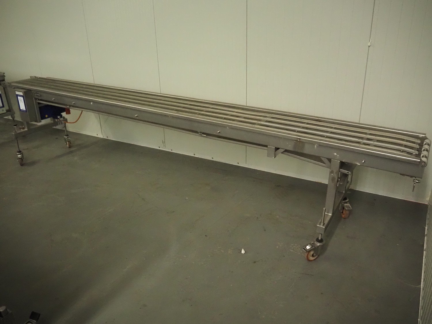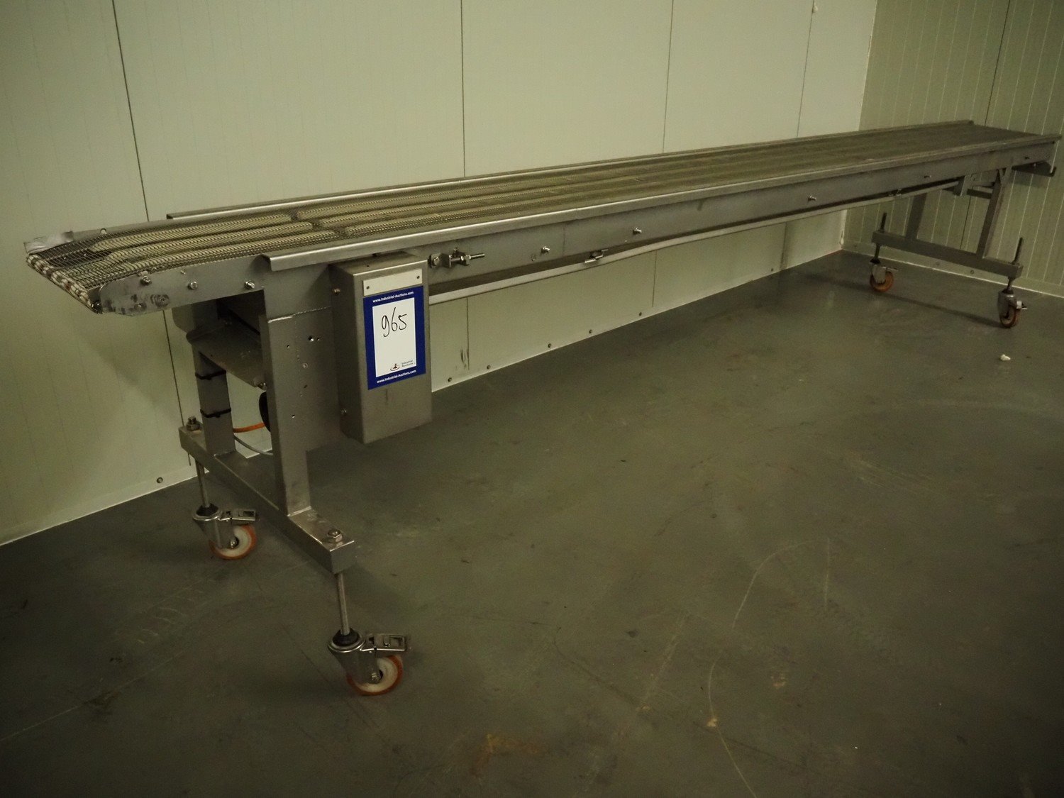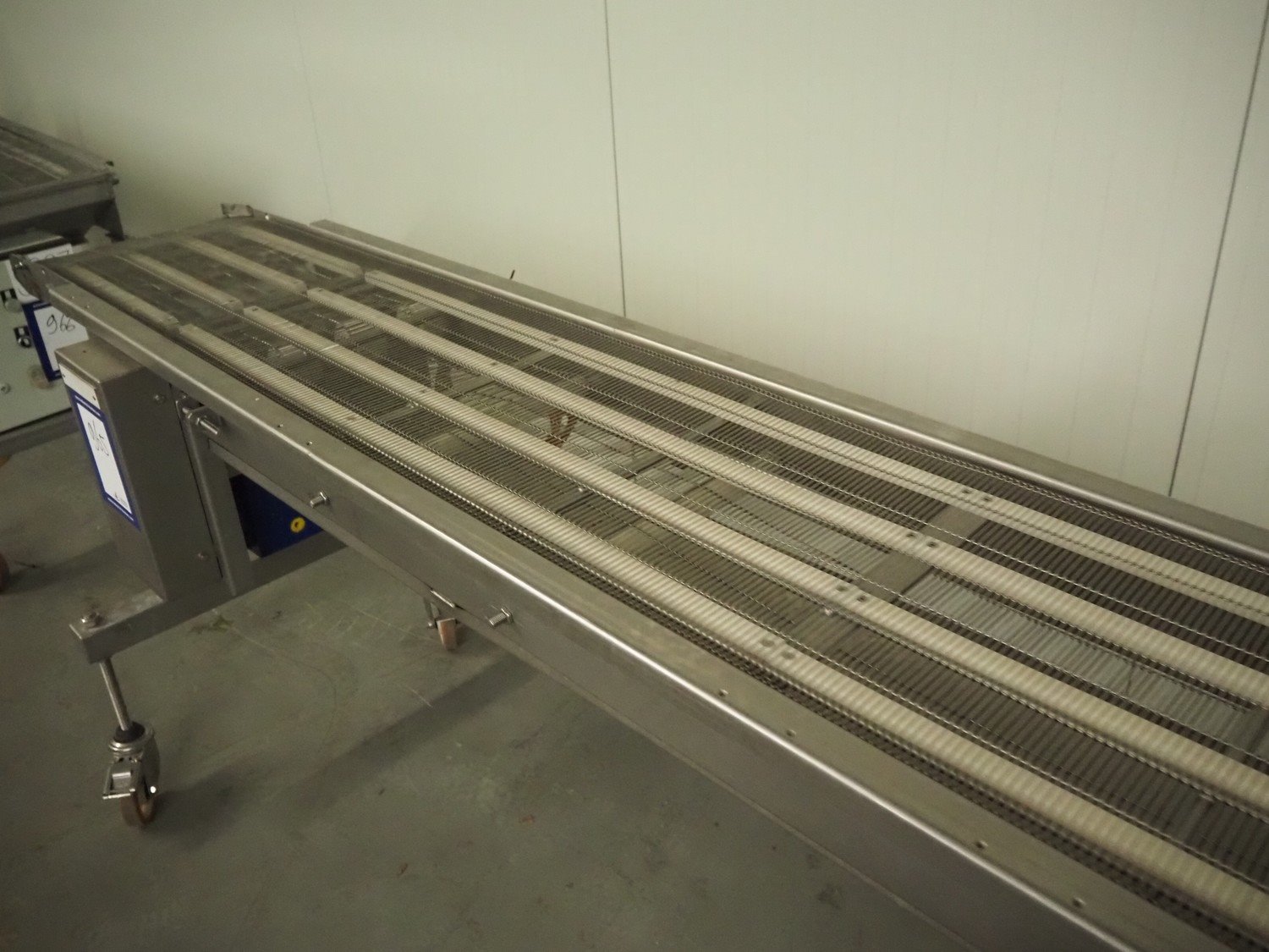 Stork mobile mesh belt, s/s frame, s/s mesh belt, belt width: 400 mm, total dimensions: 4600 mm x 750 mm x 1000 mm.