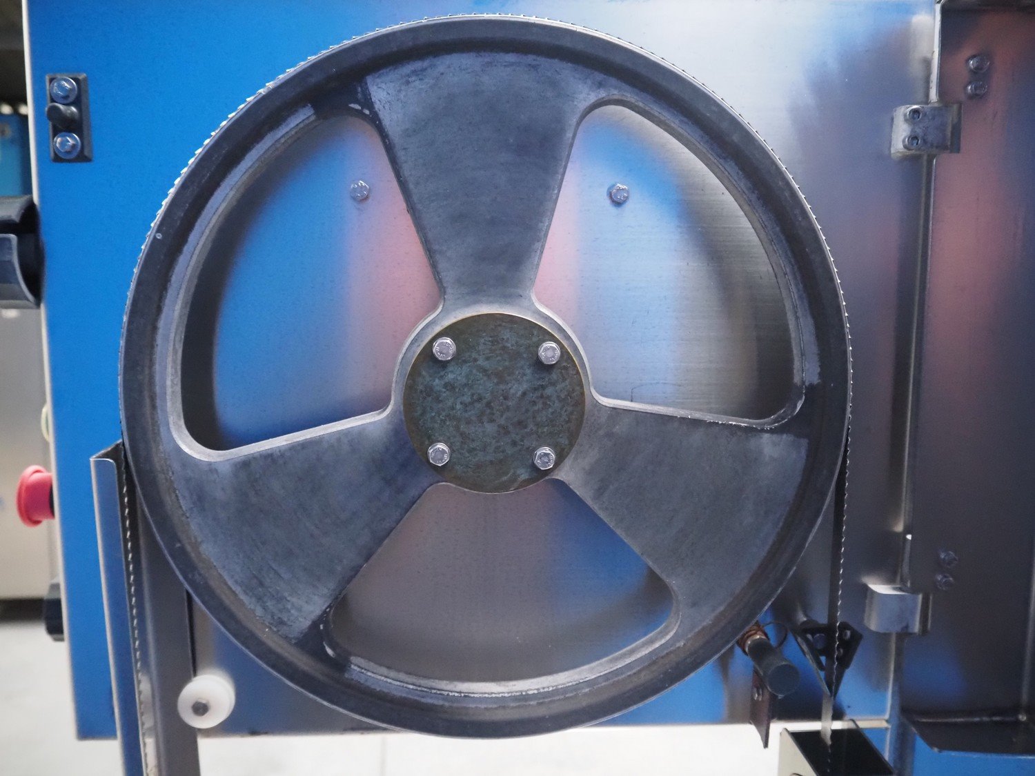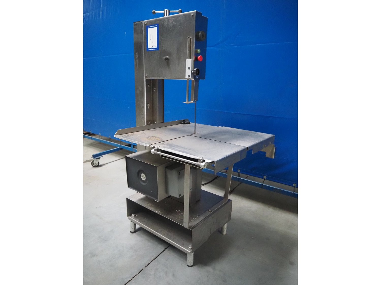Medoc S.A. bandsaw, dimensions table: 950 mm x 880 mm, total dimensions: 1110 mm x 1000 mm x 1800 mm.