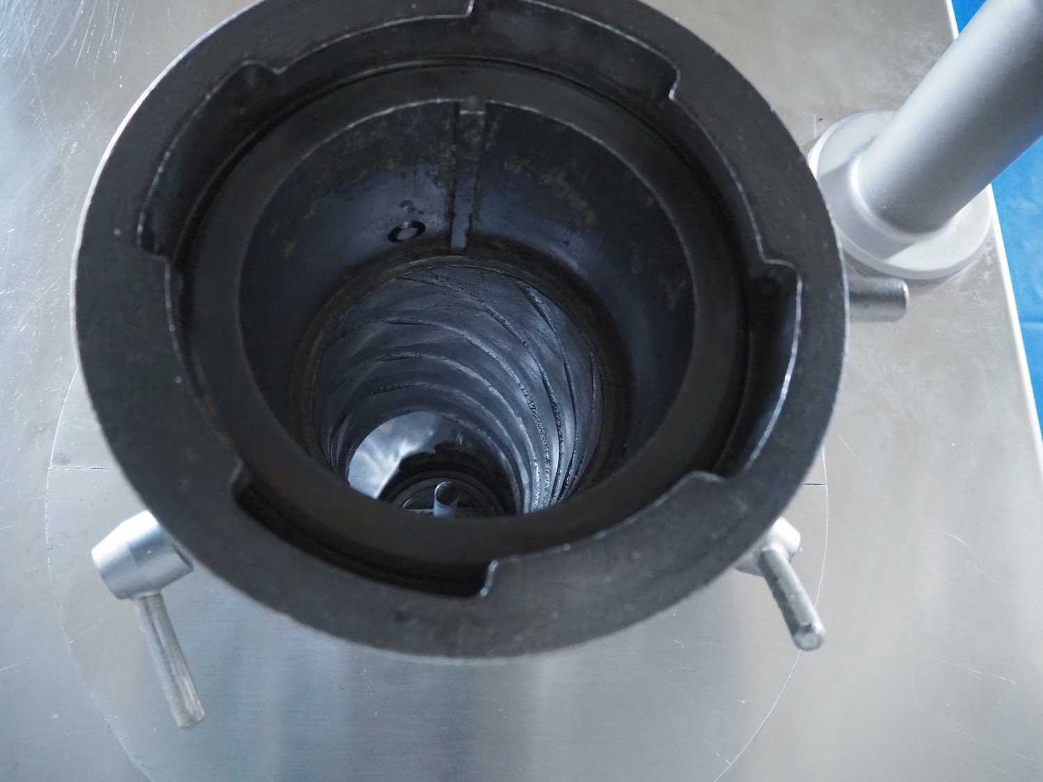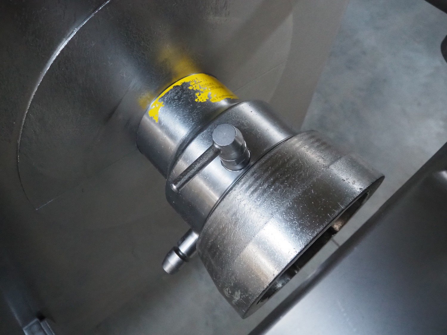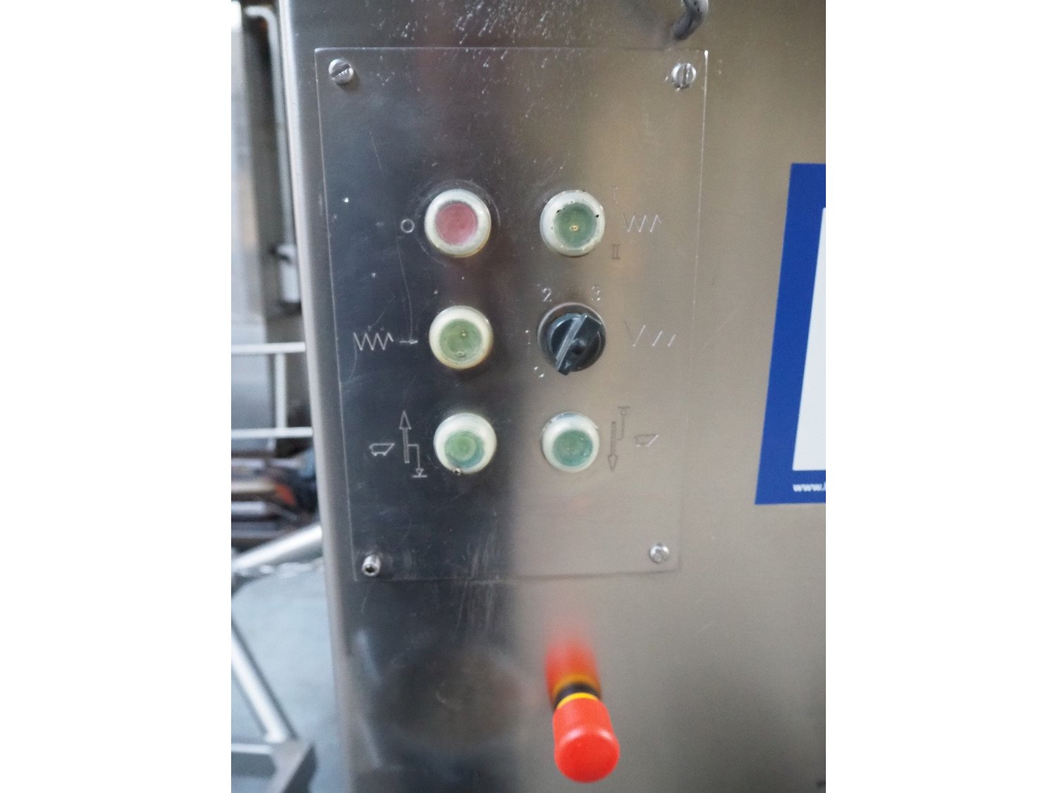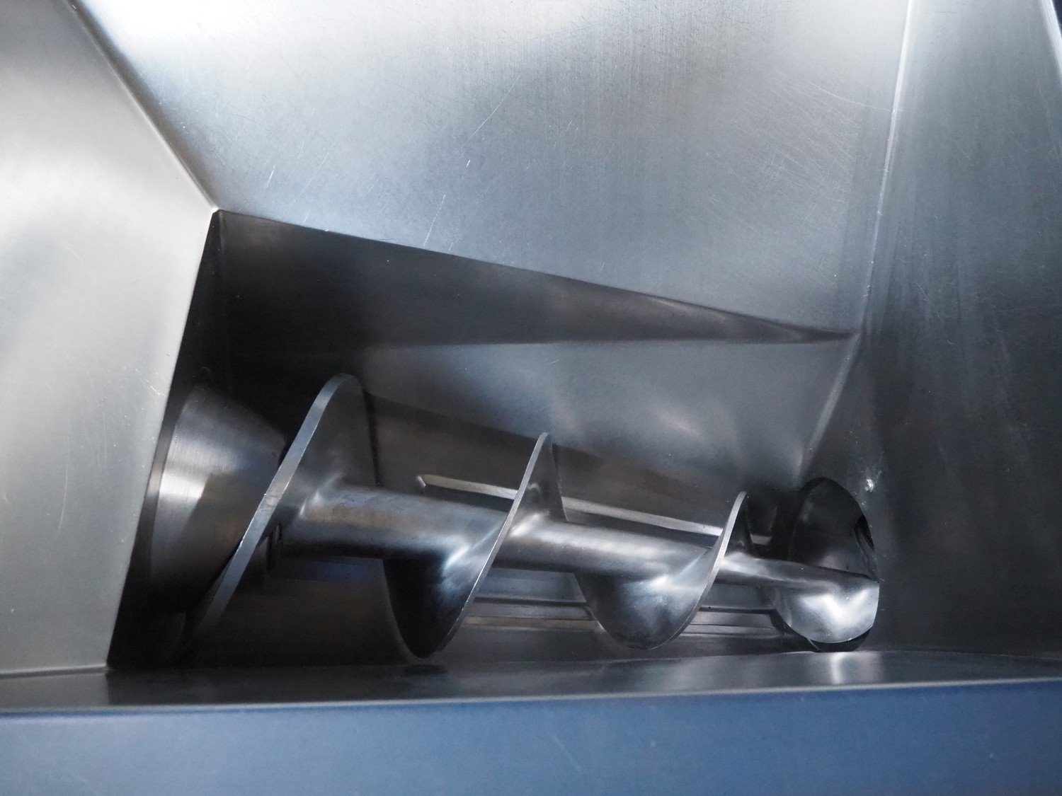 Seydelmann grinder with lifter for 200 liter meat bins, type: AG 160 B, machine number: 05642, year of construction: 2004, 400 V, 50 Hz, 74 A, 42 kW, 6-10 bar, diameter plate: 160 mm, total dimensions: 2850 mm x 2100 mm x 1750 mm.